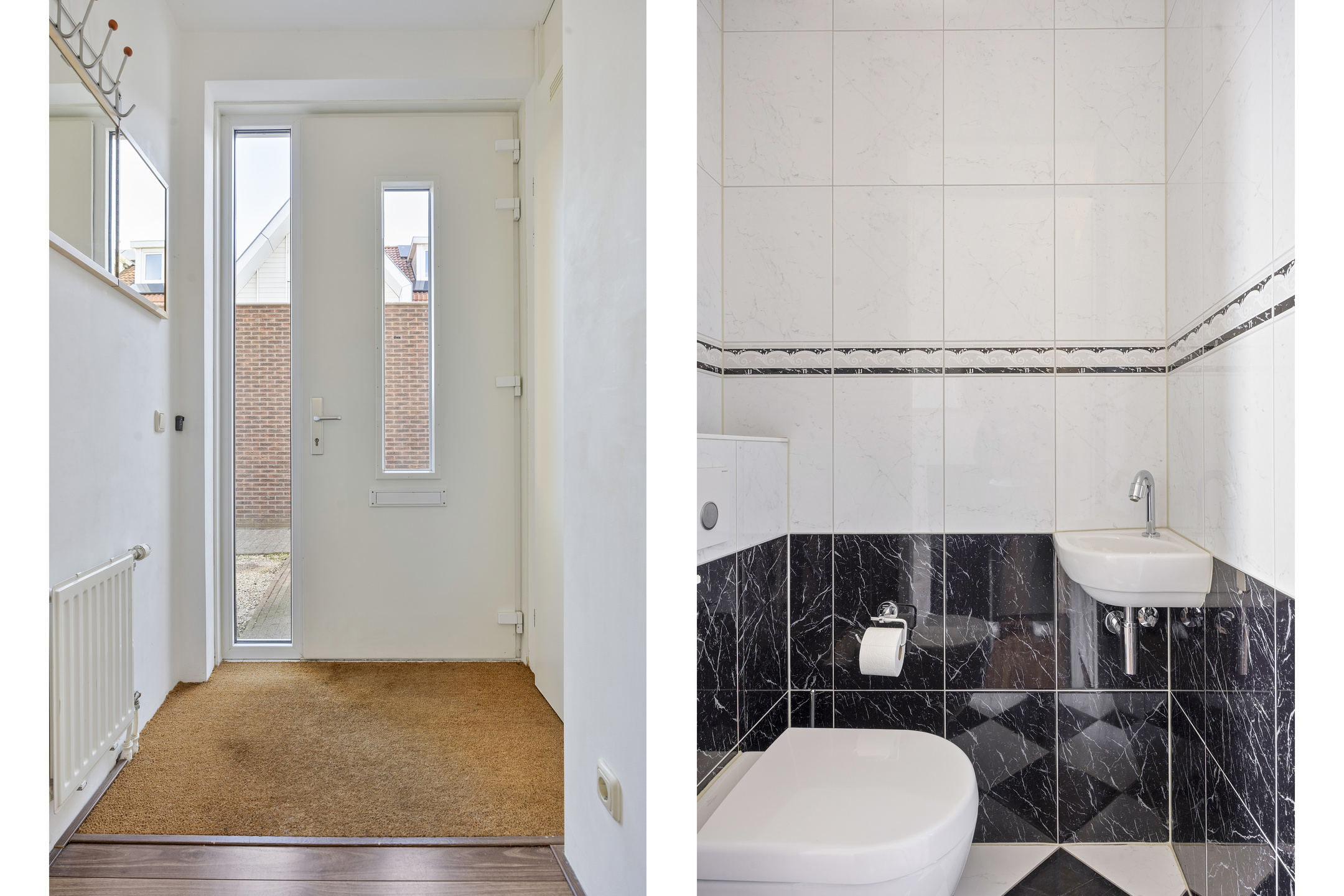 Parkeren doet u eenvoudig op eigen oprit. Entree in de hal met meterkast (8 groepen en 3-fase aansluiting) en toilet met fonteintje. Vanuit de hal bereikt u de ruime woonkamer en open keuken.