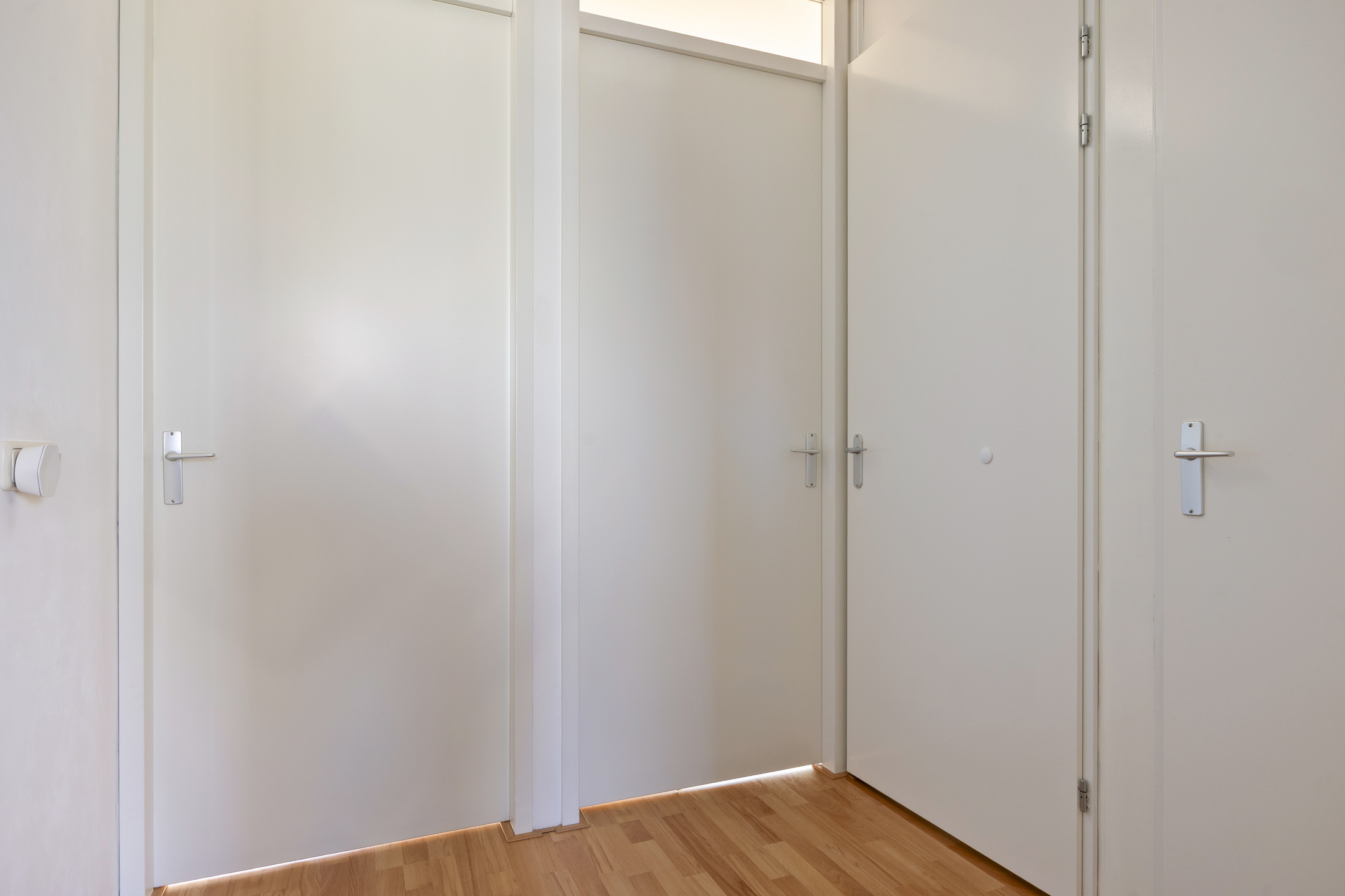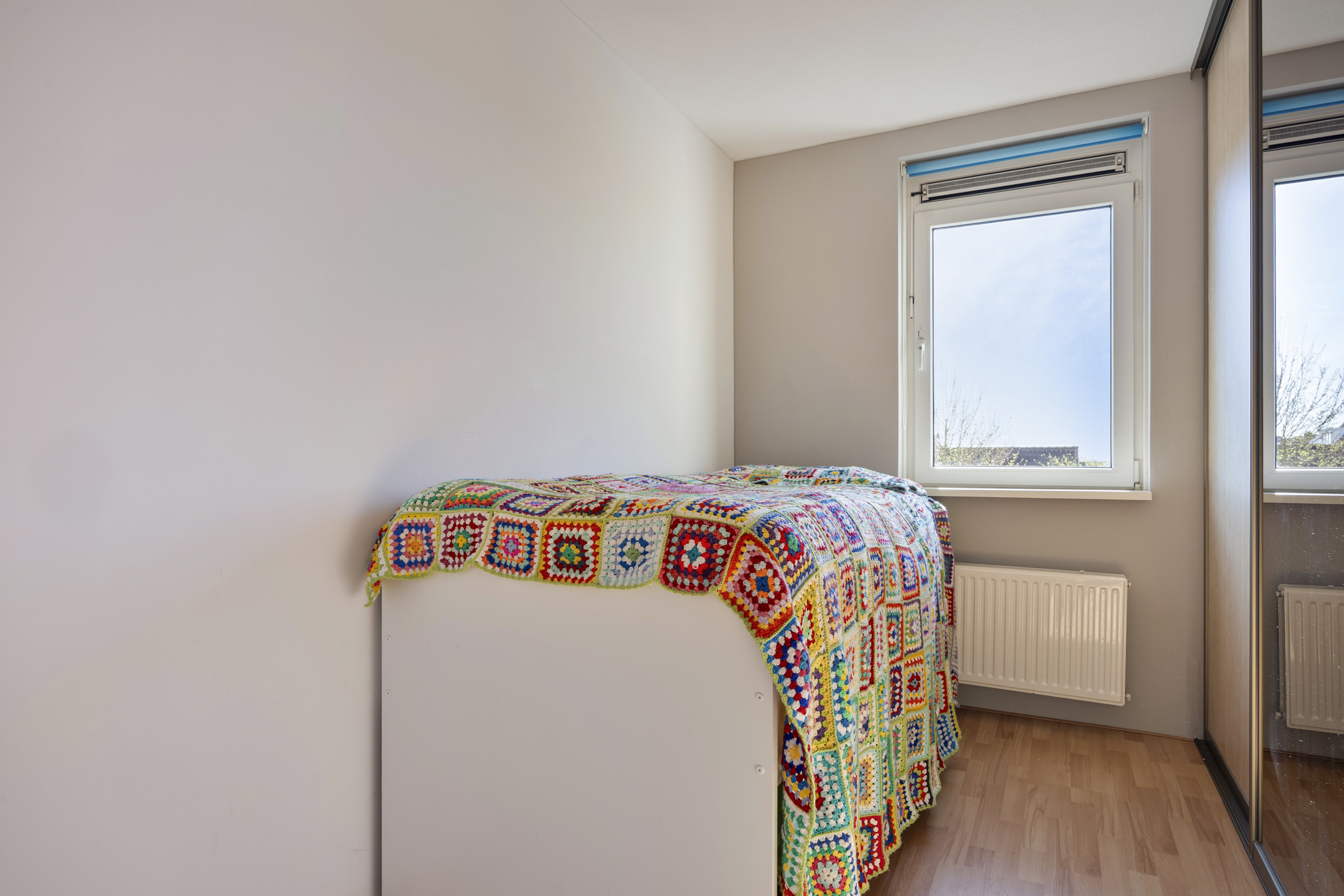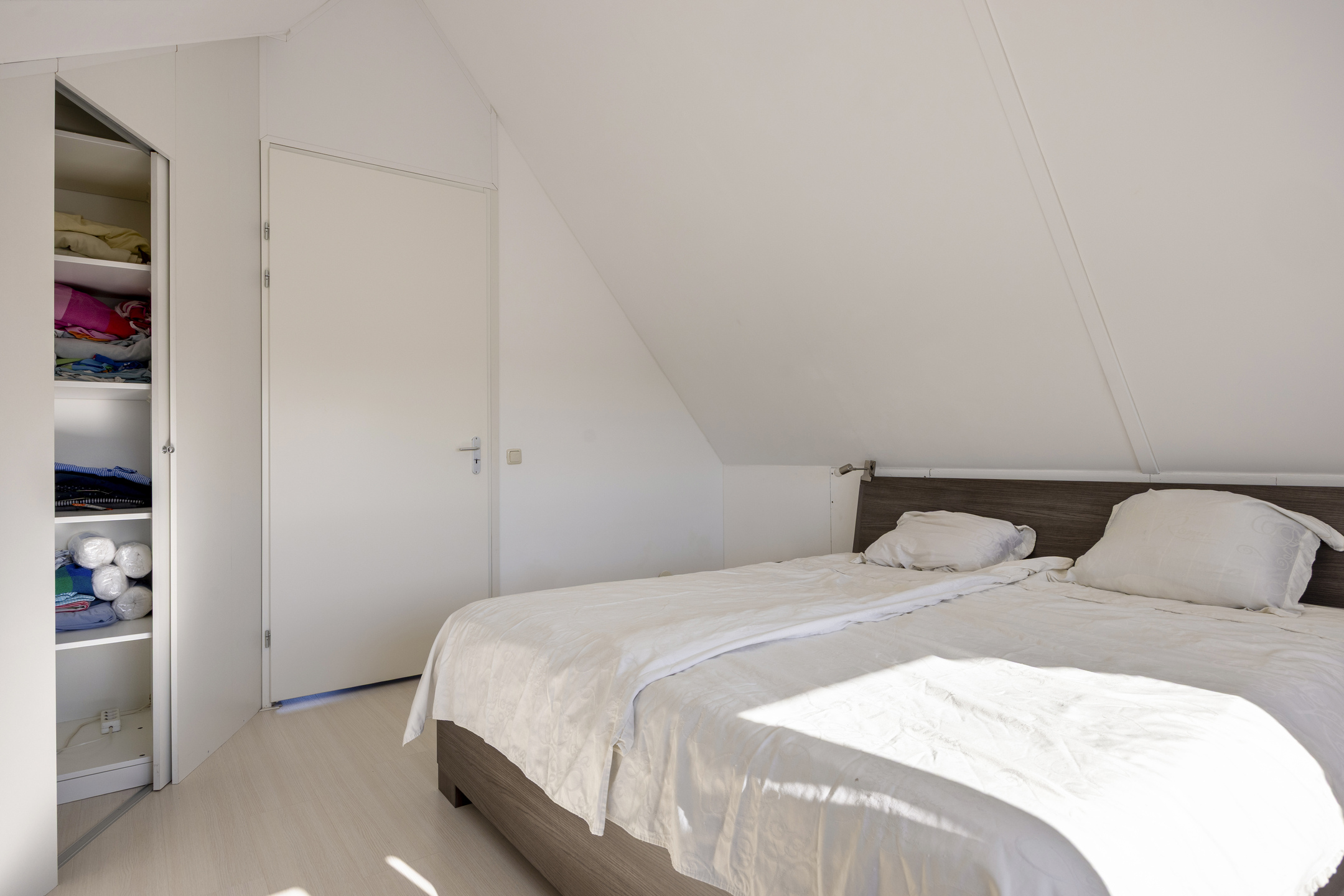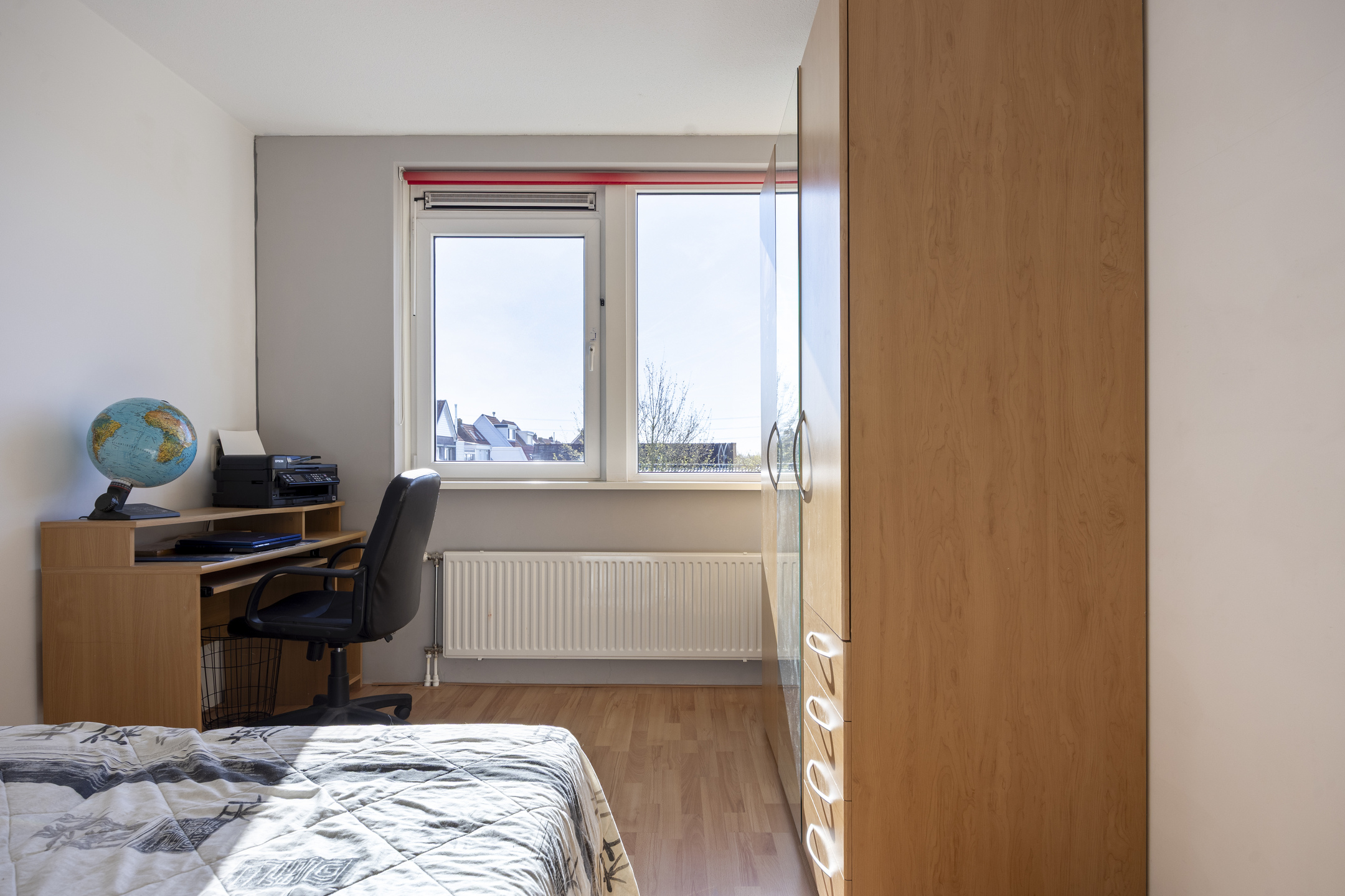 Hier bevinden zich nog twee ruime slaapkamers, aan zowel de voor- als achterzijde van de woning. De slaapkamer aan de achterzijde beschikt over een praktische inbouwkast en een elektrisch rolluik.