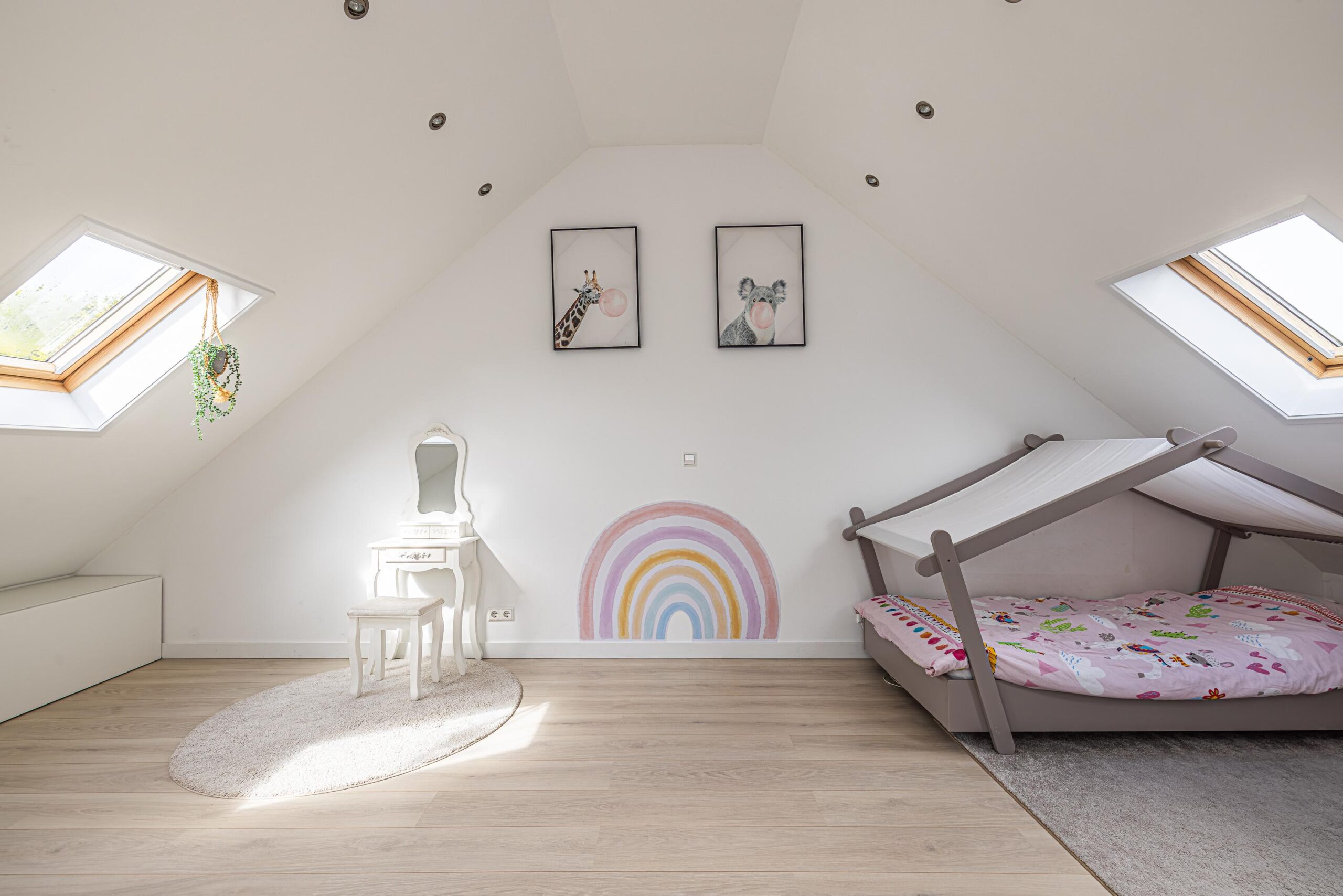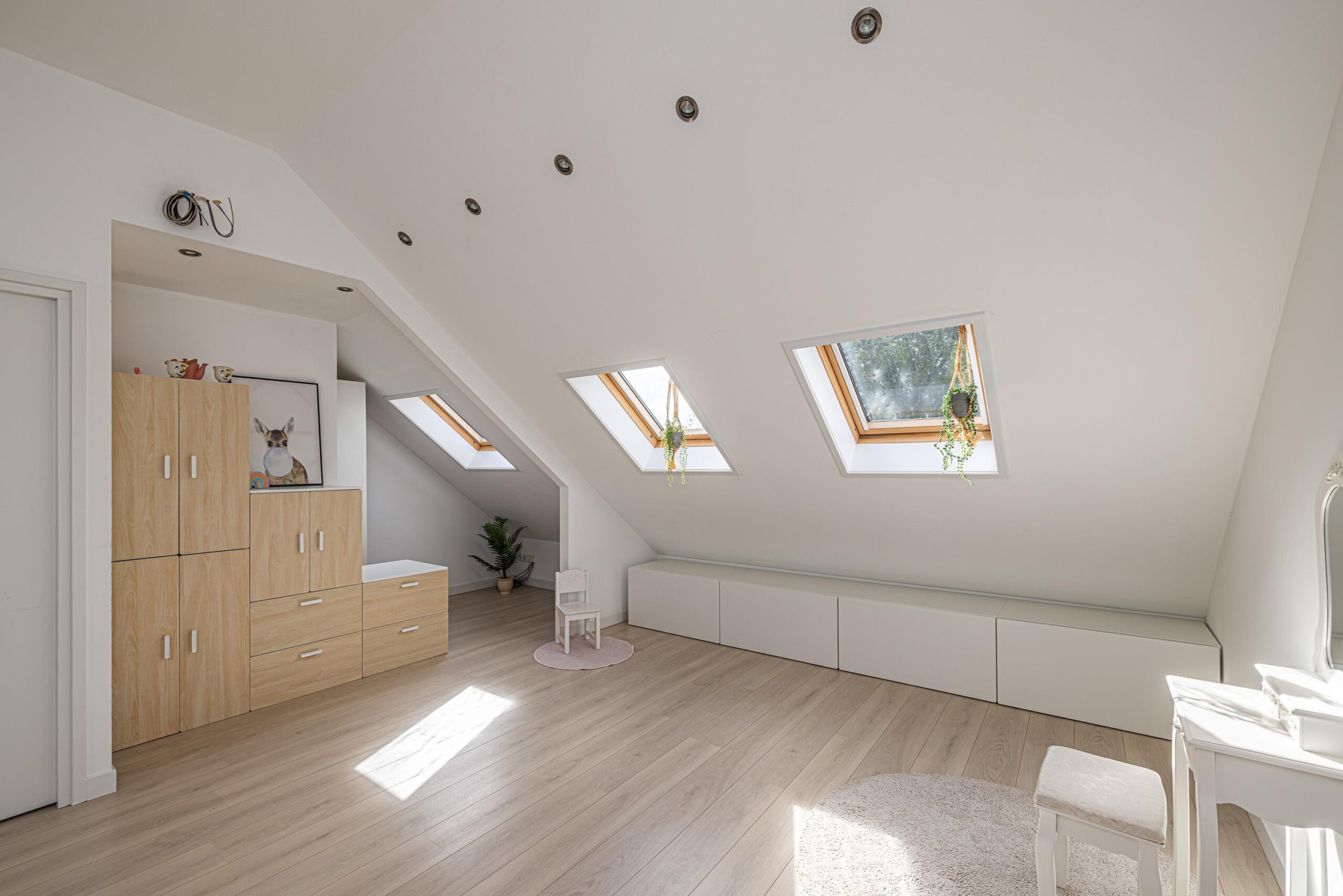 Onder het dakvlak is de nodige bergruimte aanwezig.