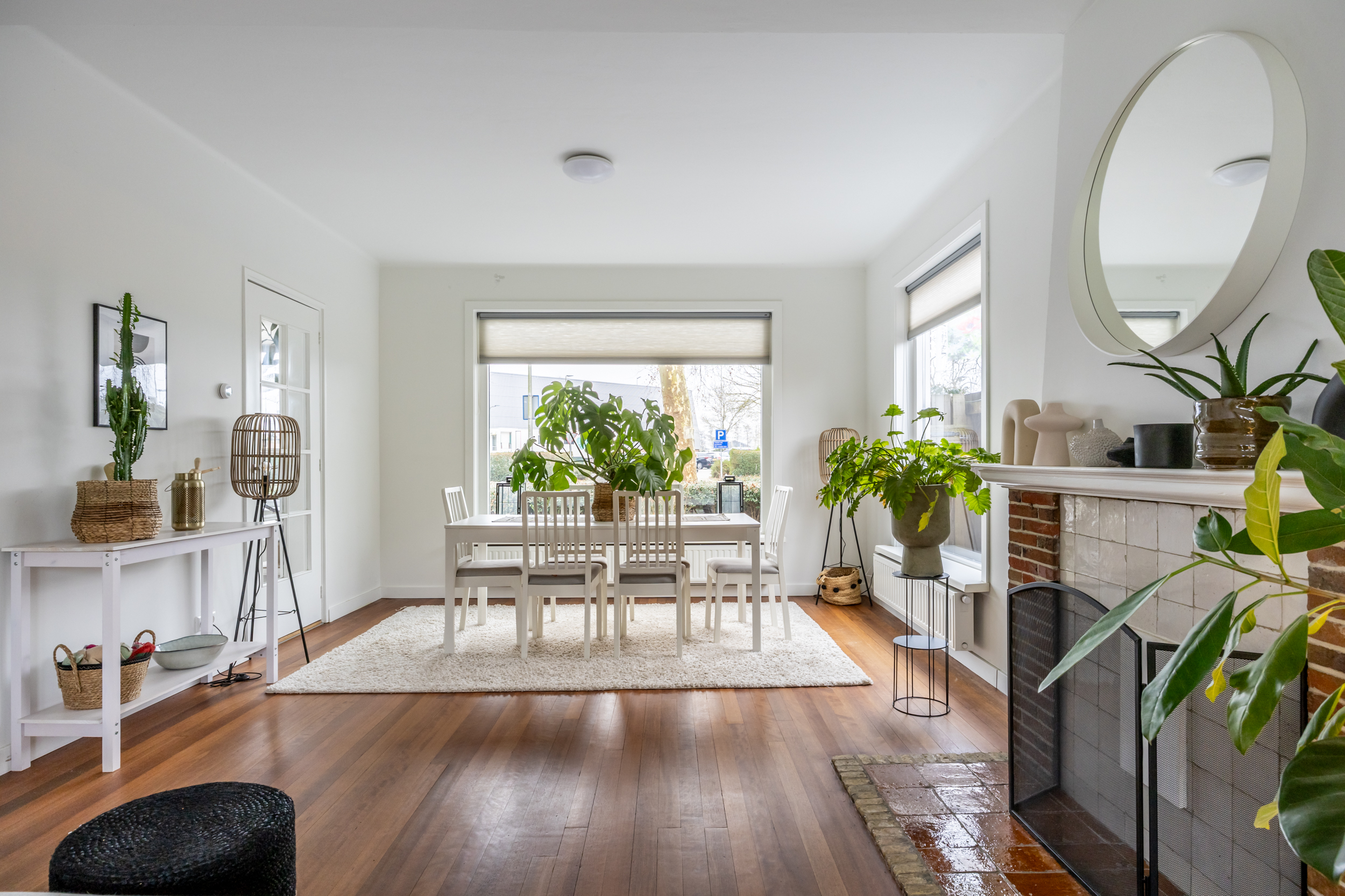 naar de tuin, aparte werkkamer, aangrenzend de keuken voorzien van diverse inbouwapparatuur. De achtertuin biedt de hele dag zon vanwege de vrije ligging en diepte. Vanuit de tuin is er een toegang naar de garage. De aangebouwde garage beschikt over een oprijpad voor meerdere auto’s.