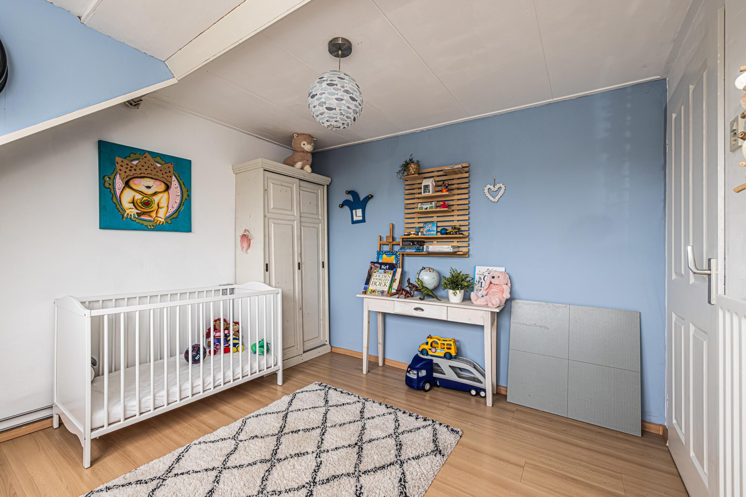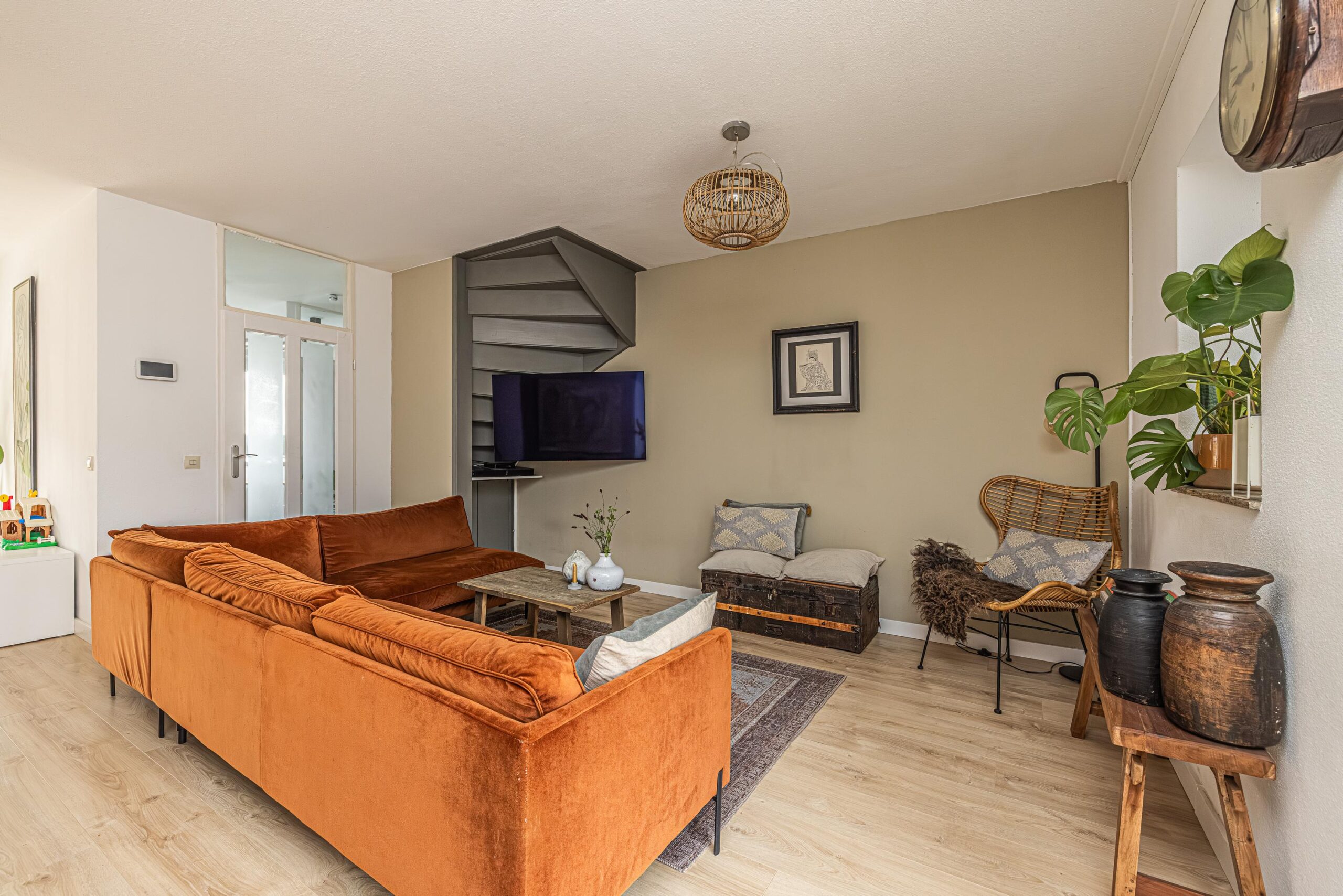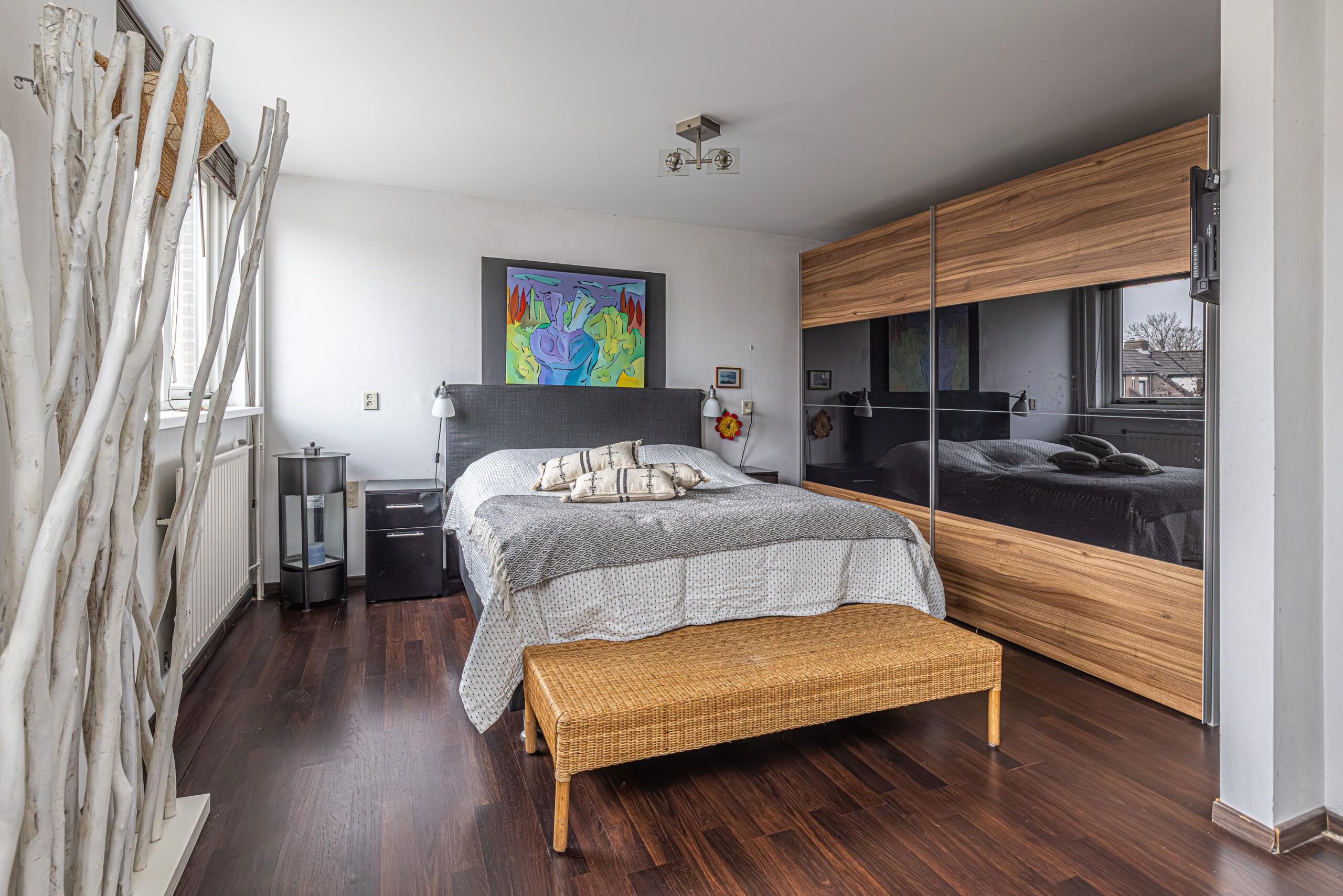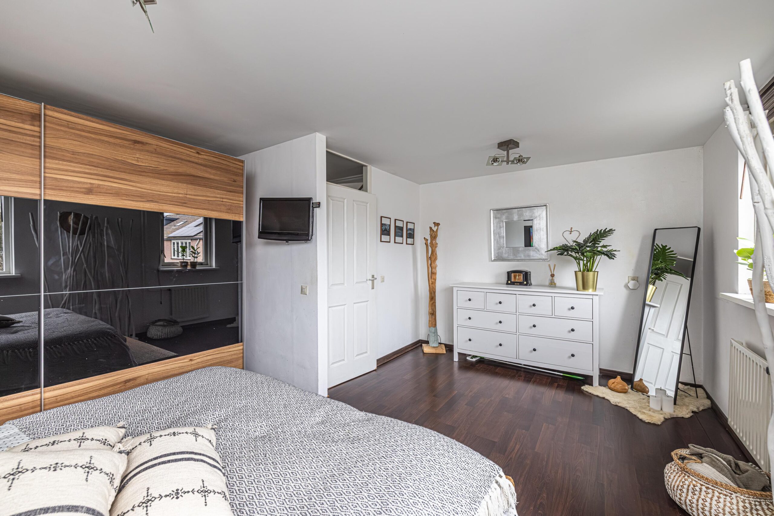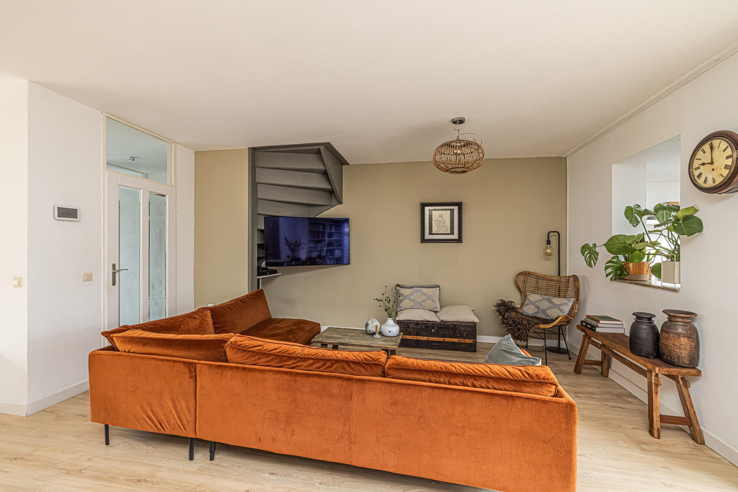 - De wanden zijn afgewerkt met glad stucwerk, wat zorgt voor een strakke en verzorgde uitstraling.