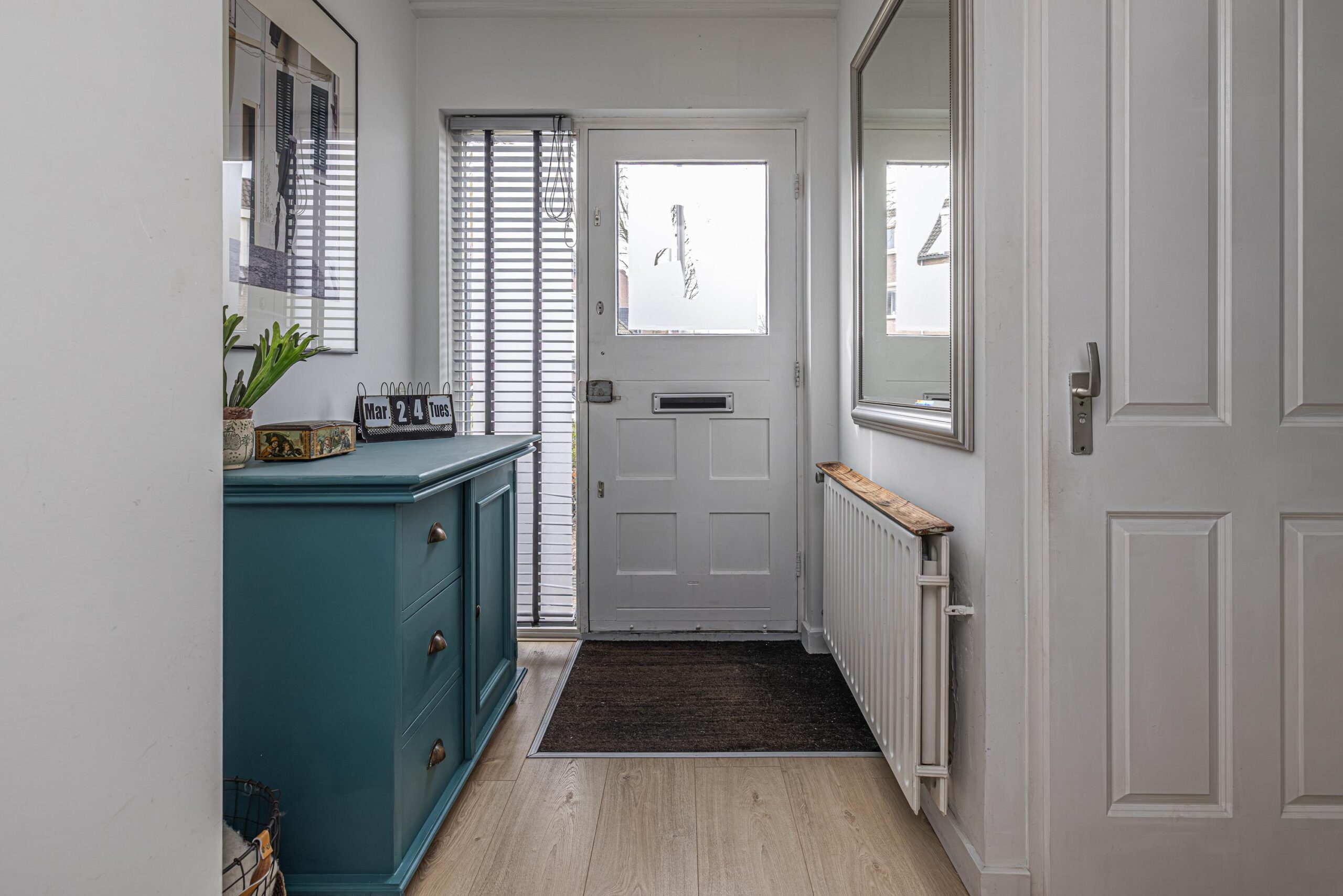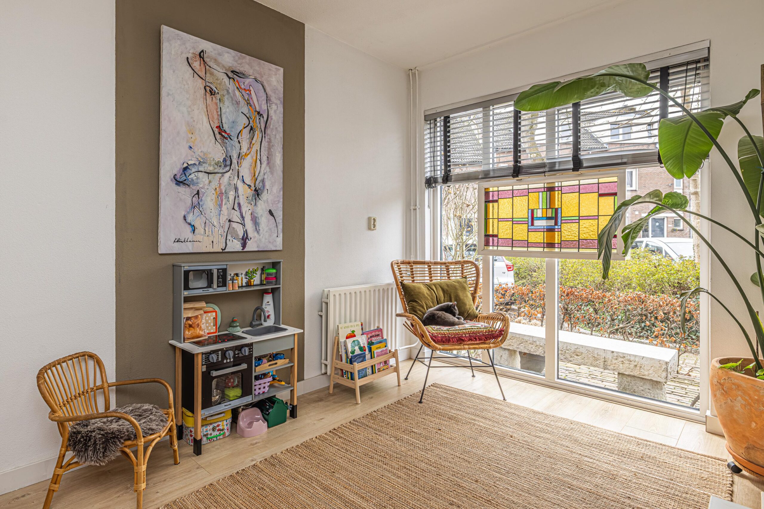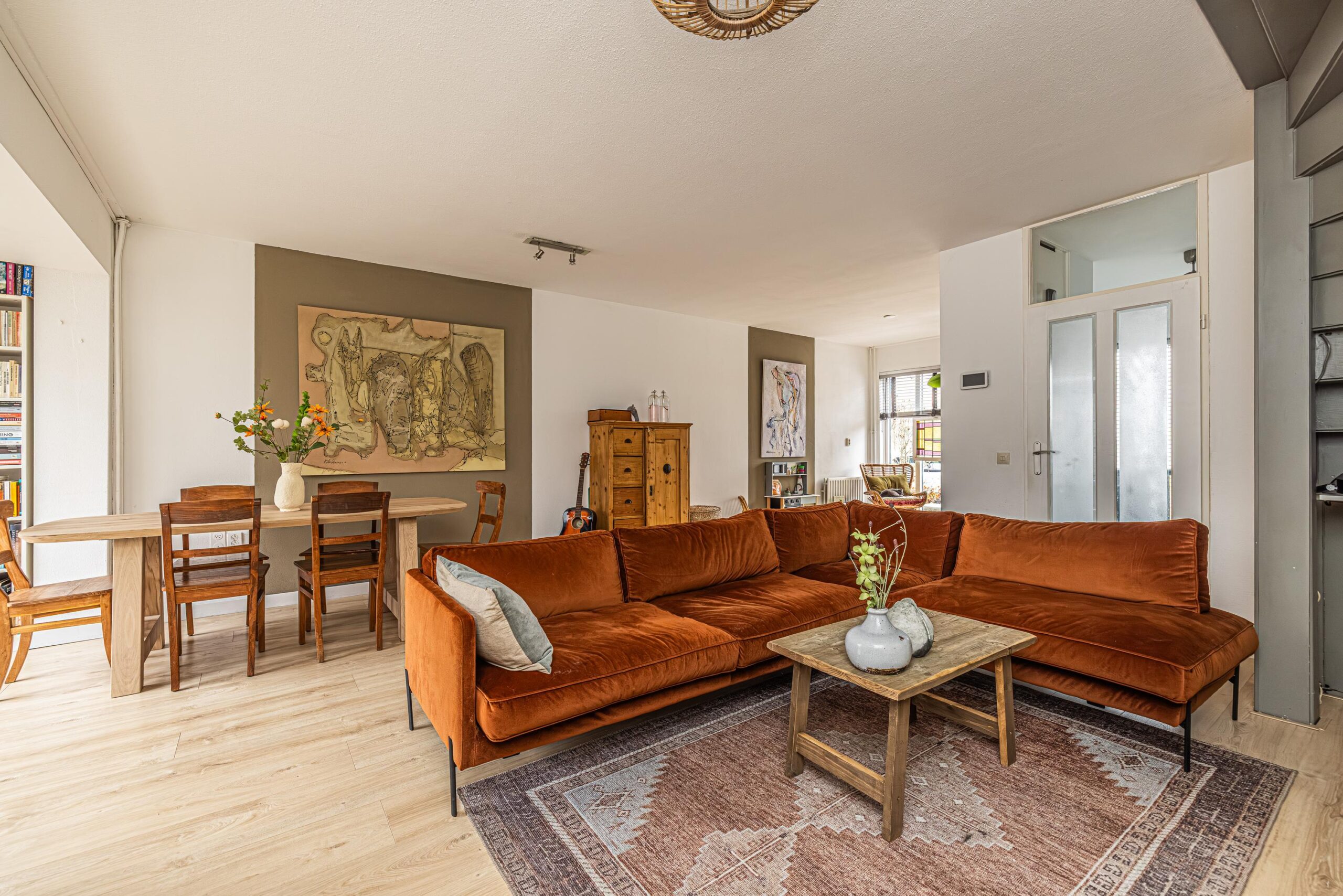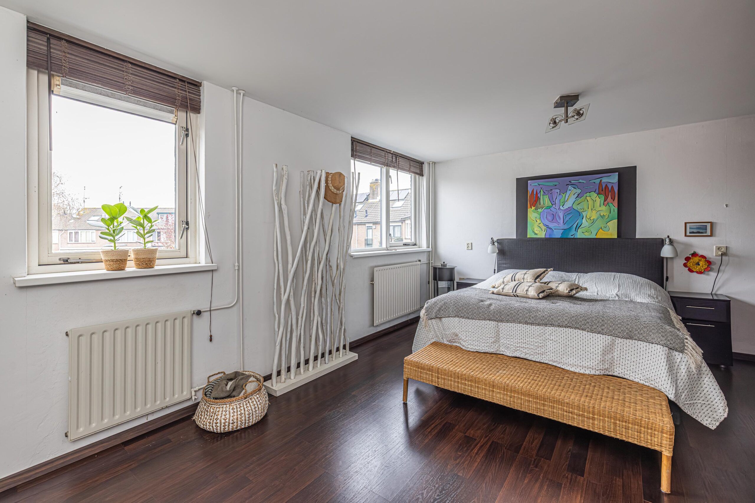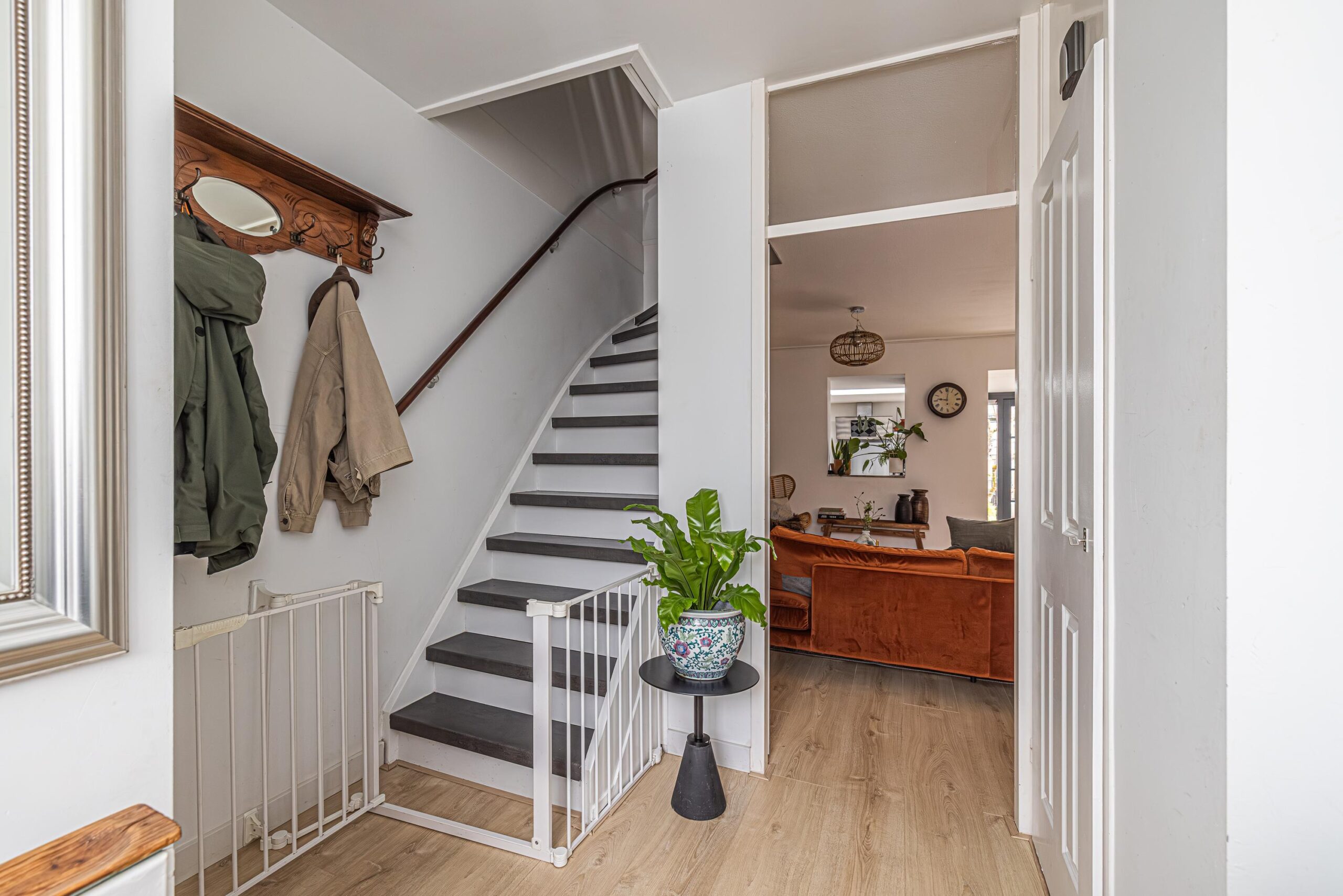 - De wanden zijn afgewerkt met glad stucwerk, wat zorgt voor een strakke en verzorgde uitstraling.