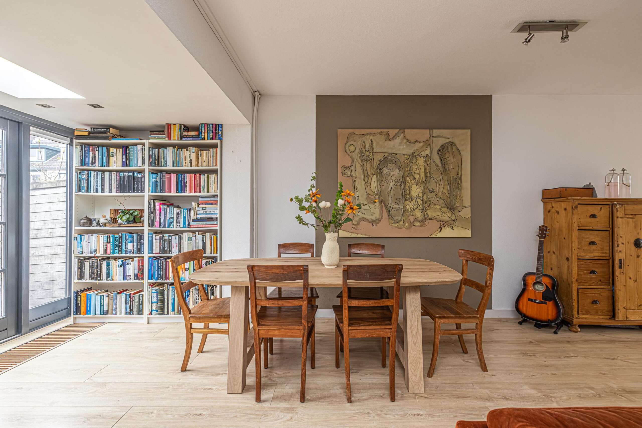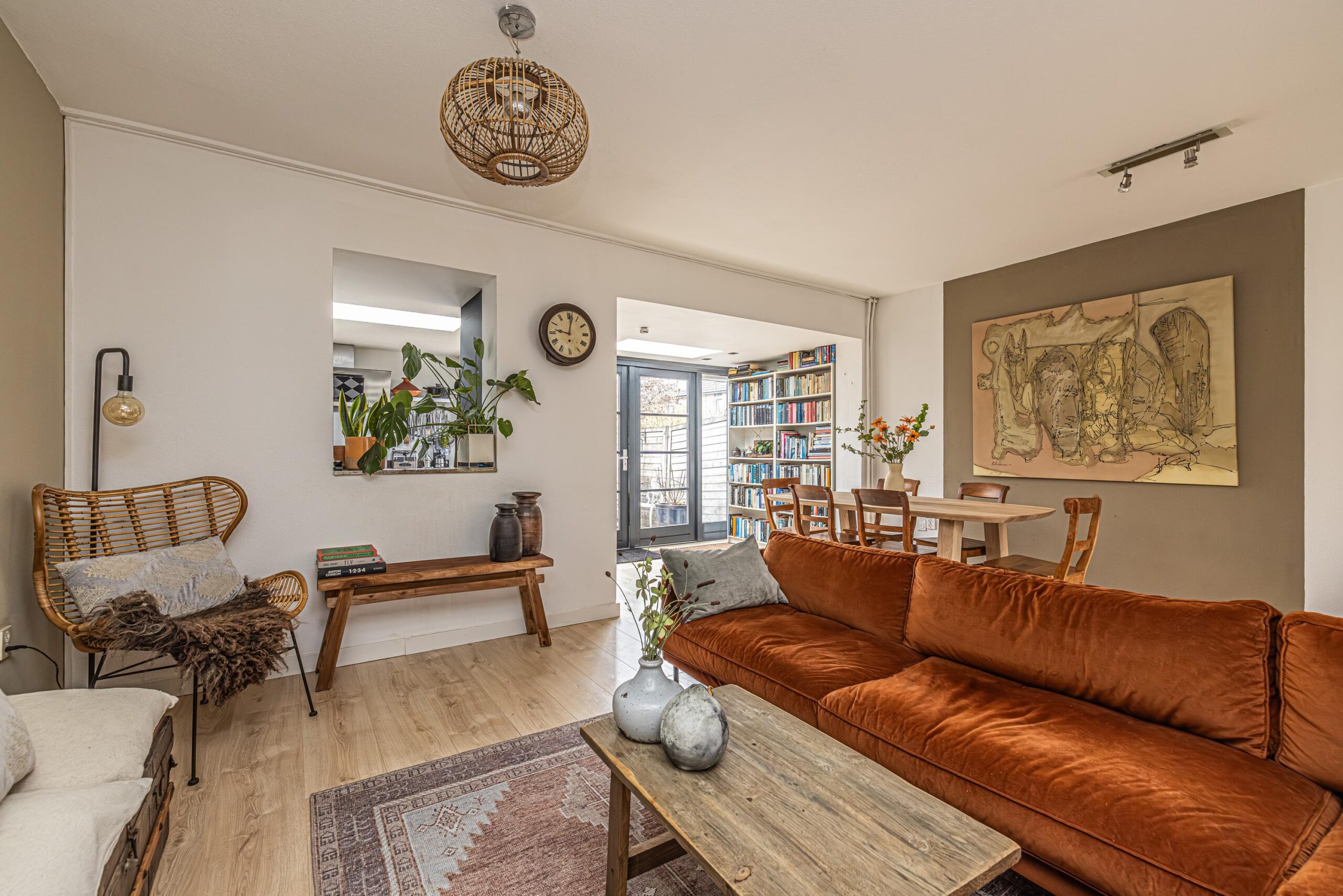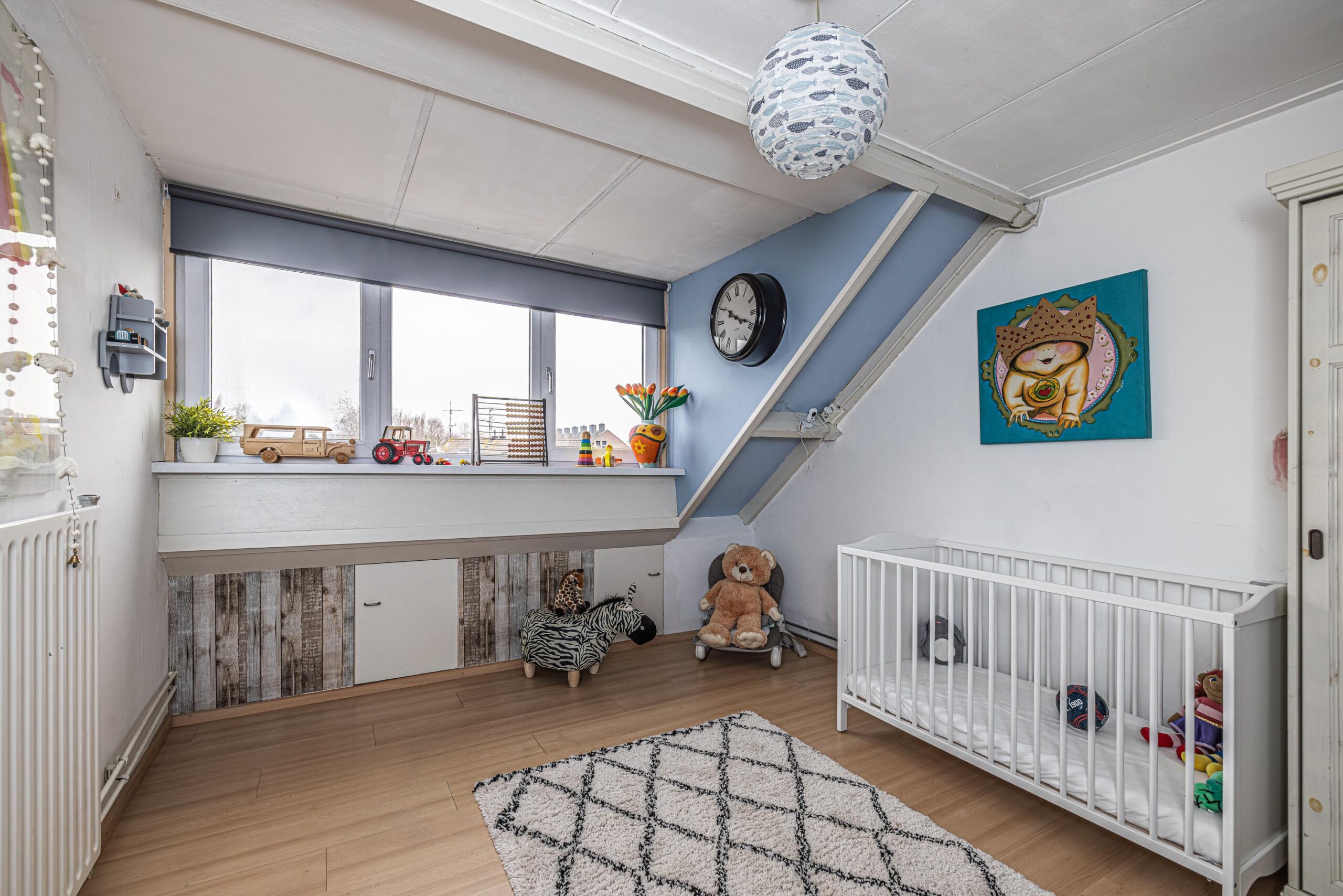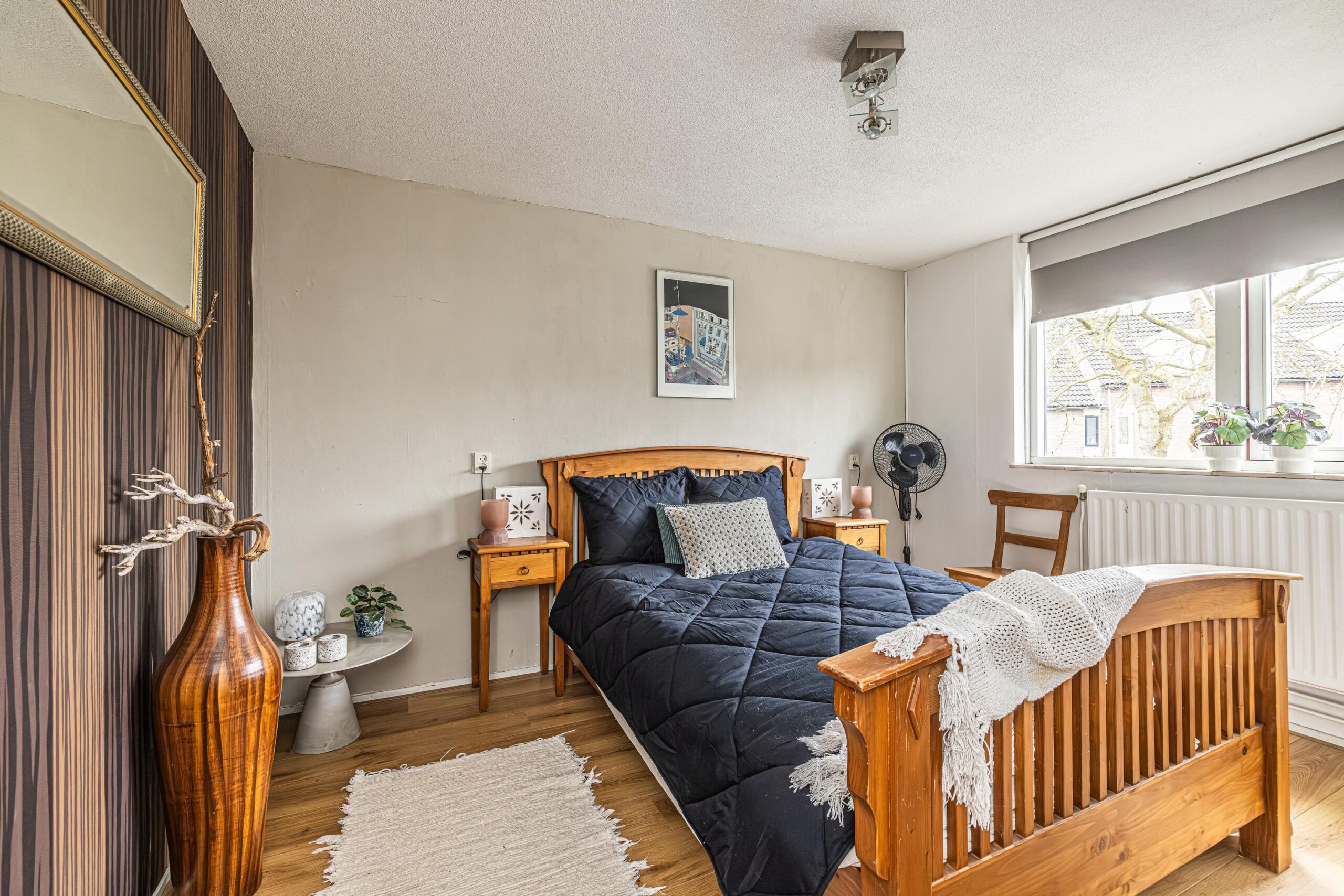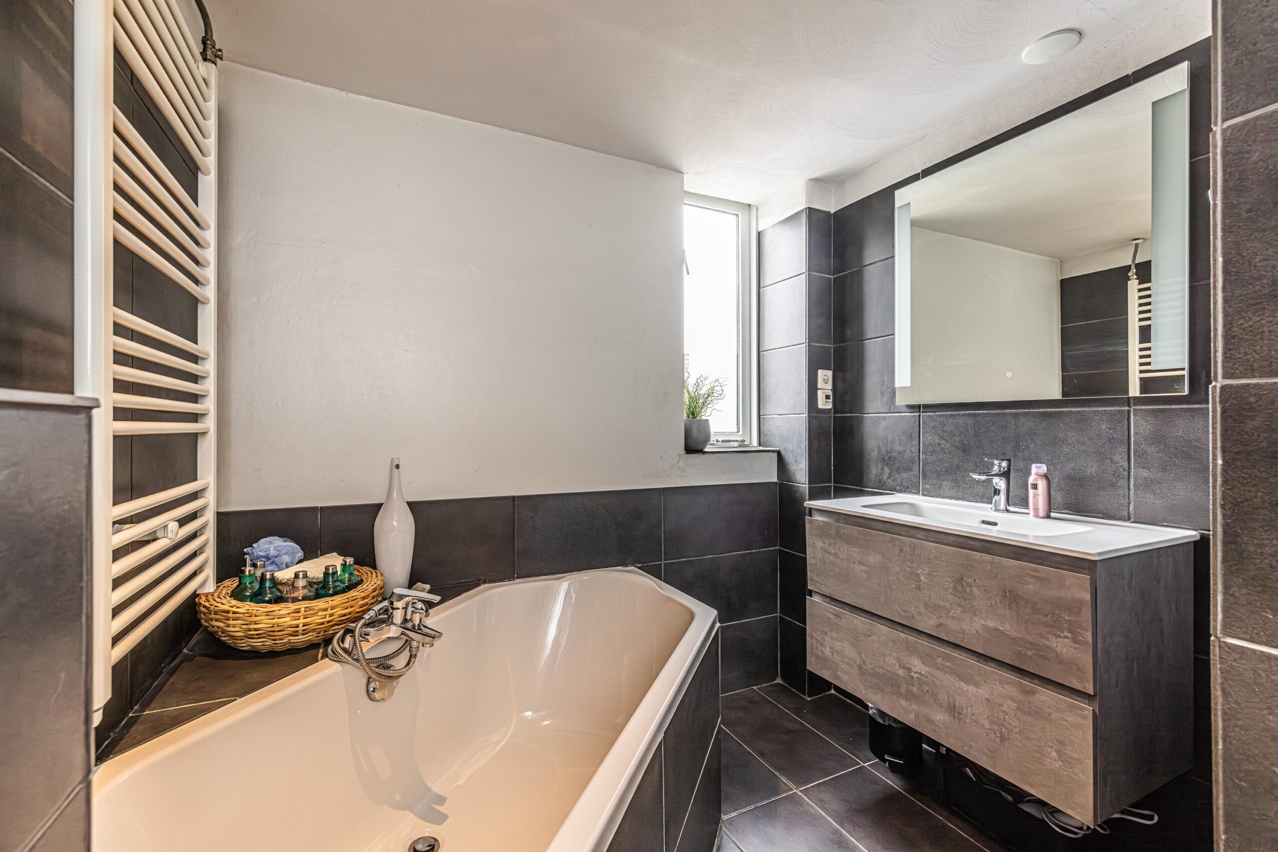 - De wanden zijn afgewerkt met glad stucwerk, wat zorgt voor een strakke en verzorgde uitstraling.