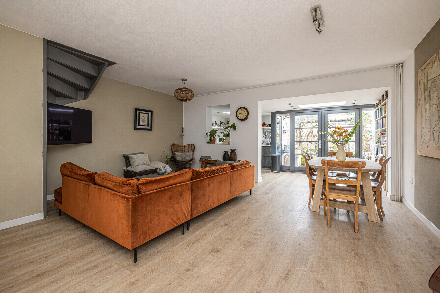 - De begane grond en verdiepingen zijn voorzien van een lichte laminaat vloerafwerking.