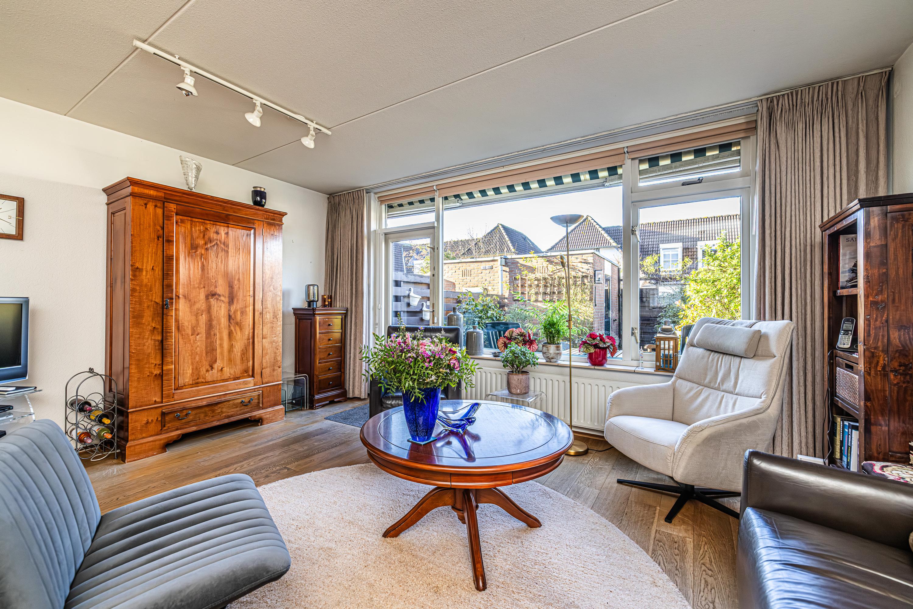 Aan de achterzijde ligt de tuingerichte woonkamer; heerlijk licht dankzij de brede raampartij. De ruimte beschikt over een praktische vaste kast en een buitendeur naar het terras.