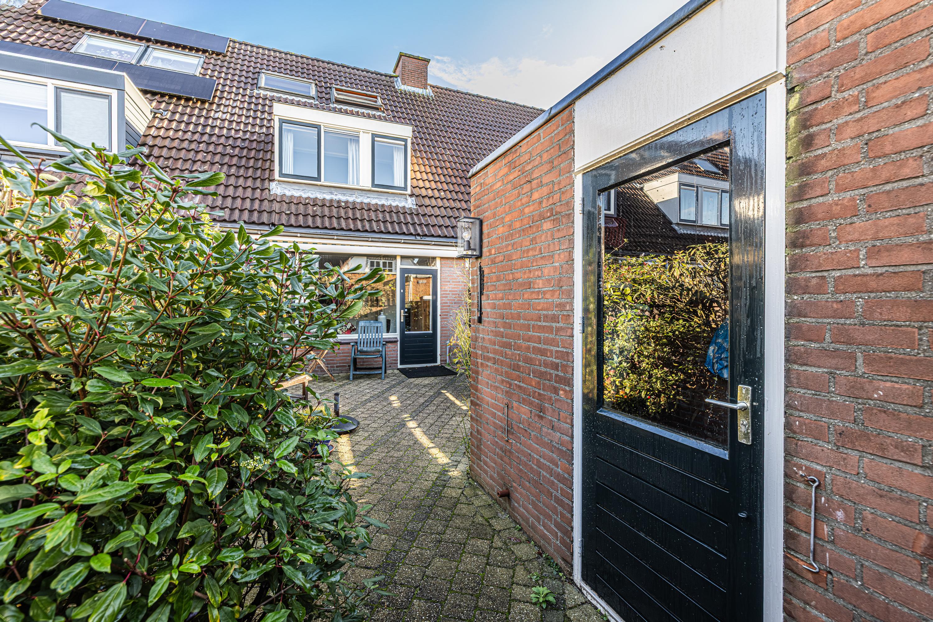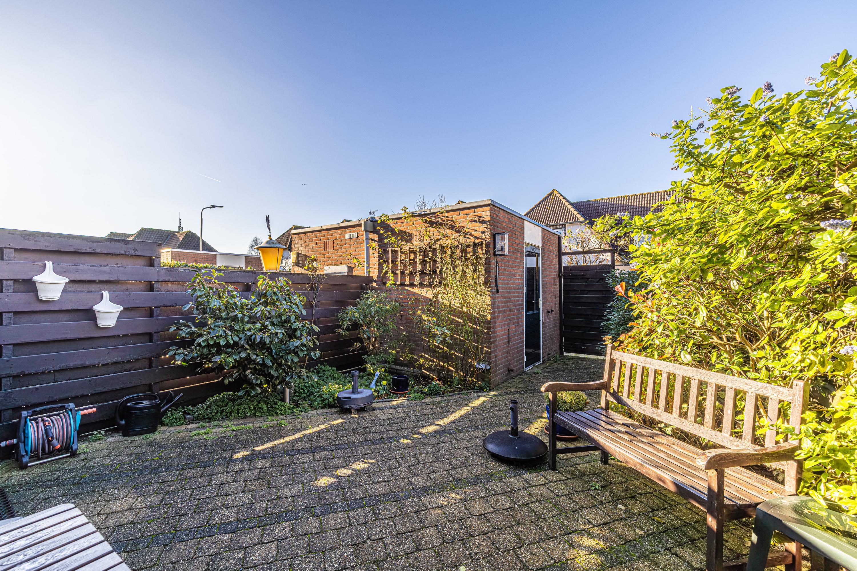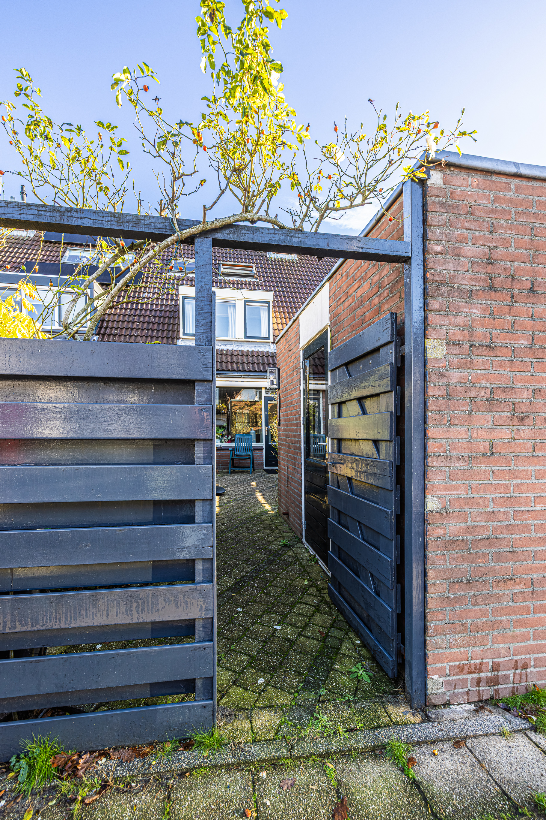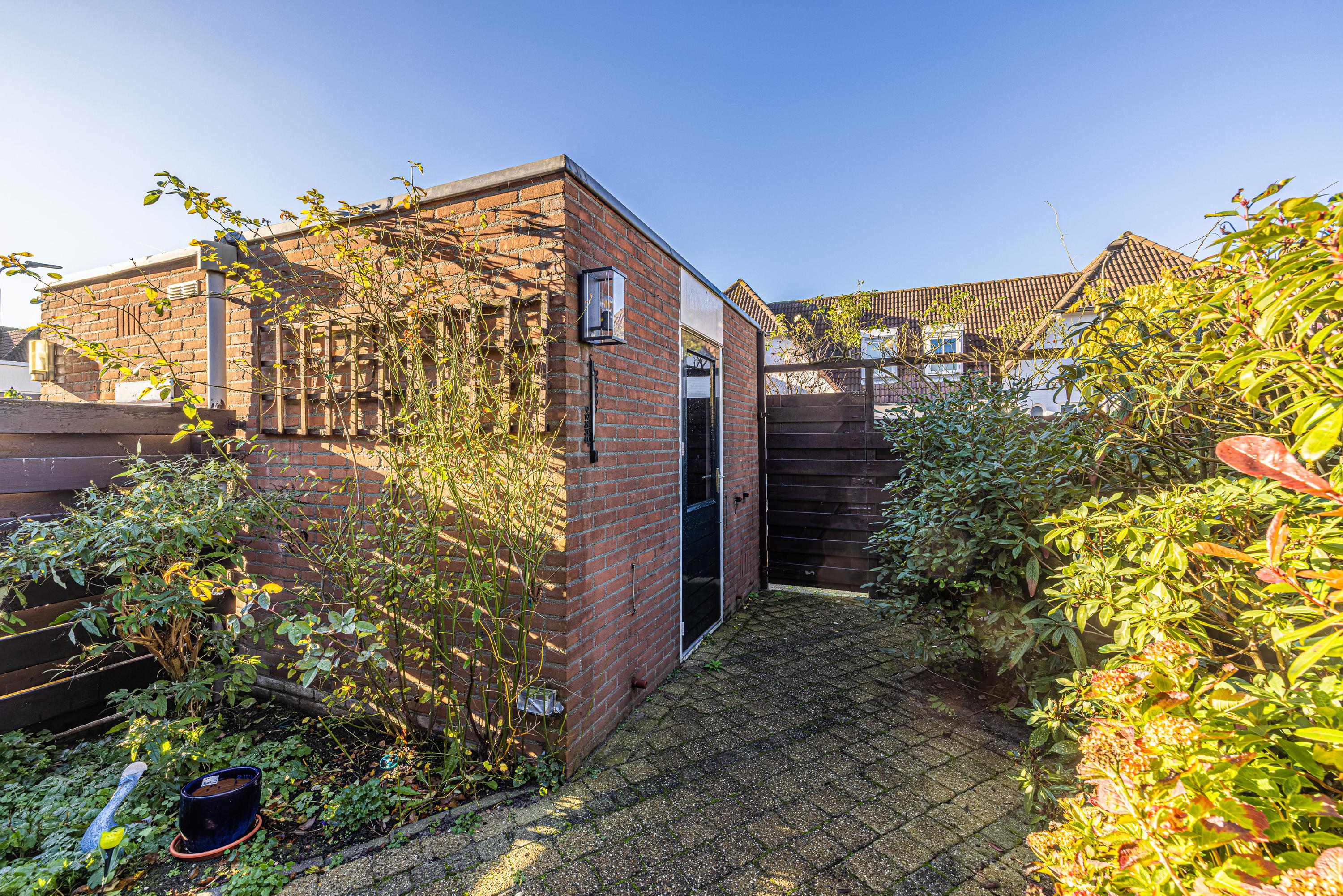 Deze lichte tussenwoning staat op een perceel eigen grond van 110 m² en biedt een aantrekkelijke achtertuin met een gunstige ligging op het westen, waardoor u de hele middag en avond van de zon kunt genieten. De tuin is onderhoudsvriendelijk aangelegd met sierbestrating en vaste beplanting, en beschikt aan de achterzijde over een ruime vrijstaande stenen schuur (ca. 7 m²).