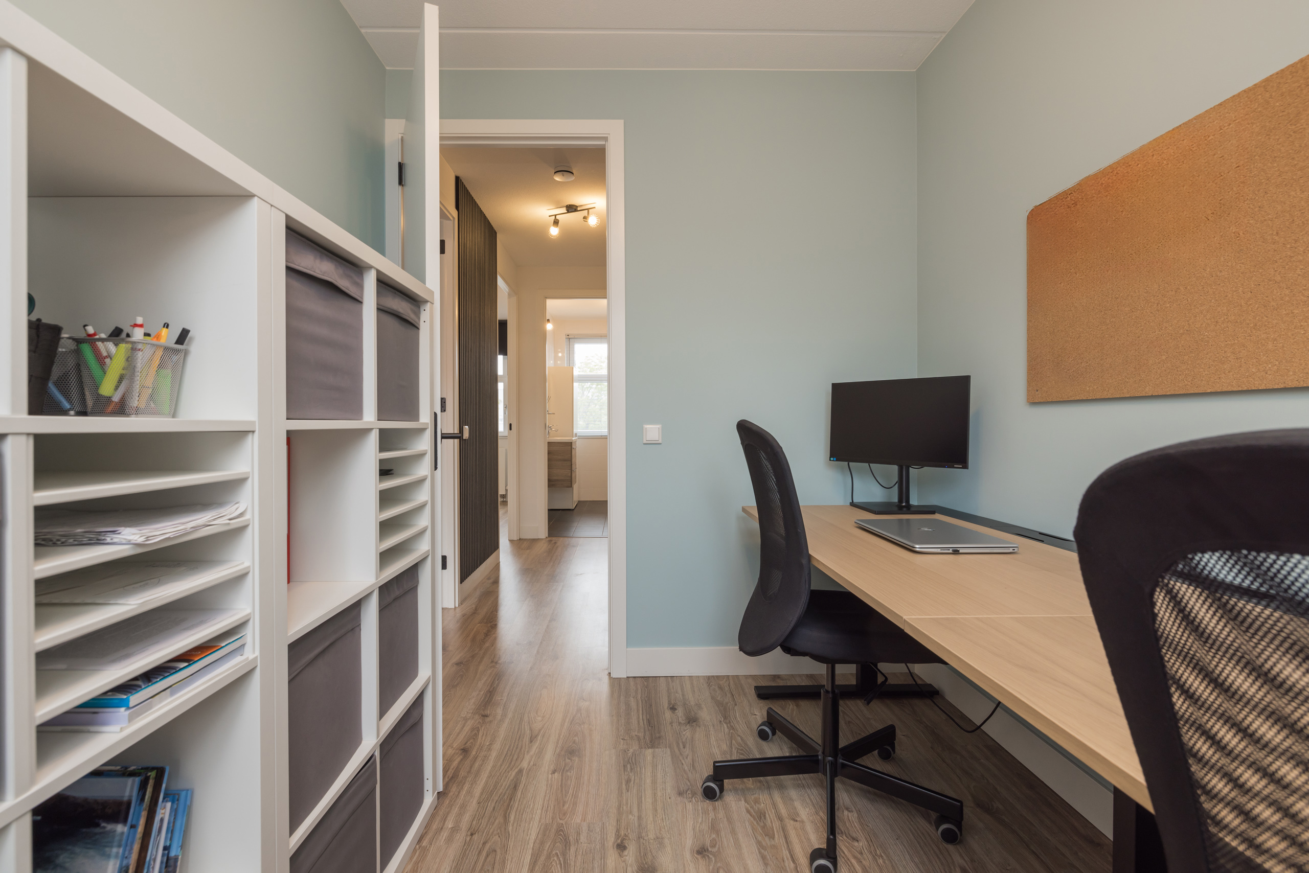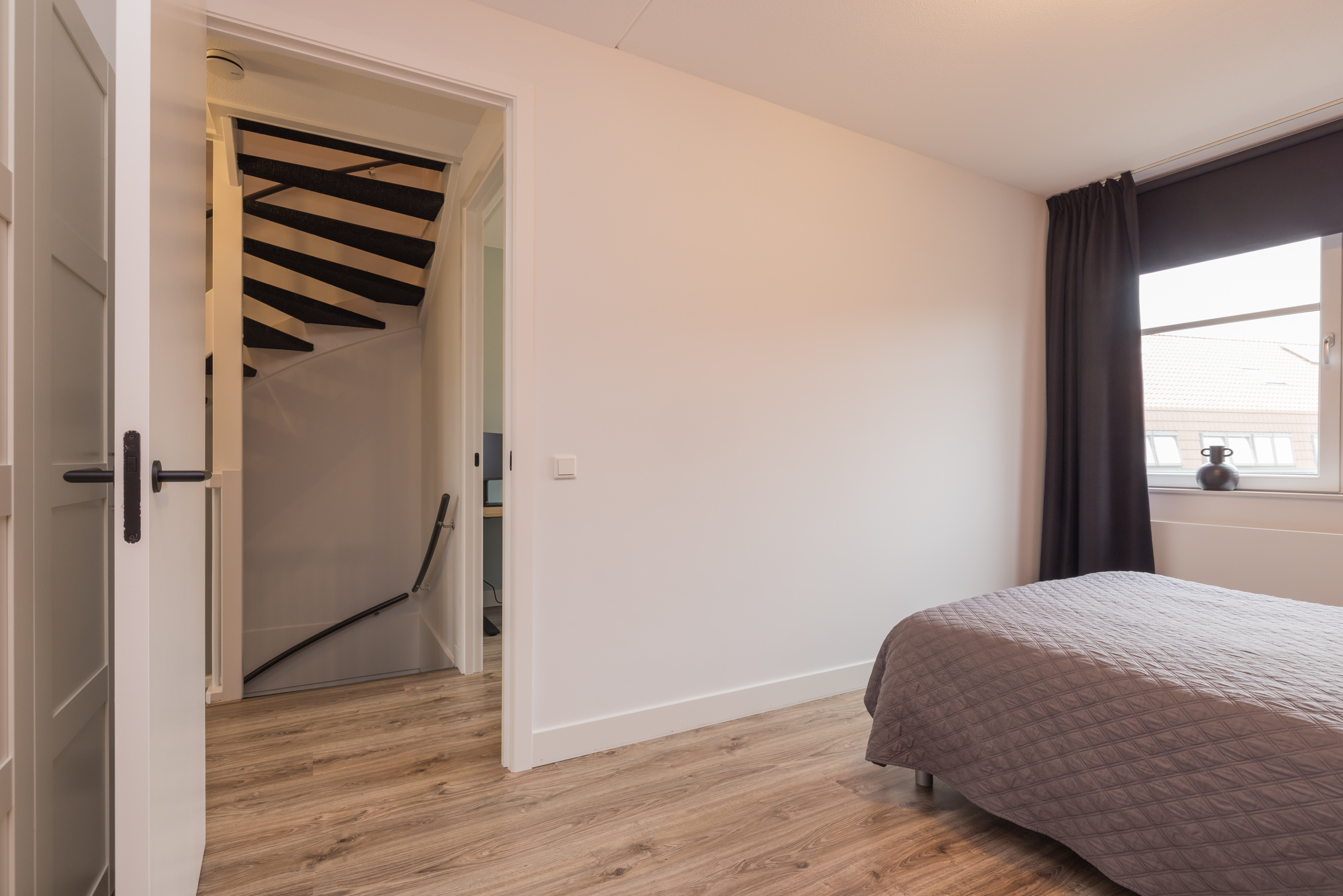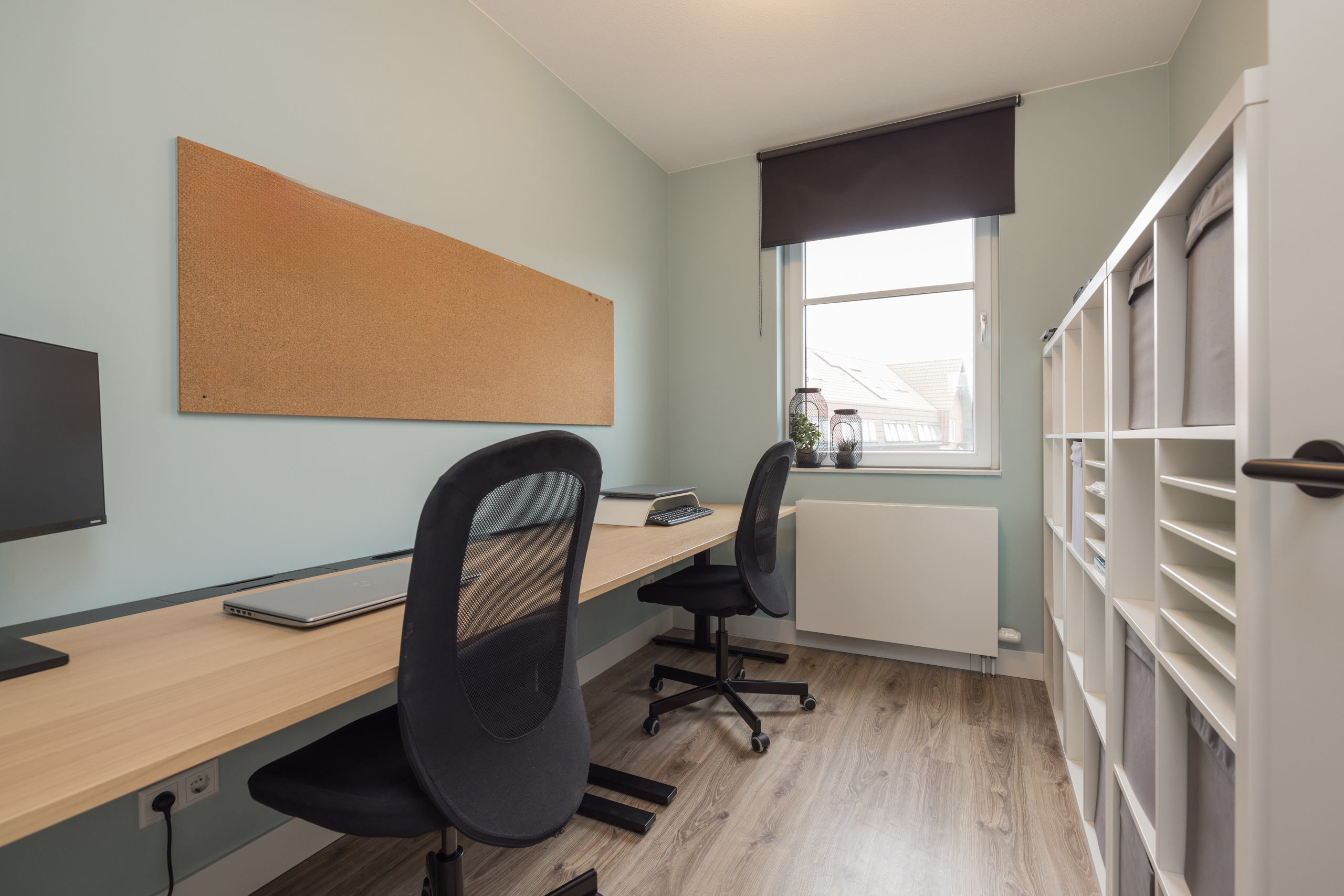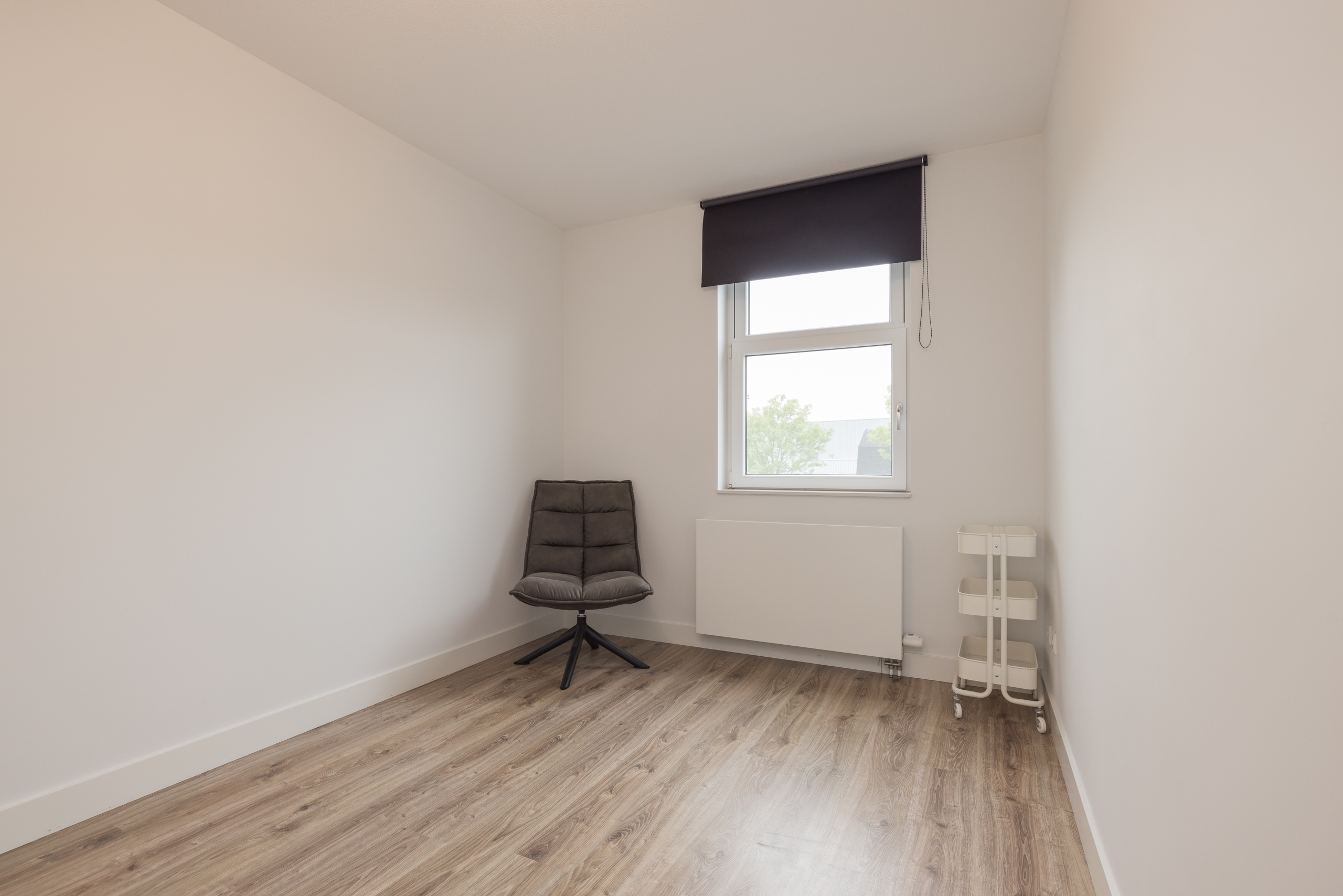 Aan de achterzijde bevinden zich een ruime 2e slaapkamer en 3e slaapkamer.