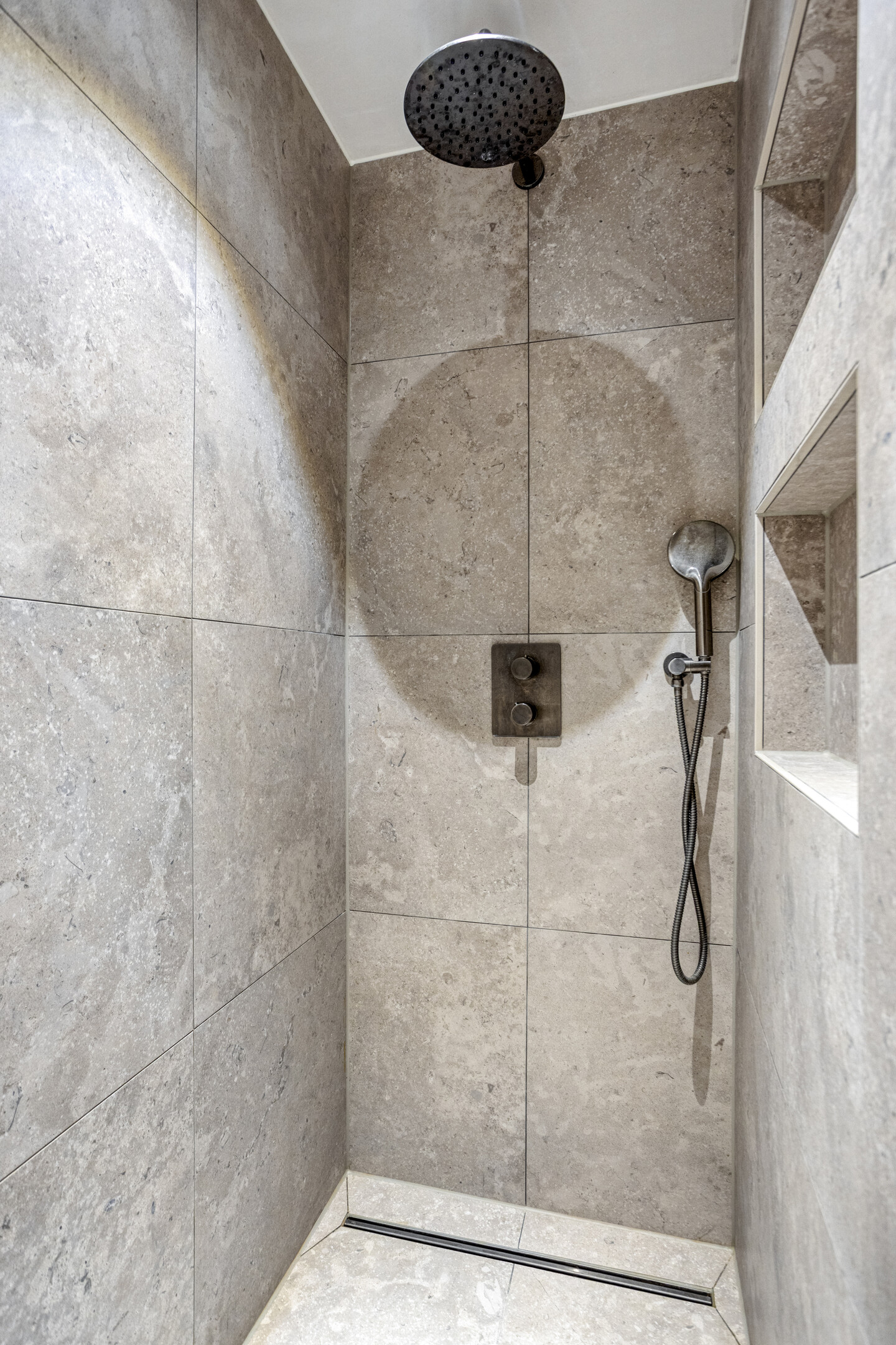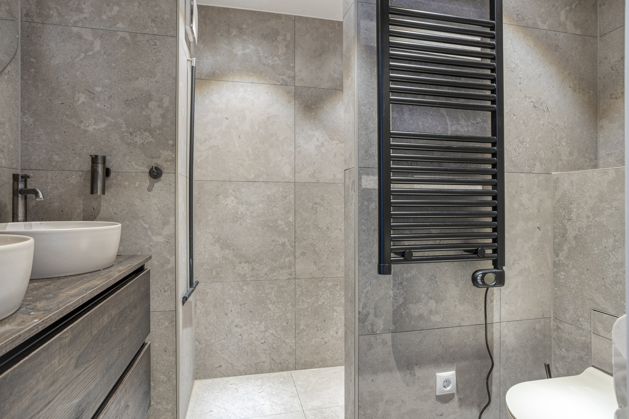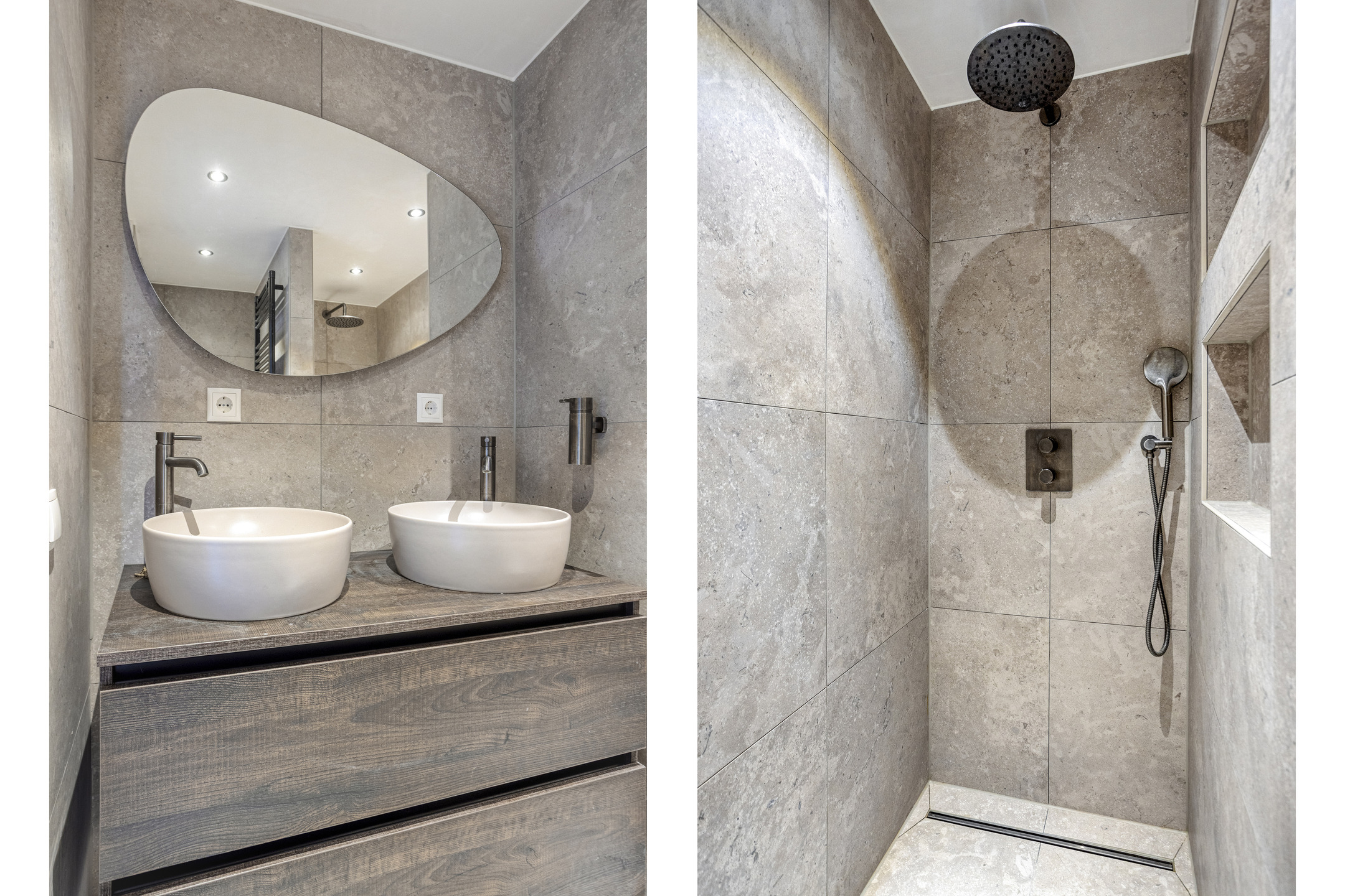 royale, vergrote badkamer (2025). Hier begin je de dag fris: een ruime inloopdouche, dubbel wastafelmeubel en toilet. Praktisch én luxe, precies goed. Ook voorzien van een goede mechanische ventilatie.