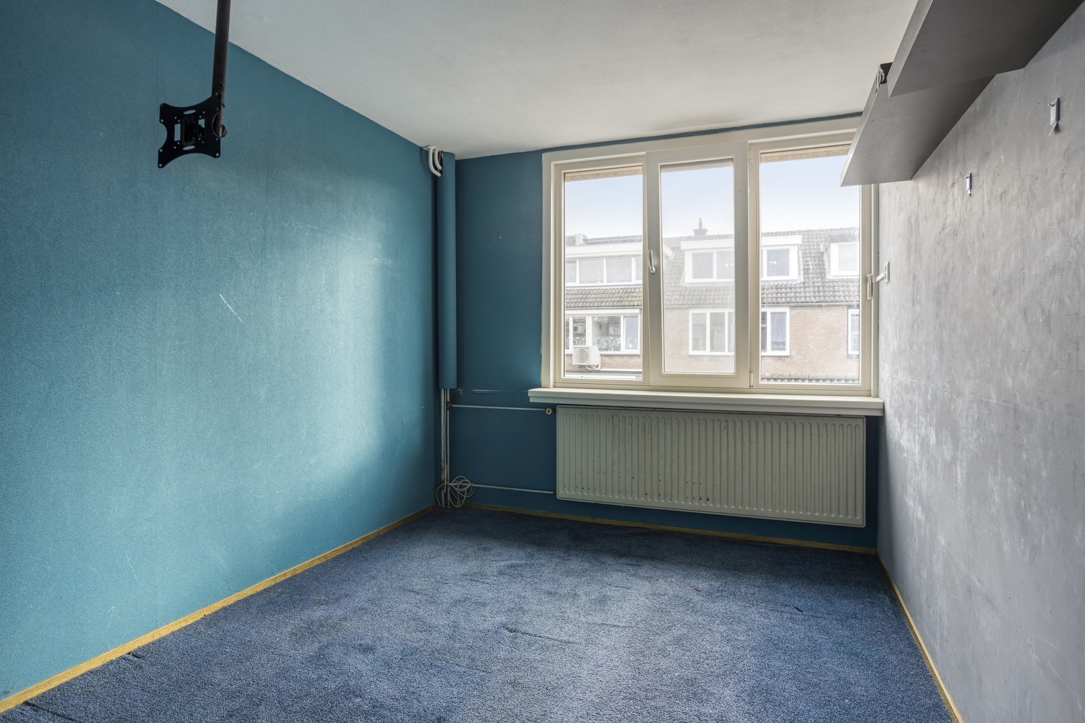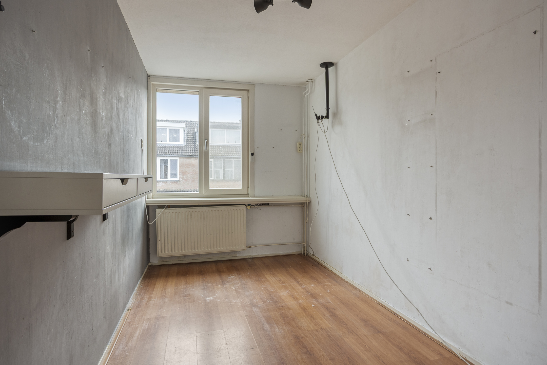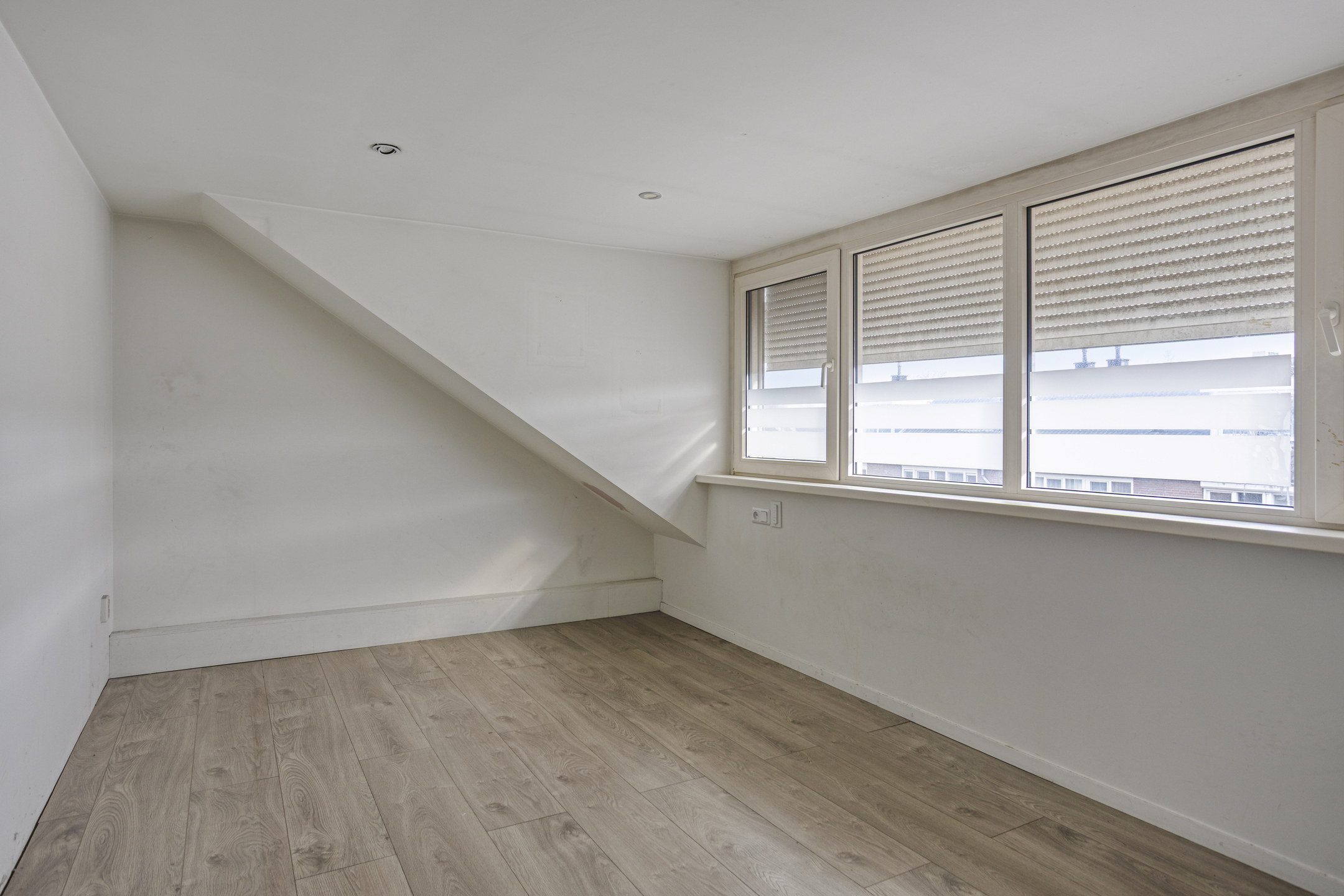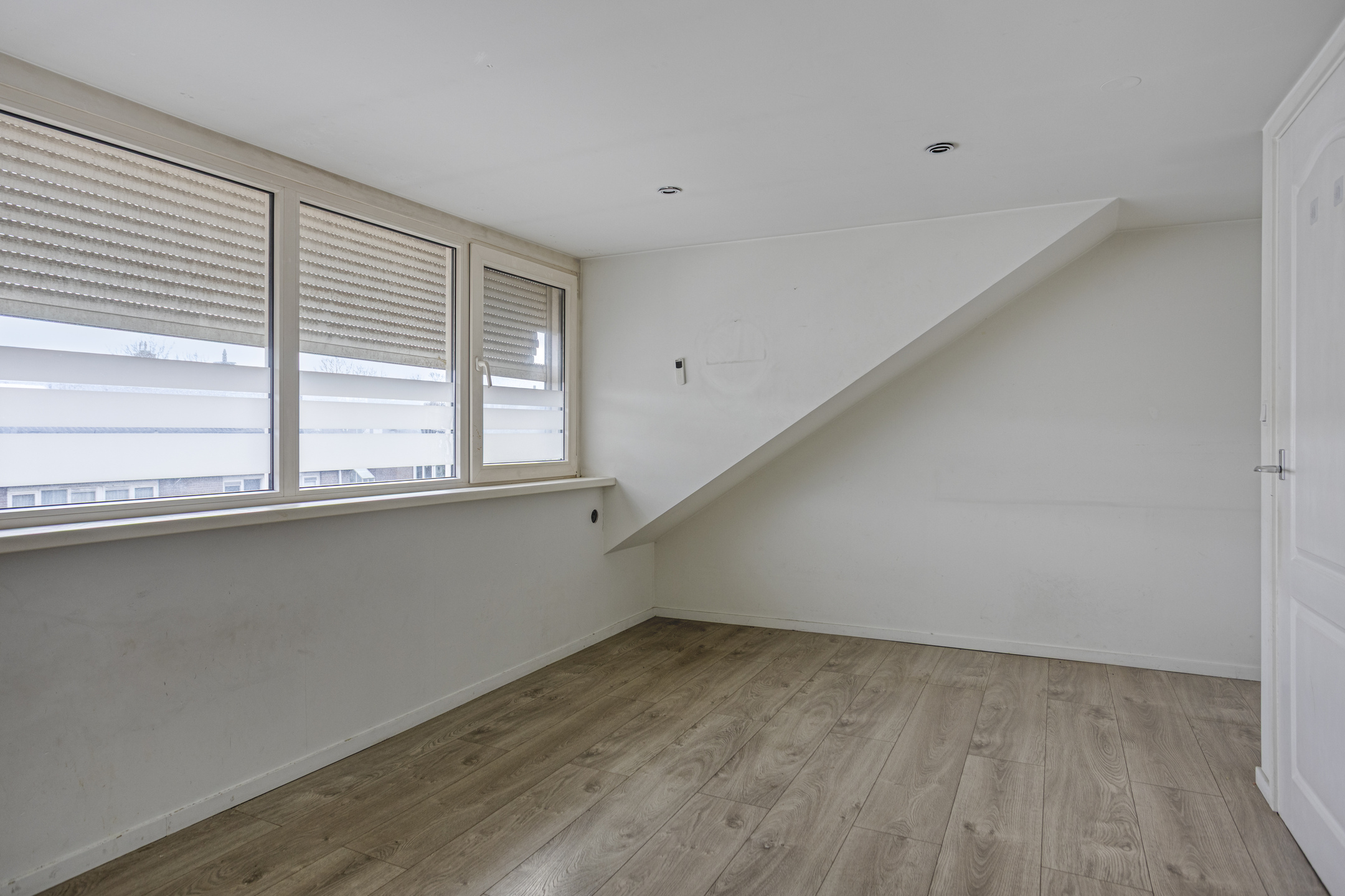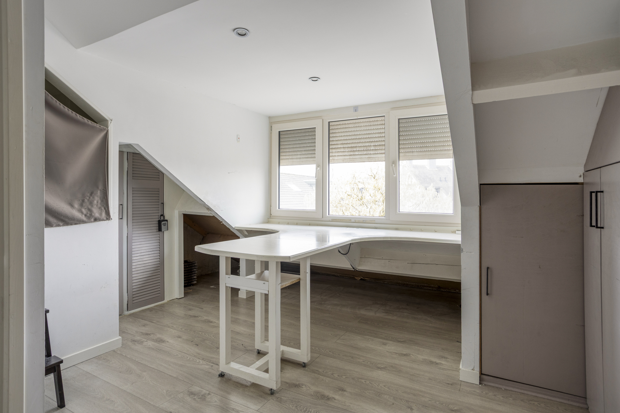 Dankzij twee dakkapellen aan voor- en achterzijde is deze verdieping verrassend ruim. Twee slaapkamers, vaste kasten onder de schuine delen en netjes weggewerkt: de cv-installatie (Remeha Tzerra 2019) en wasmachine. Alles op z’n plek.