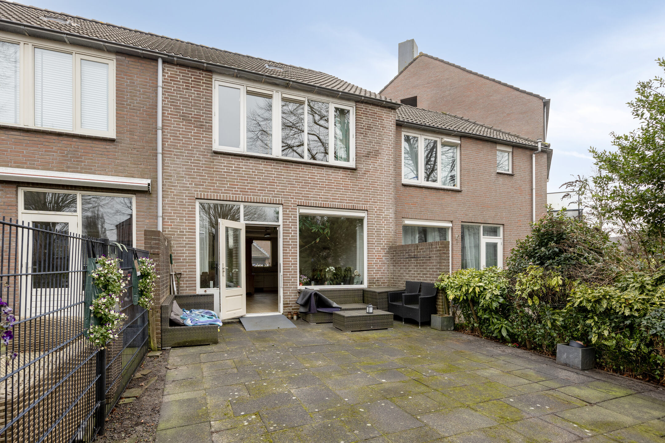 De achtertuin ligt heerlijk op het westen. Zon in de middag, avondlicht tot het laatst. Je hebt alle ruimte om groen en privacy naar eigen smaak vorm te geven.