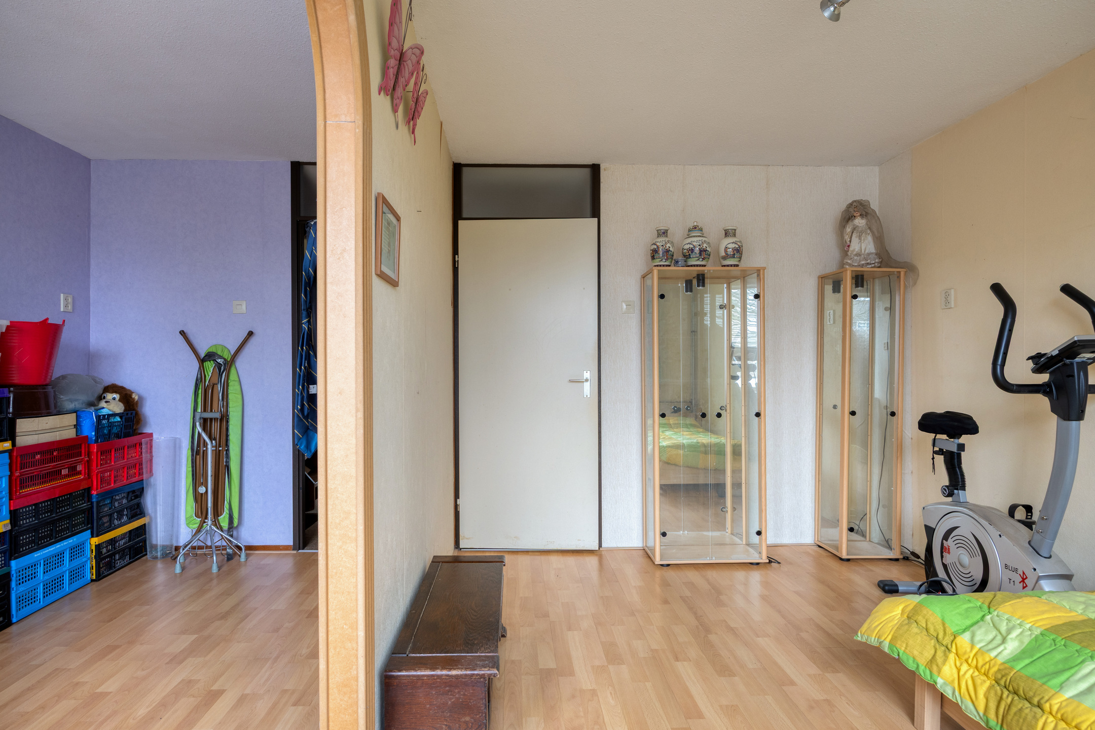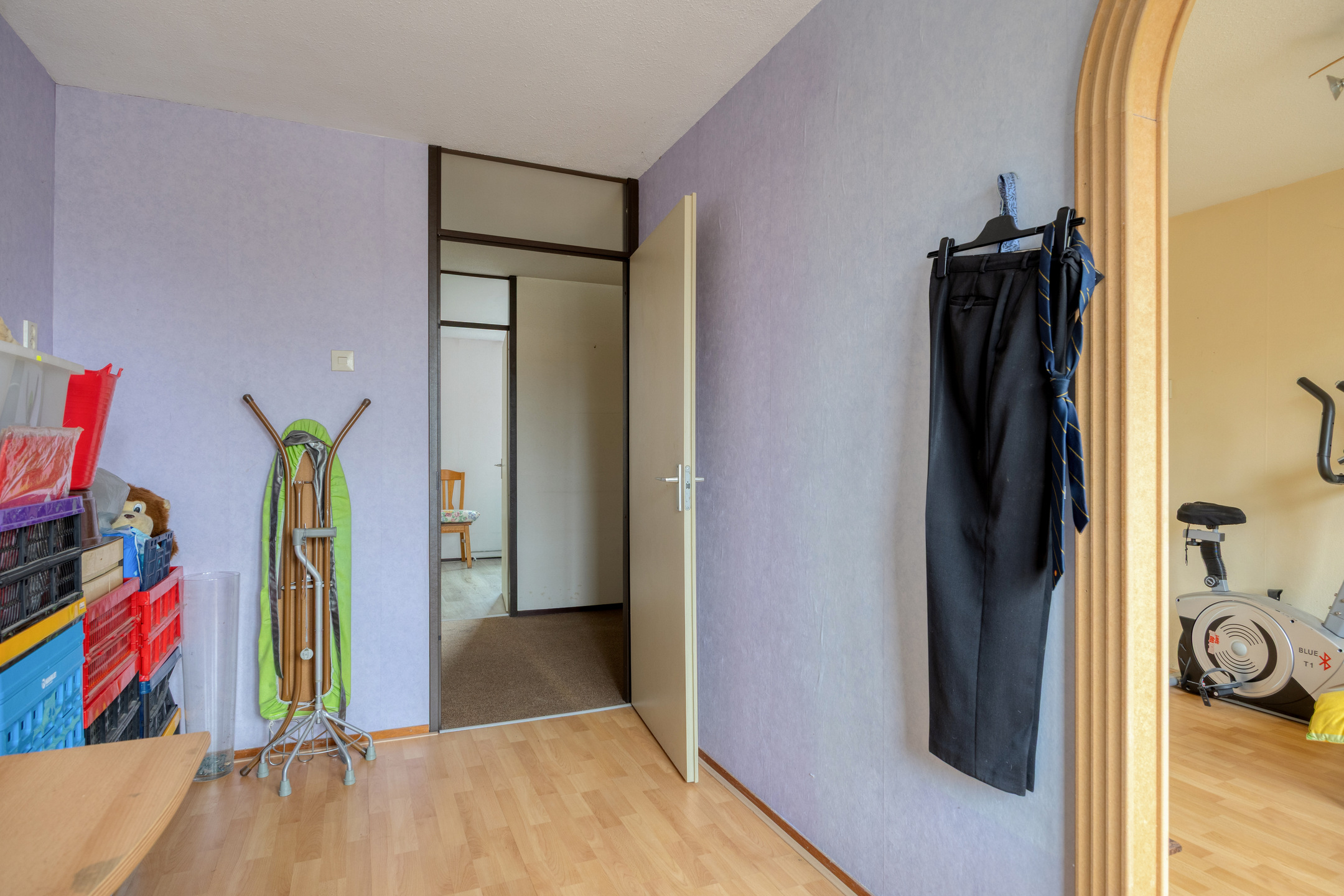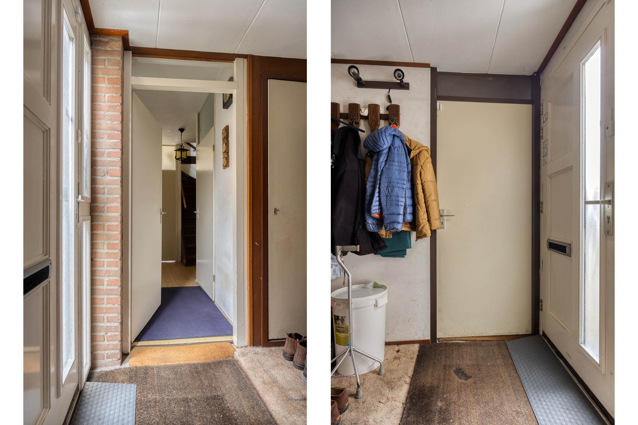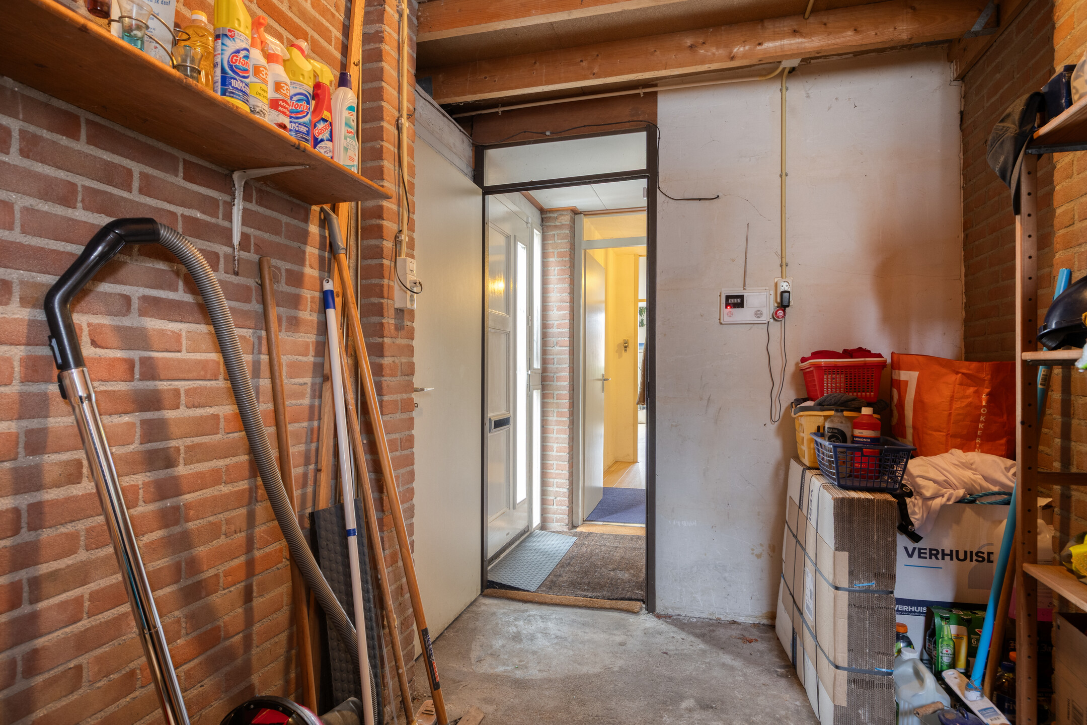 Je komt binnen via de voortuin. In de entree tref je direct de aangebouwde berging: ideaal voor fietsen, gereedschap of hobby’s, mét elektra en zowel van binnenuit als buitenom bereikbaar. De hal leidt verder