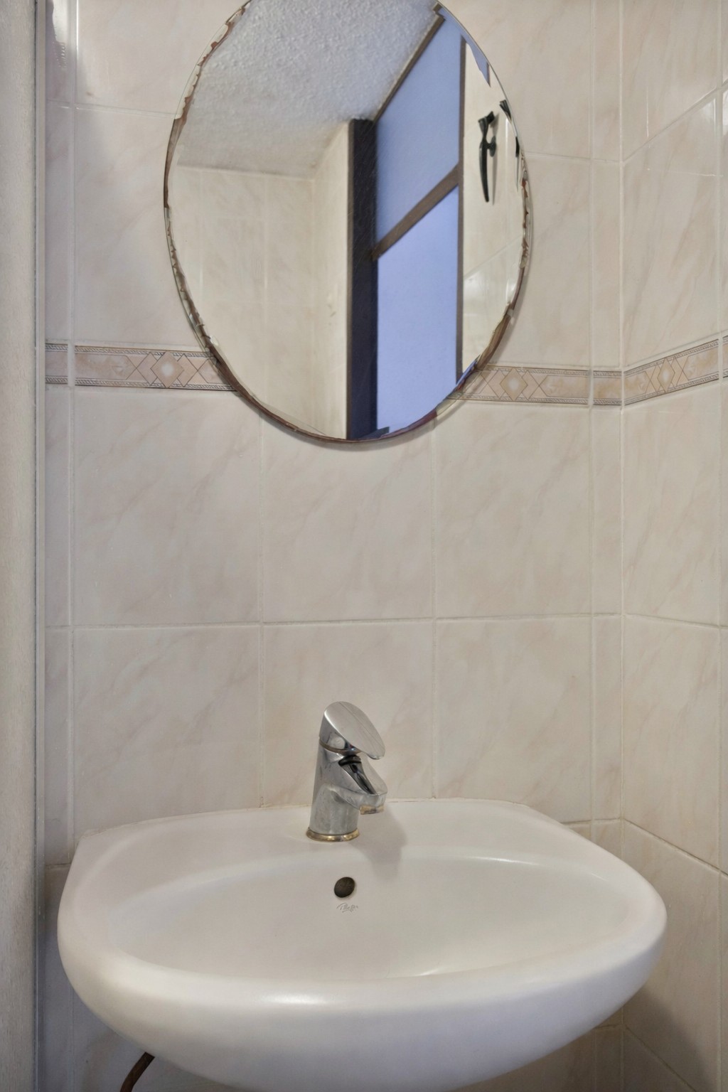 naar het toilet met fontein en vervolgens naar de woonkamer. Aan de voorzijde ligt de halfopen keuken, praktisch en overzichtelijk, uitgerust met koelkast, vaatwasser en gaskookplaat. In de woonkamer bevindt zich een praktische trapkast en via een deur is de zonnige achtertuin toegankelijk.