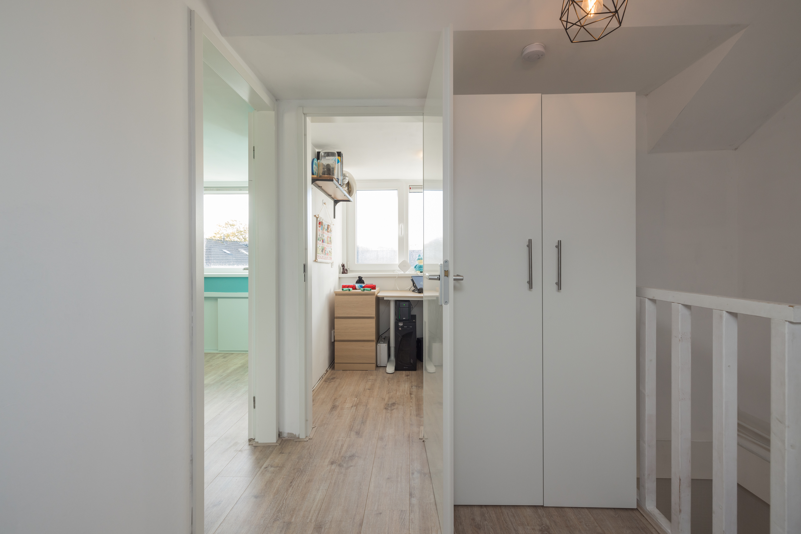 De zolderverdieping verrast. Door de brede kunststof dakkapel (2021) aan de achterzijde én een extra dakkapel aan de voorzijde is hier een zee aan ruimte ontstaan. In 2022 is deze verdieping praktisch ingedeeld met drie extra slaapkamers. De voorzolder herbergt de nieuwe cv-ketel (Atag, 2024) en de aansluitingen voor wasmachine en droger. Een fijne, volwaardige verdieping waar wonen, werken of hobbyen moeiteloos samenkomen.