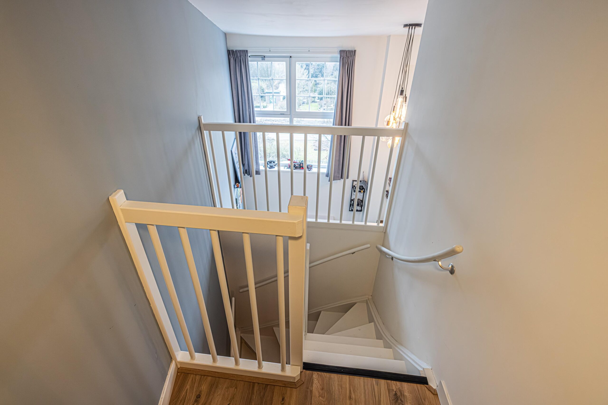 Middels een trap aan de zijkant van het appartement bereikt u de verdieping. Naast de trap is extra ruimte aanwezig die gebruikt kan worden als kleine werkruimte of berging.