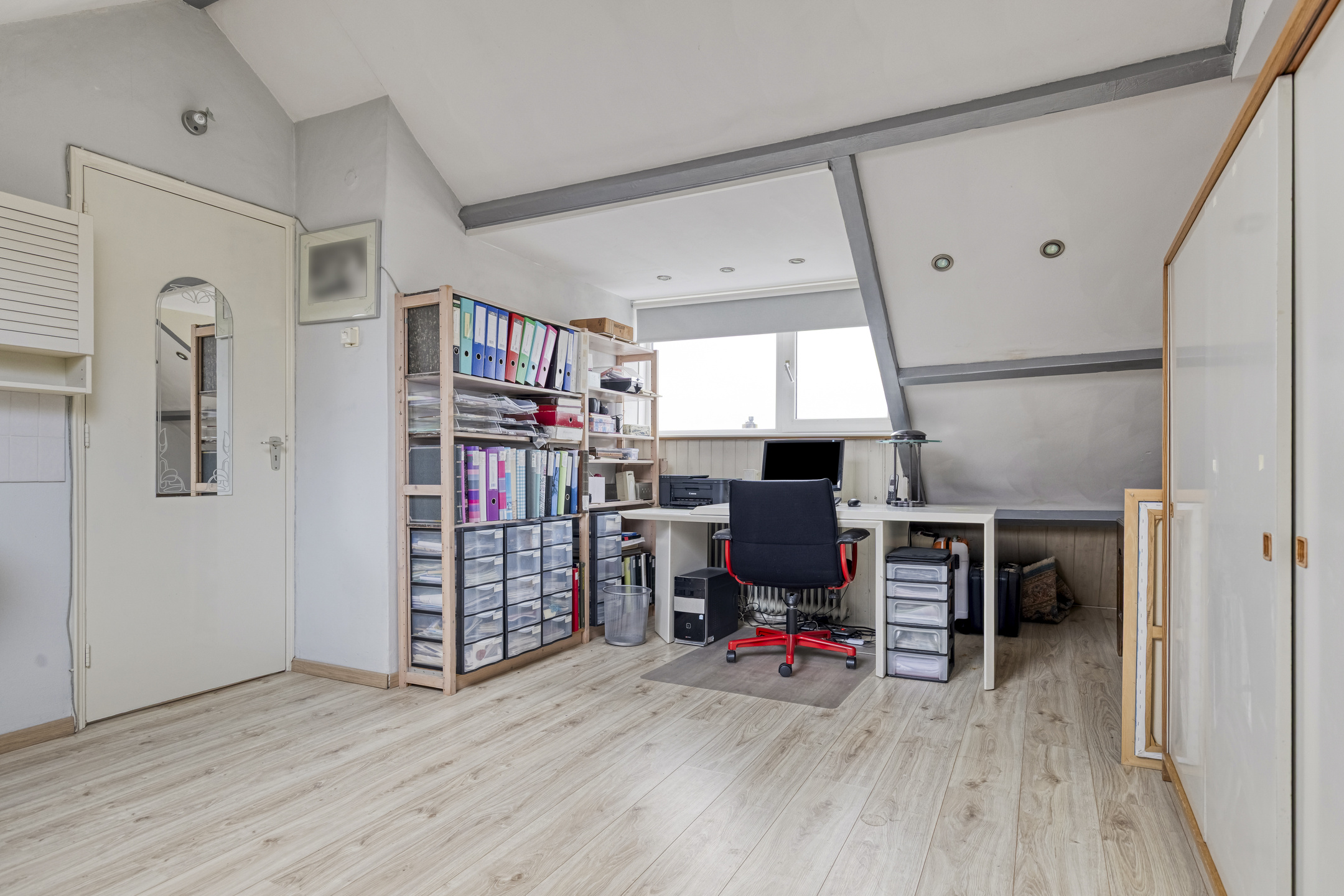 licht en voorzien van spotverlichting. Aan de achterzijde verbreedt de dakkapel de ruimte én het uitzicht. —een plek die aanvoelt als een eigen loft. Op het dak liggen 7 zonnepanelen (2022), een mooie bonus.