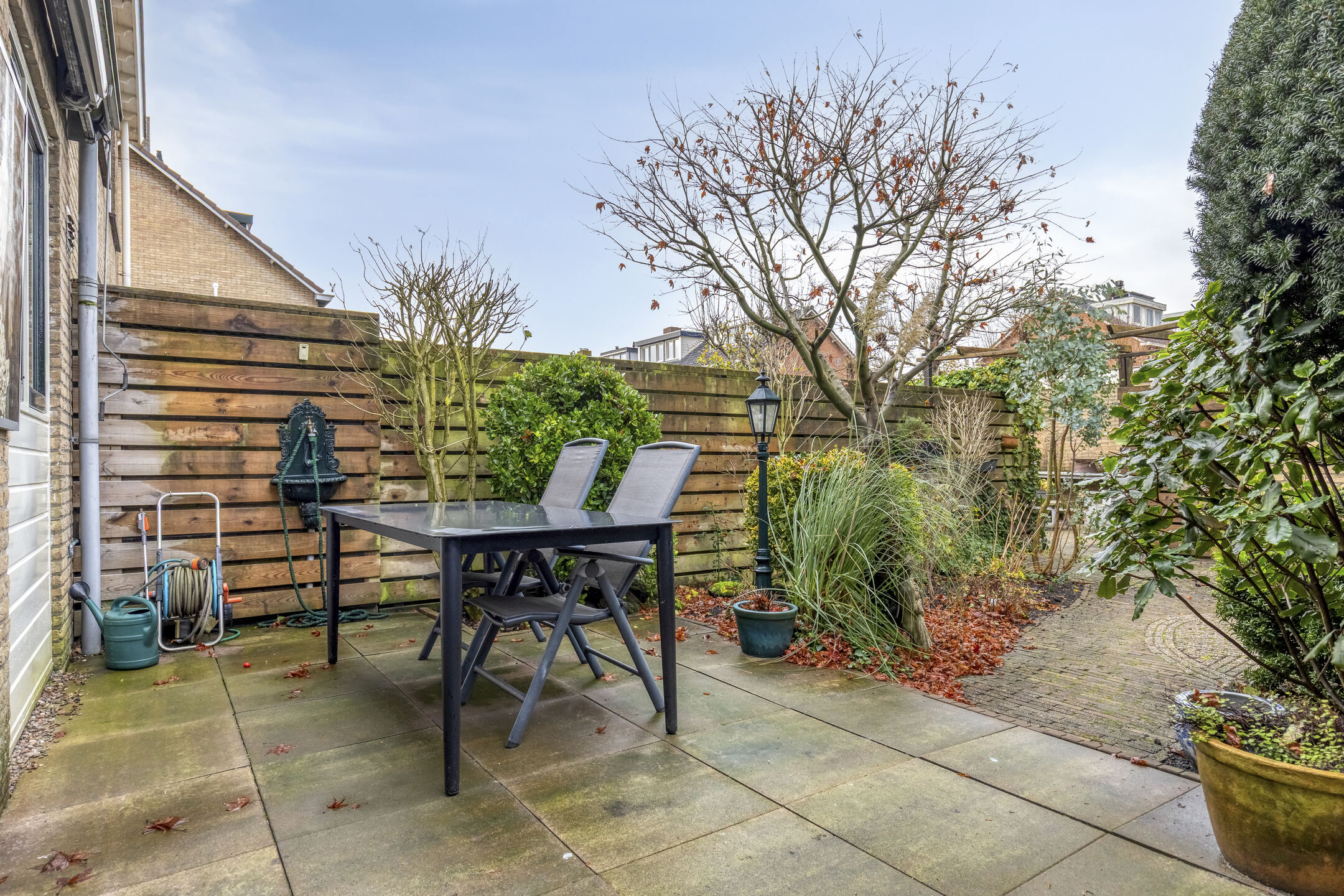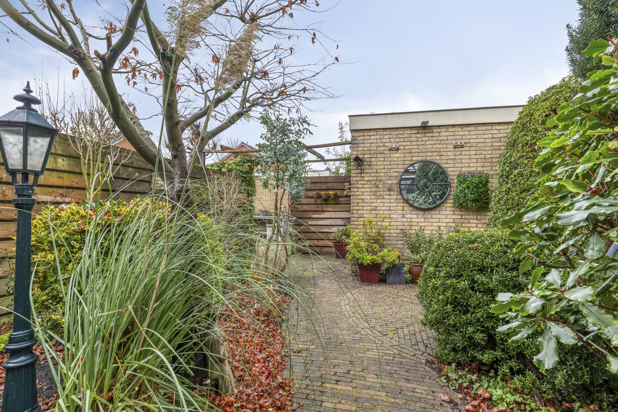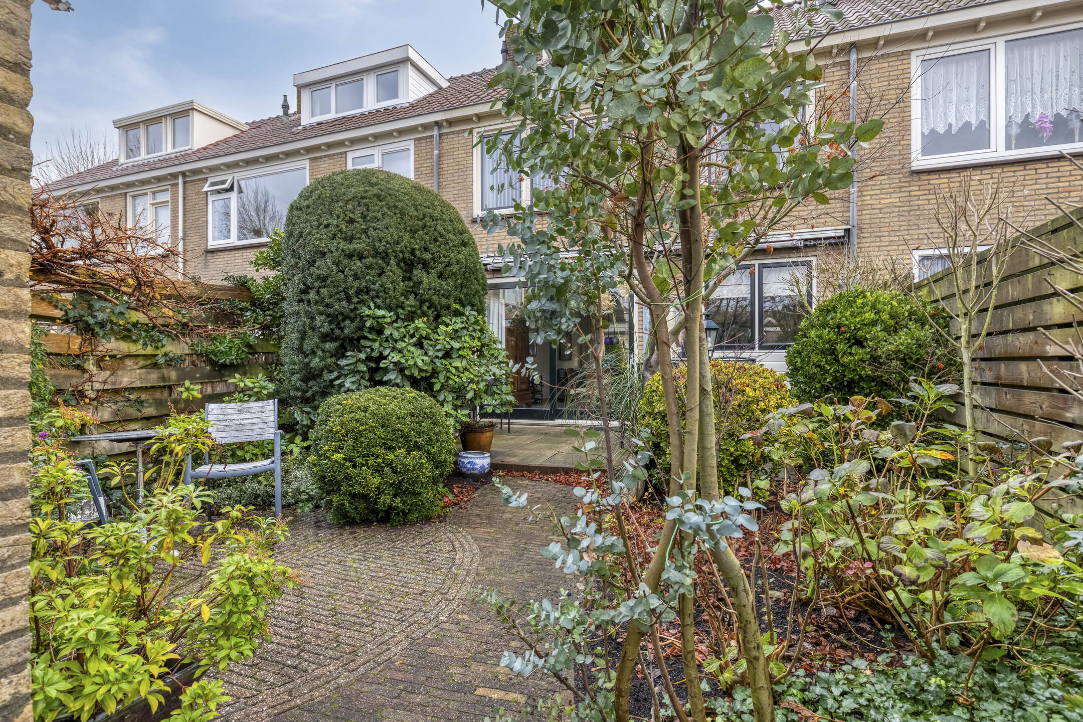 De voortuin is diep, groen en voorzien van een markies, terwijl de straat zelf ruim is opgezet met veel groen en voldoende parkeergelegenheid. Achter de woning ligt een heerlijke achtertuin op het westen—zon tot laat in de avond. De brede zonwering (6,25 m), sierbestrating, vaste beplanting en het terras creëren een fijne plek om te genieten. Achterin staat een stenen berging met elektra. En dan de verrassing: aansluitend bereik je het extra perceel van 37 m², dat de tuin een royale verlenging geeft. De tuin heeft zoveel ruimte dat er talloze mogelijkheden zijn, bijvoorbeeld het maken van een buitenkeuken, waarmee je een heerlijke plek creëert waar je volop kunt koken én gezellig kunt samen zijn met familie en vrienden.