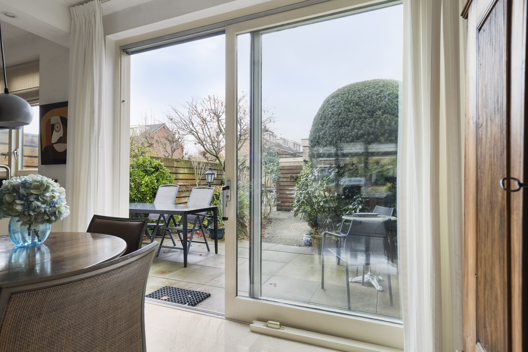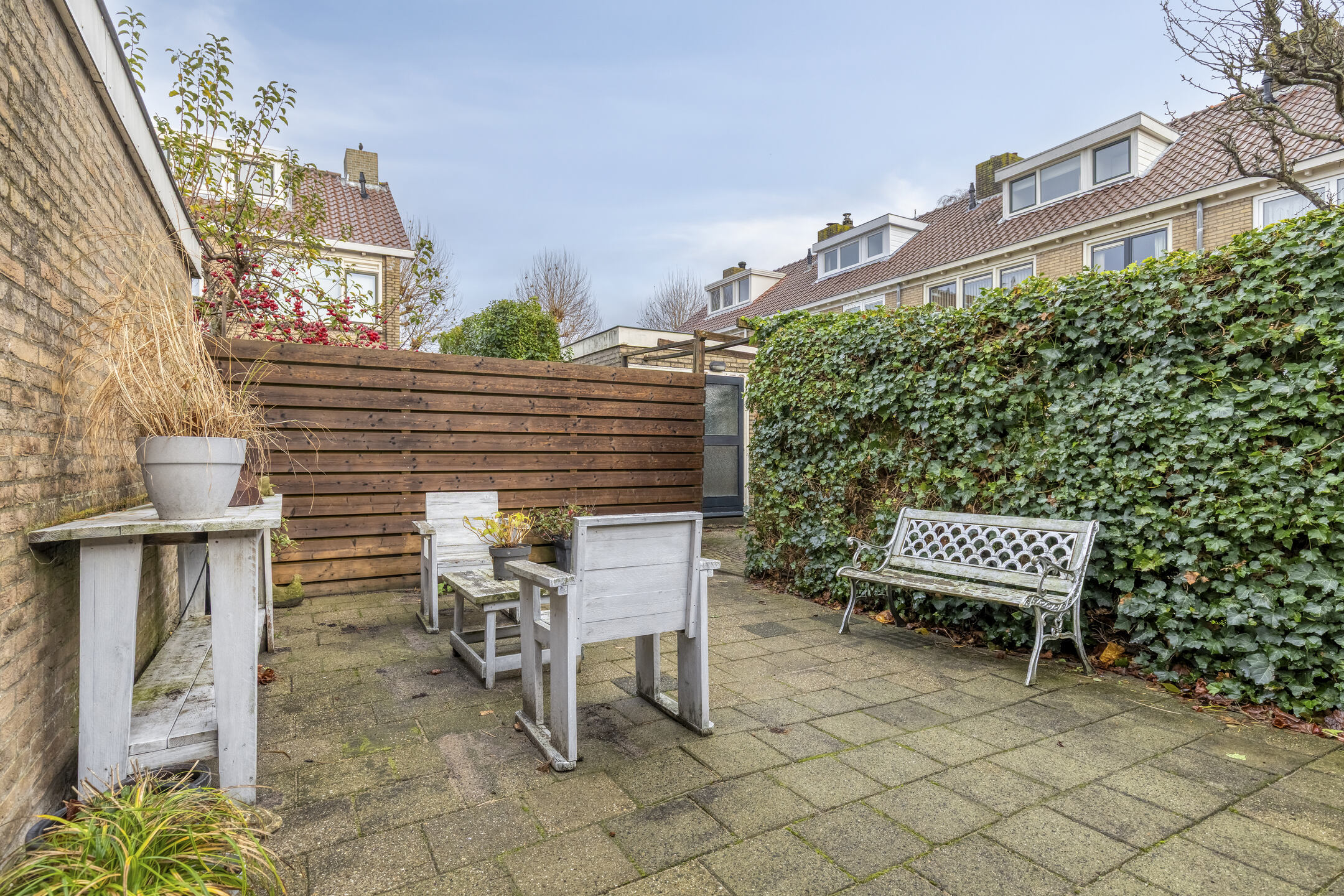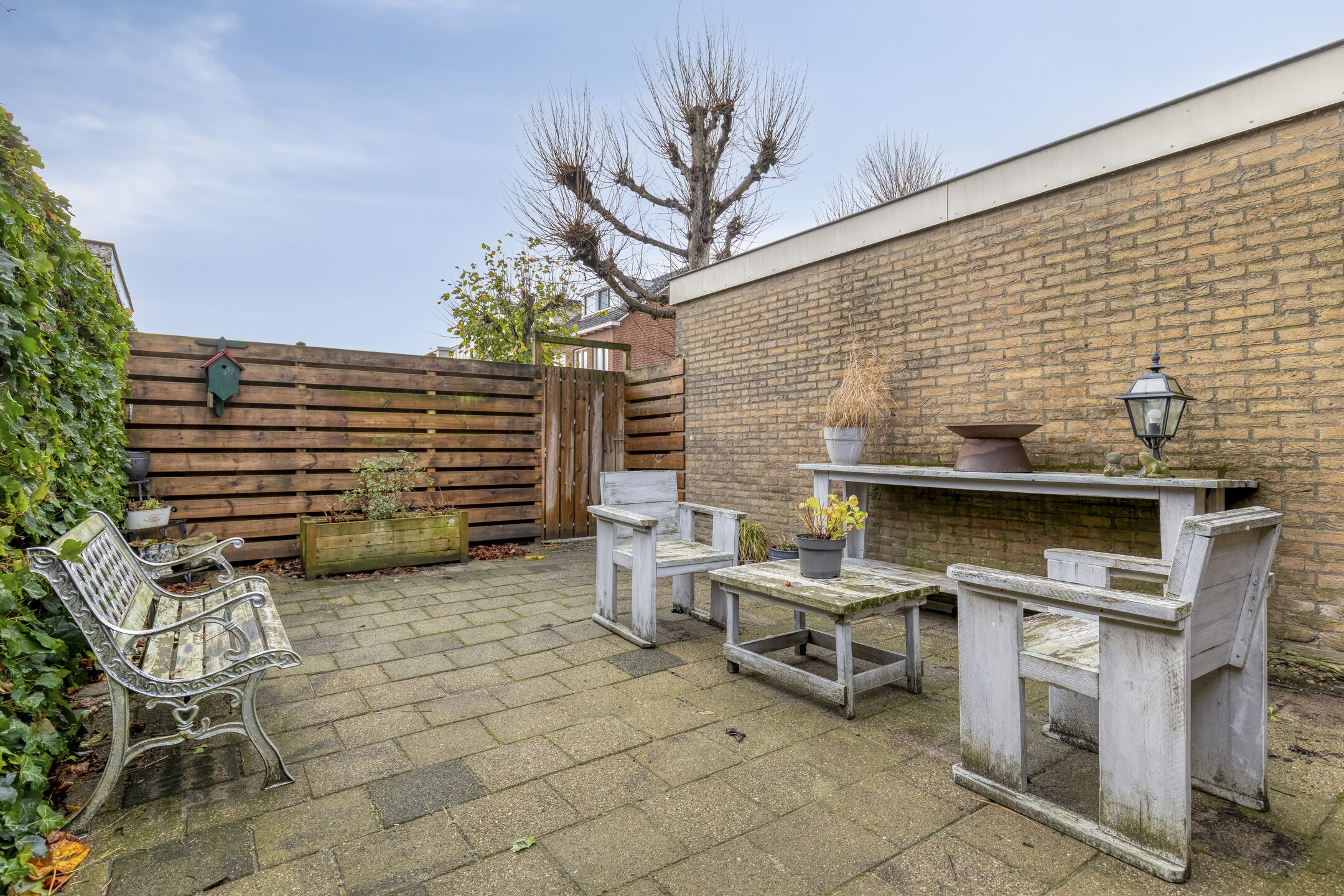 De voortuin is diep, groen en voorzien van een markies, terwijl de straat zelf ruim is opgezet met veel groen en voldoende parkeergelegenheid. Achter de woning ligt een heerlijke achtertuin op het westen—zon tot laat in de avond. De brede zonwering (6,25 m), sierbestrating, vaste beplanting en het terras creëren een fijne plek om te genieten. Achterin staat een stenen berging met elektra. En dan de verrassing: aansluitend bereik je het extra perceel van 37 m², dat de tuin een royale verlenging geeft. De tuin heeft zoveel ruimte dat er talloze mogelijkheden zijn, bijvoorbeeld het maken van een buitenkeuken, waarmee je een heerlijke plek creëert waar je volop kunt koken én gezellig kunt samen zijn met familie en vrienden.