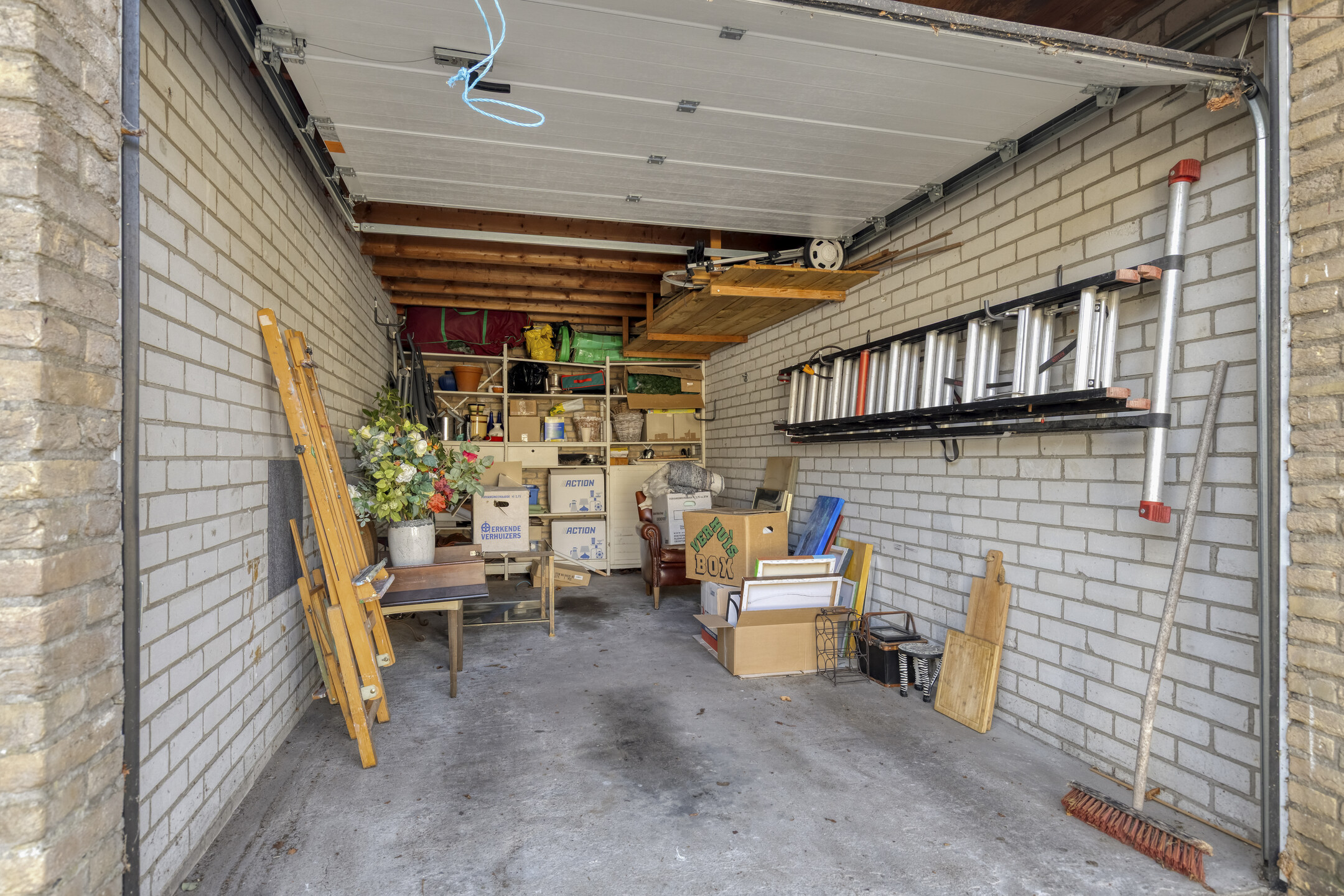 Achter dit geheel ligt het mandelige perceel dat toegang biedt tot de vrijstaande stenen garage — ideaal voor auto, hobby of opslag.
