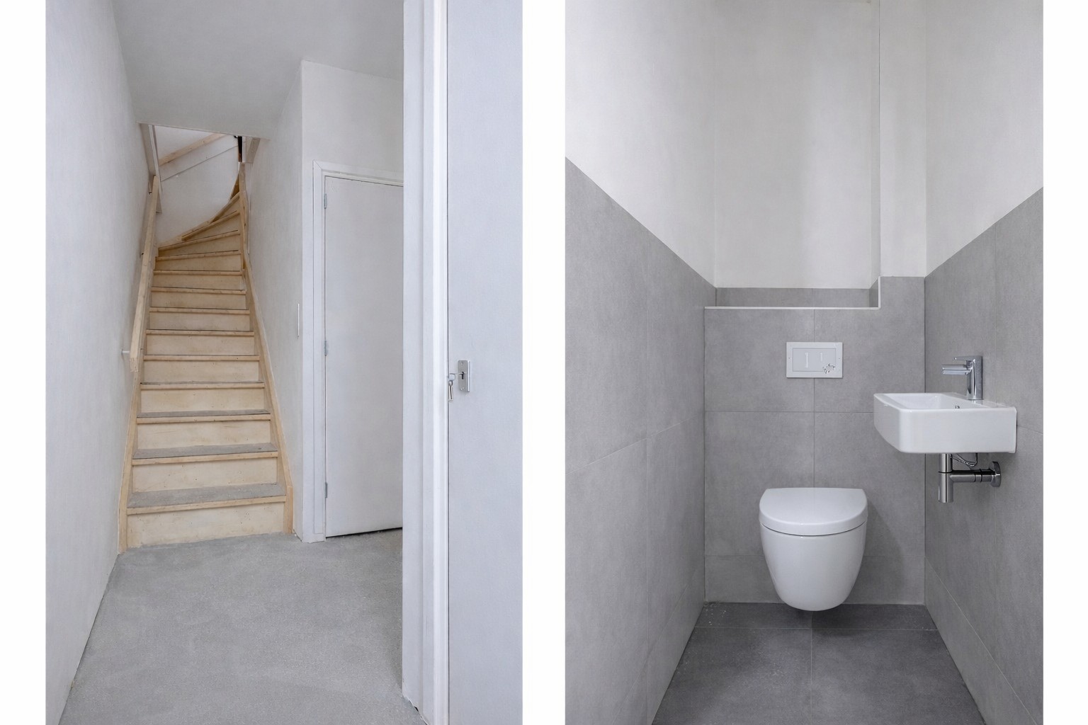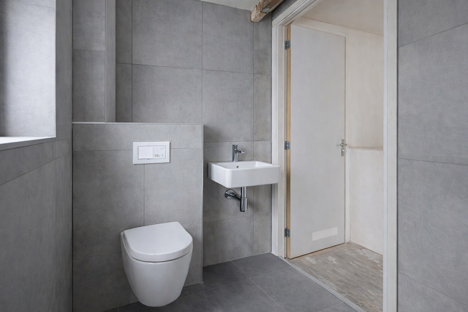 heb je lekker daglicht binnen. De badkamer is geheel gerenoveerd en afgewerkt in grijze kleurstelling. Hierin is een douche, toilet, wastafel en aansluiting voor de wasmachine gesitueerd.