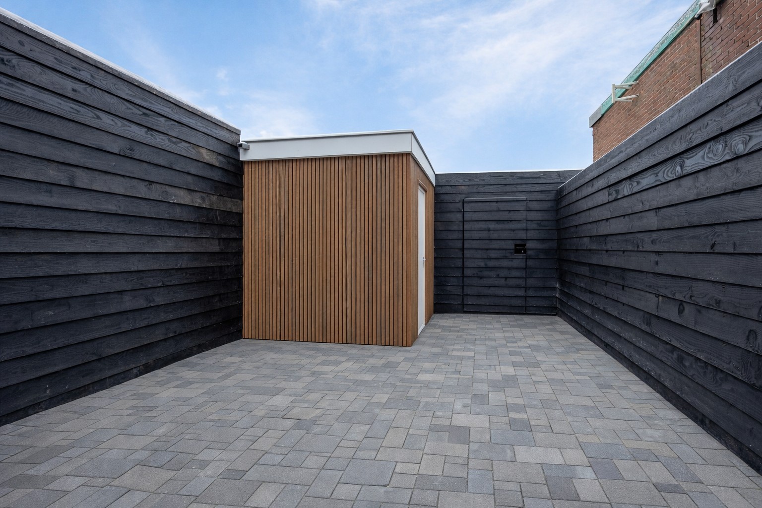 In de tuin van ca. 8 meter diep op het noordwesten gelegen, zijn drainagetegels aangelegd om het regenwater snel af te voeren. Onder de drainagetegels ligt een betonnen plaat. Ideaal als je geen groene vingers hebt, zodat hier geen onkruid doorheen kan groeien. Met gezellige plantenbakken kan je je beplanting aanbrengen. De vernieuwde houten berging is lekker ruim en is voorzien van elektra. De handige achterom vanuit de achtertuin maakt het plaatje compleet. Parkeren in de directe omgeving en voor de kinderen ligt de speeltuin om de hoek.