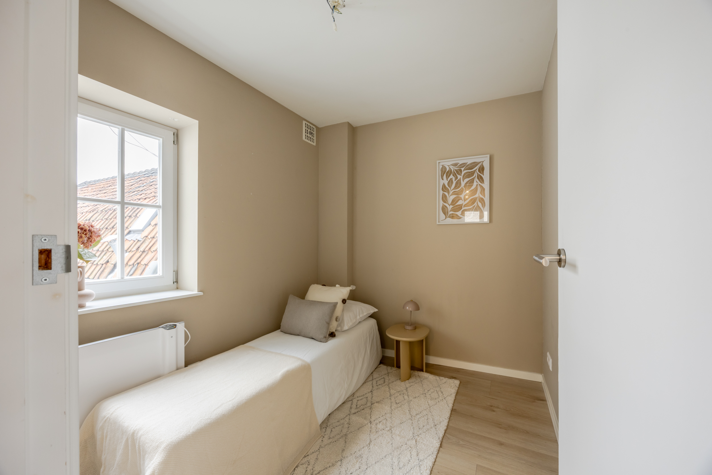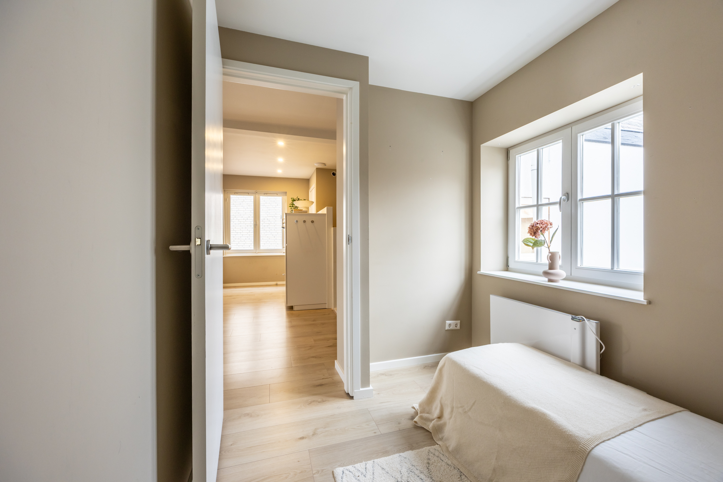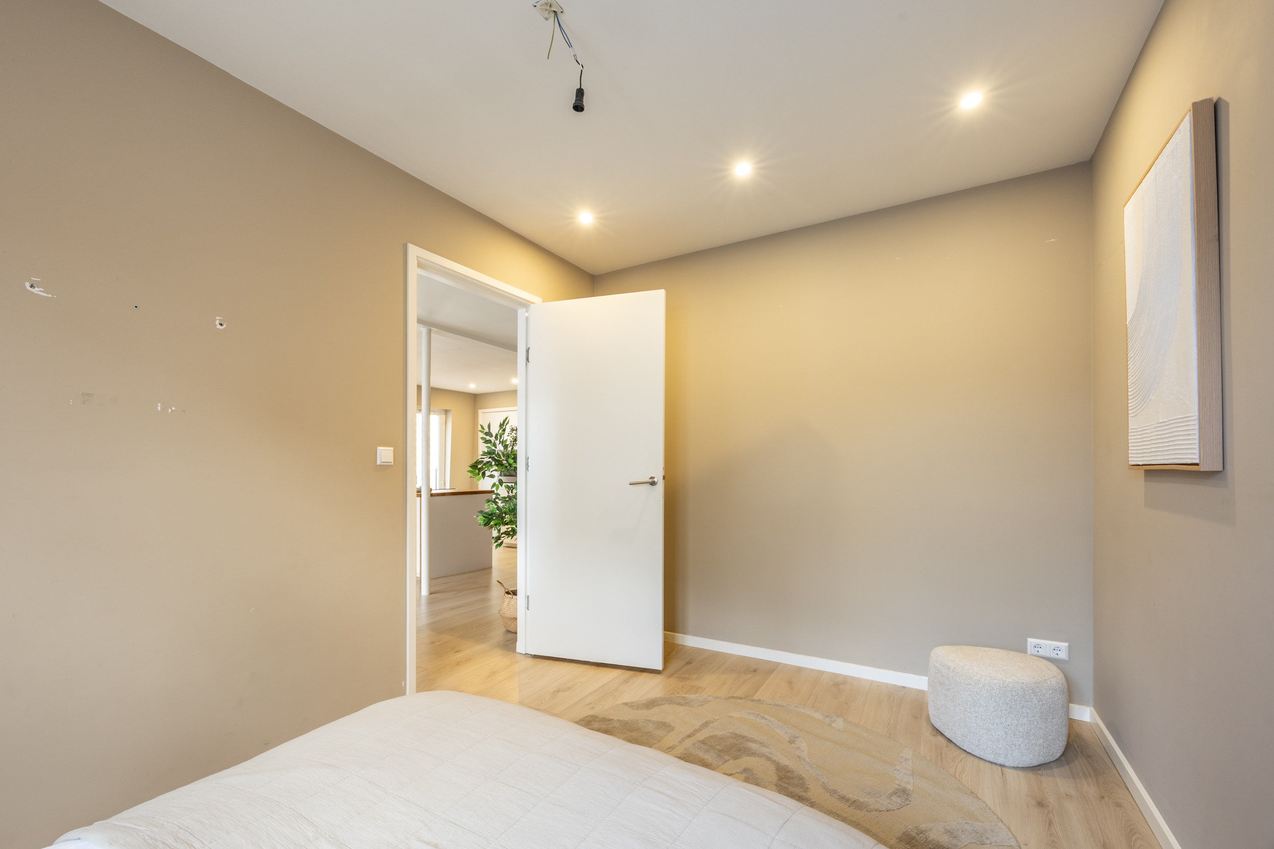 De gehele verdieping is afgewerkt met een lichte laminaatvloer en strak gestucte wanden.