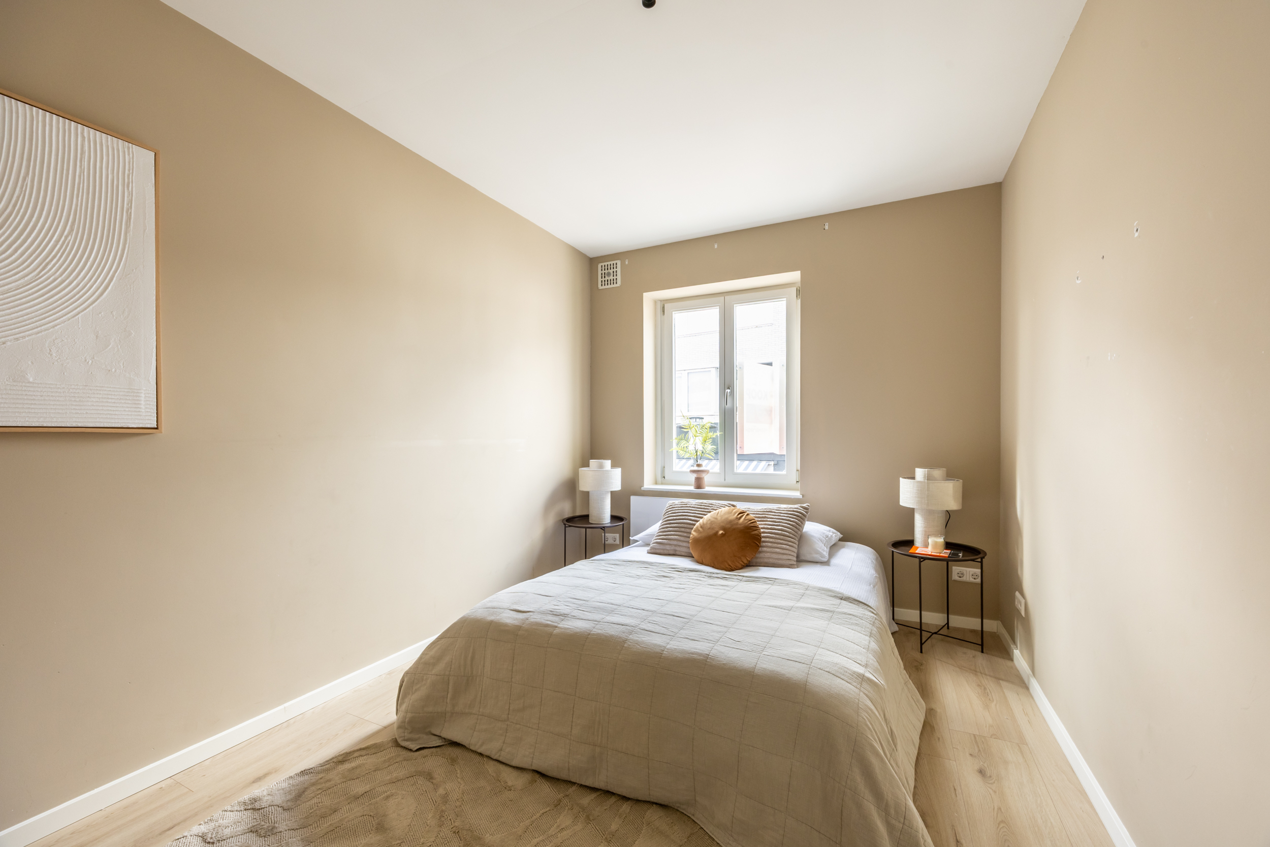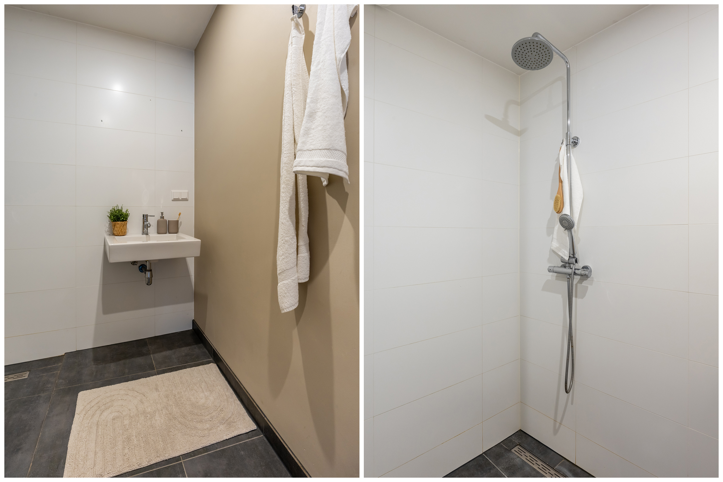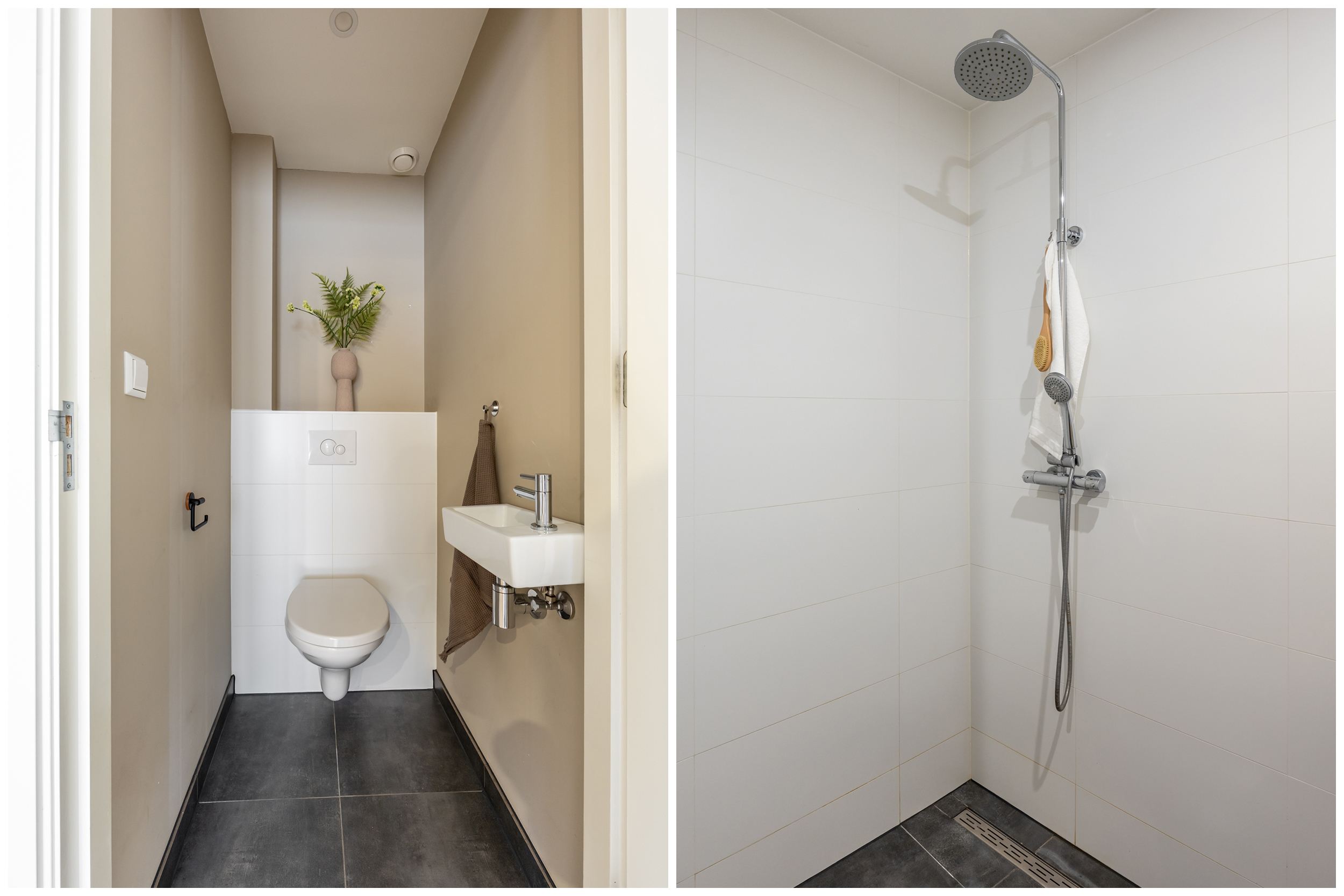 De gehele verdieping is afgewerkt met een lichte laminaatvloer en strak gestucte wanden.