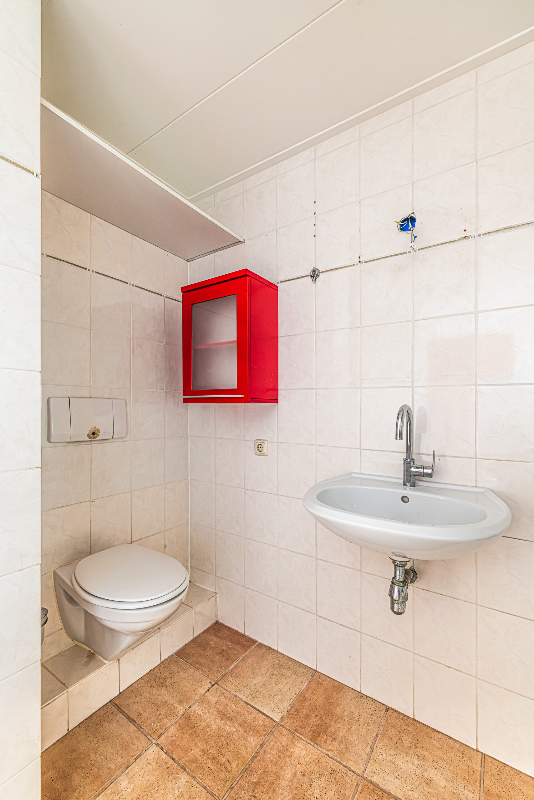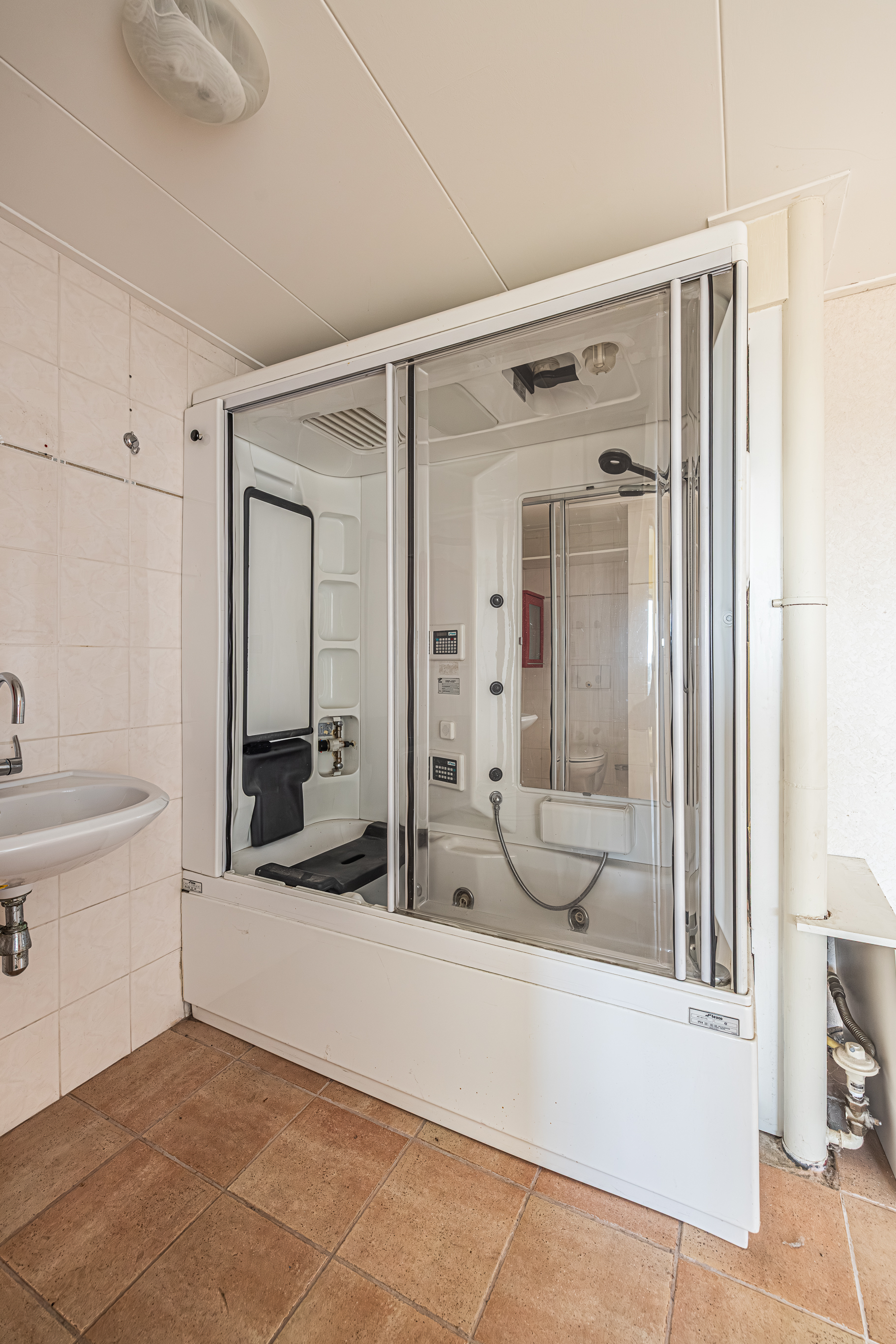 De slaapkamer is royaal en licht en is voorzien van een vaste kast – een plek waar de ochtendzon naar binnen valt. De badkamer beschikt over een combinatie douche/ligbad, wastafel en toilet: eenvoudig, maar klaar om omgetoverd te worden tot jouw eigen spa.
