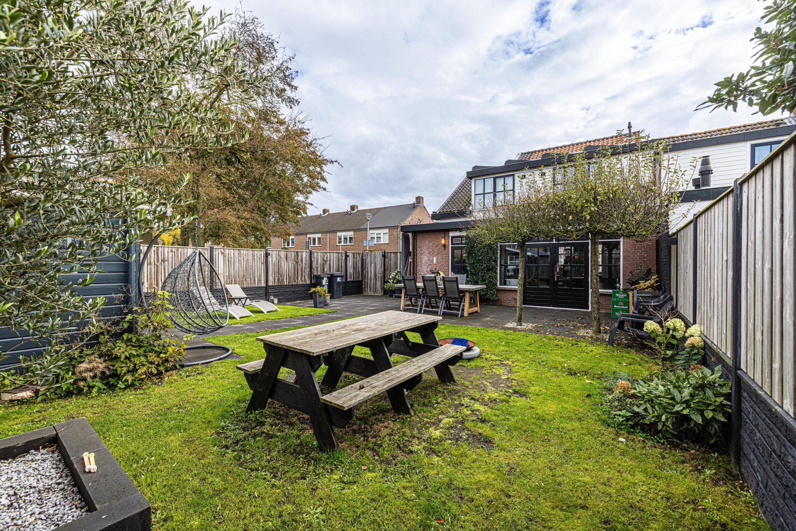 De diepe achtertuin (ca. 12 m x 12 m) is een waar buitenparadijs: fraai aangelegd met sierbestrating, terrassen, gazon en borders met vaste beplanting. Dankzij de ideale ligging geniet u hier de hele dag van de zon. De royale afmetingen bieden ruimte voor een groot opzetzwembad (vanaf ca. 5 meter) of een trampoline — perfect voor zomerse dagen. De tuin is volledig omgeven door houten schuttingen en biedt daardoor veel privacy.