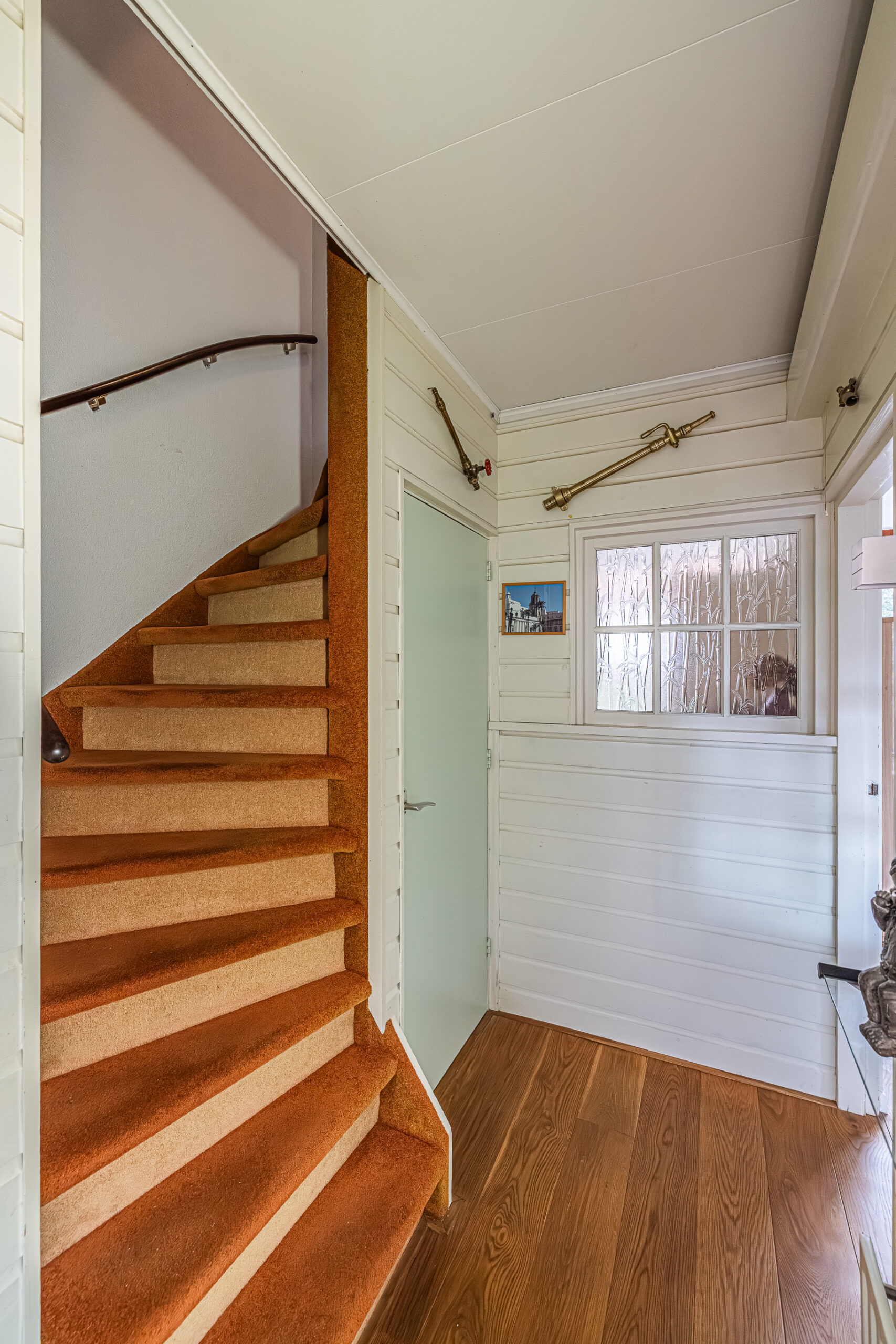 Vanaf de overloop de open trap naar de 2e verdieping.