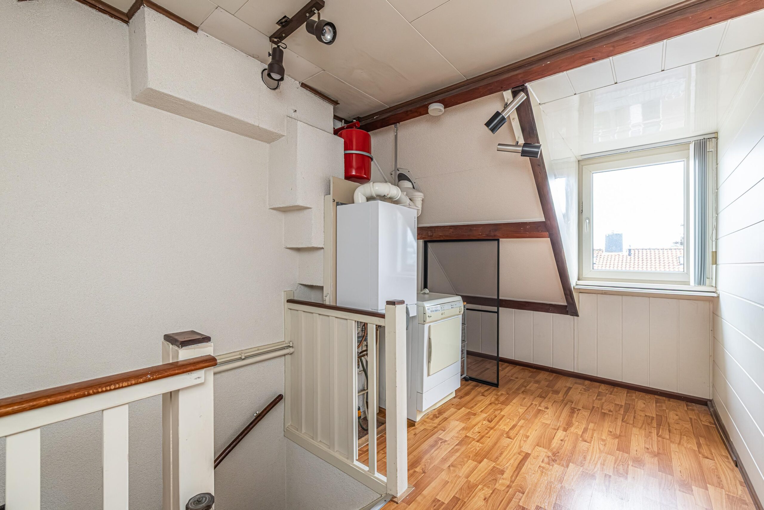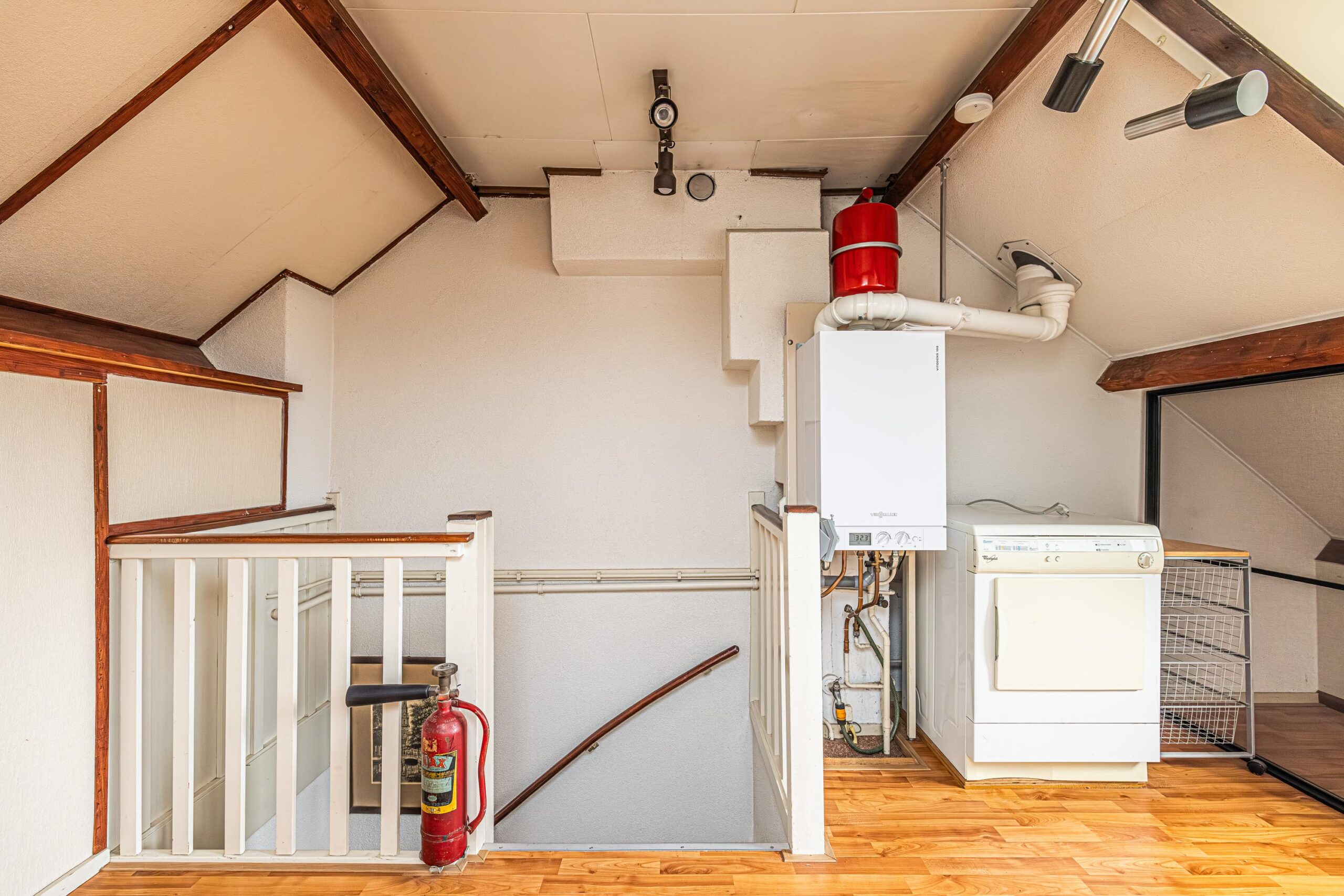 Overloop met dakkapel, opstelplaats van de CV-combiketel en de nodige bergruimte onder het dakvlak.