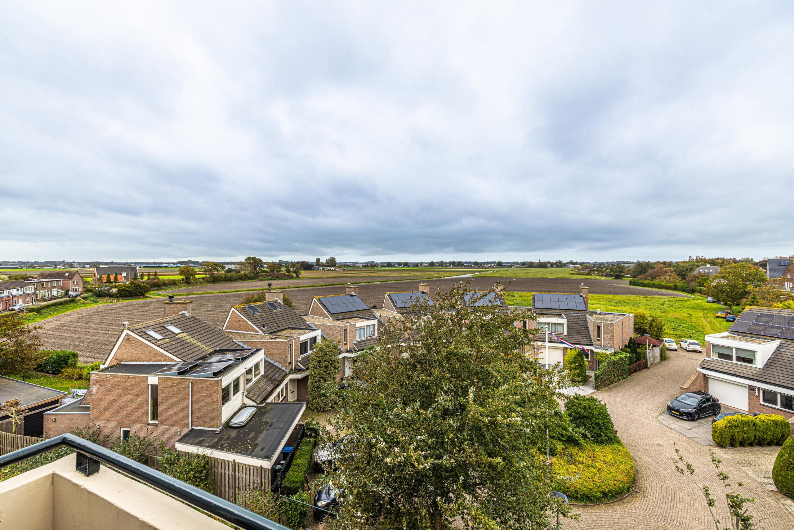 Aan de voorzijde ligt de lichte woonkamer met aansluitende eetkamer (samen ca. 29 m²). Dankzij grote ramen aan beide zijden baadt de ruimte in daglicht. Aan de voorzijde kijk je uit over het dorp en aan de achterzijde zie je de bollenvelden. Het uitzicht is fantastisch!