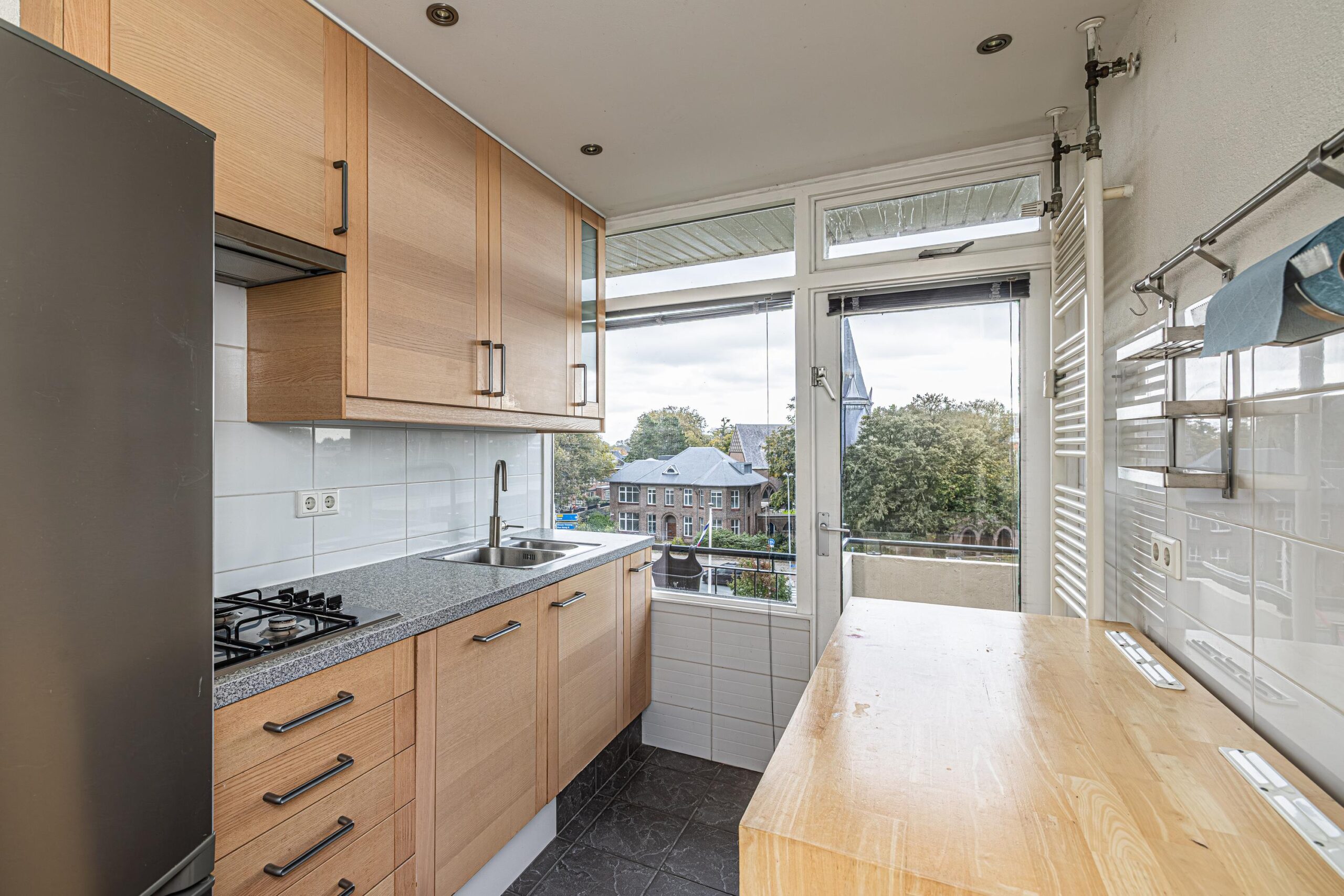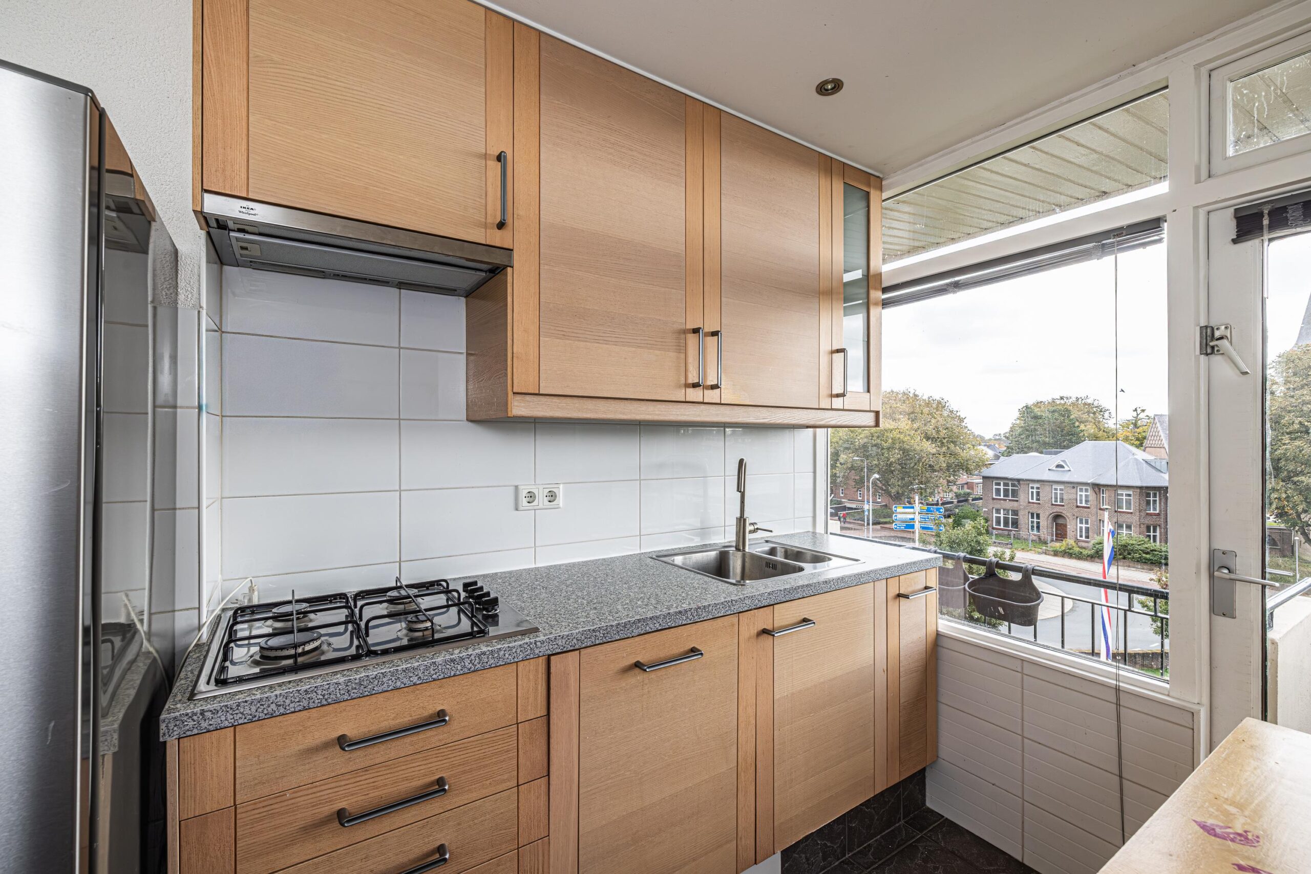 De gesloten keuken is modern en sfeervol, met whitewash grenen fronten, inbouwapparatuur, en ruimte voor wasmachine en droger. Vanuit hier stap je zó het balkon op voor een kop koffie in de ochtendzon.