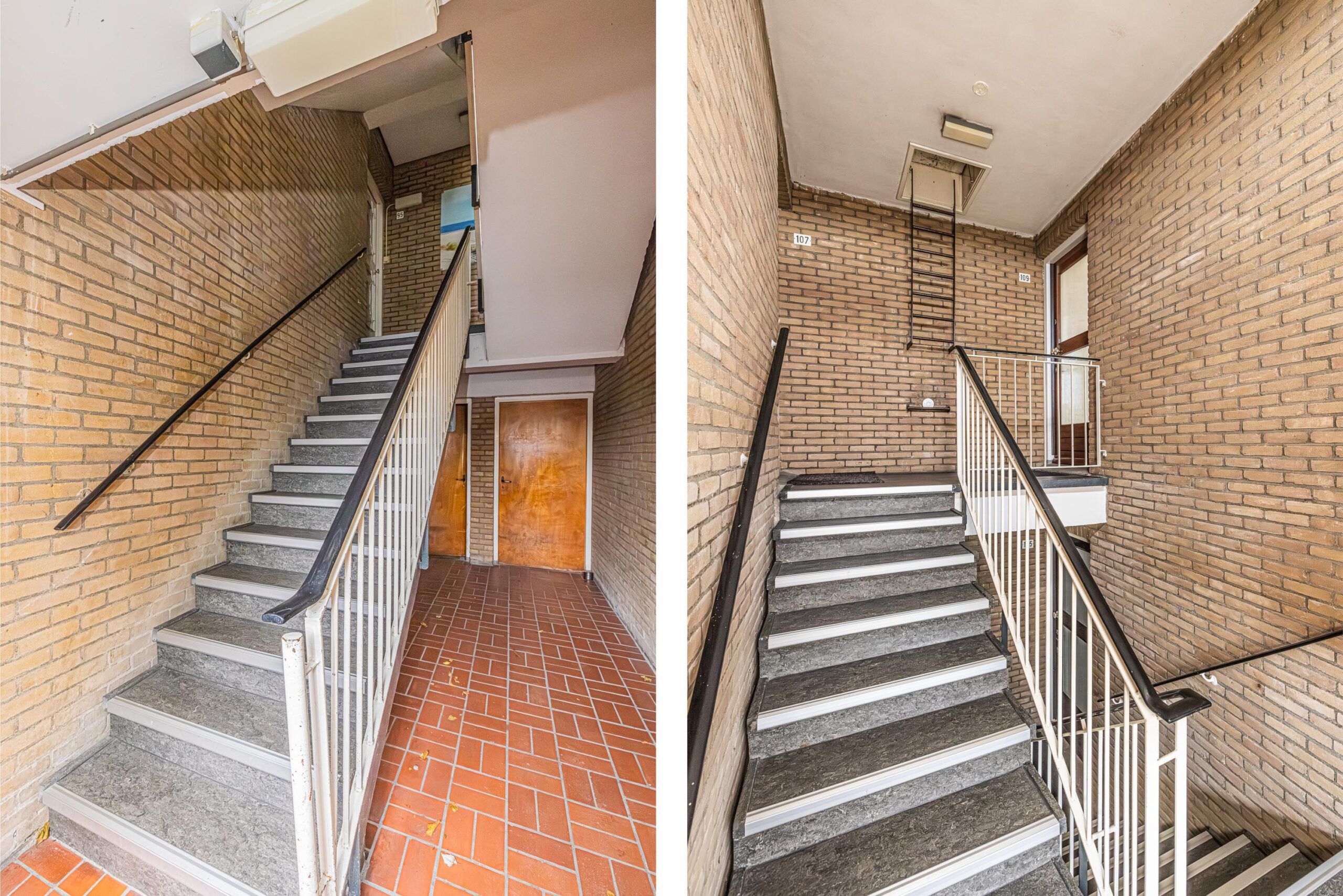 Een verzorgde centrale entree met brievenbussen en trappenhuis leidt naar het appartement op de vierde verdieping. Alles voelt netjes, rustig en goed onderhouden – precies wat je wilt bij een complex met een actieve VvE.