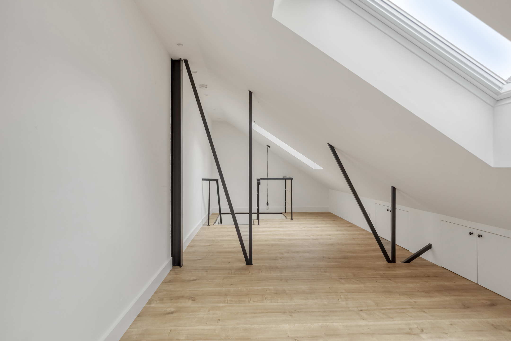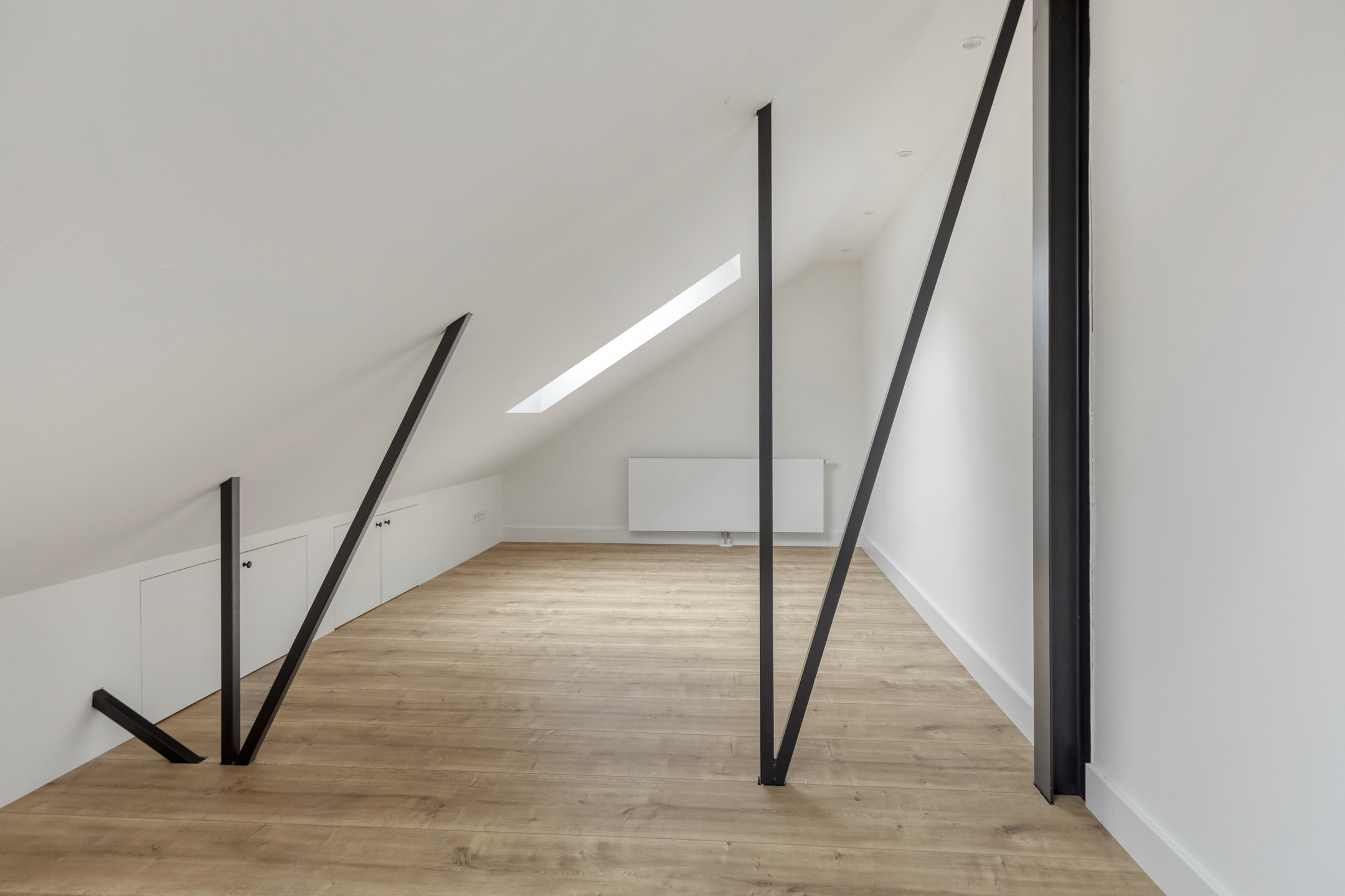 open ruimte, goed te gebruiken als 2e slaapkamer. De vloerafwering is eveneens laminaat. De schuine wanden zijn benut waaronder opbergruimte is gecreëerd doormiddel van knieschotten. Hier bevindt zich eveneens een mechanische ventilatie unit. Ook hier is moderne verlichting aangebracht in de vorm van inbouwspots. Eveneens is deze ruimte te verwarmen doormiddel van radiatoren. Aan de voorzijde is deze ruimte voorzien van 2 dakvensters waardoor deze ruimte heerlijk licht is.