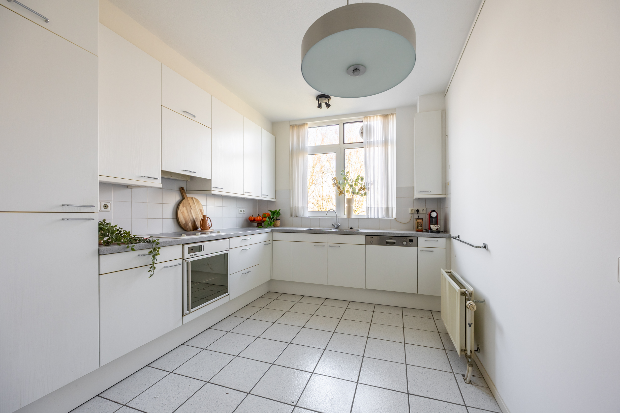 - De keuken en bijkeuken zijn voorzien van een plavuizenvloer.