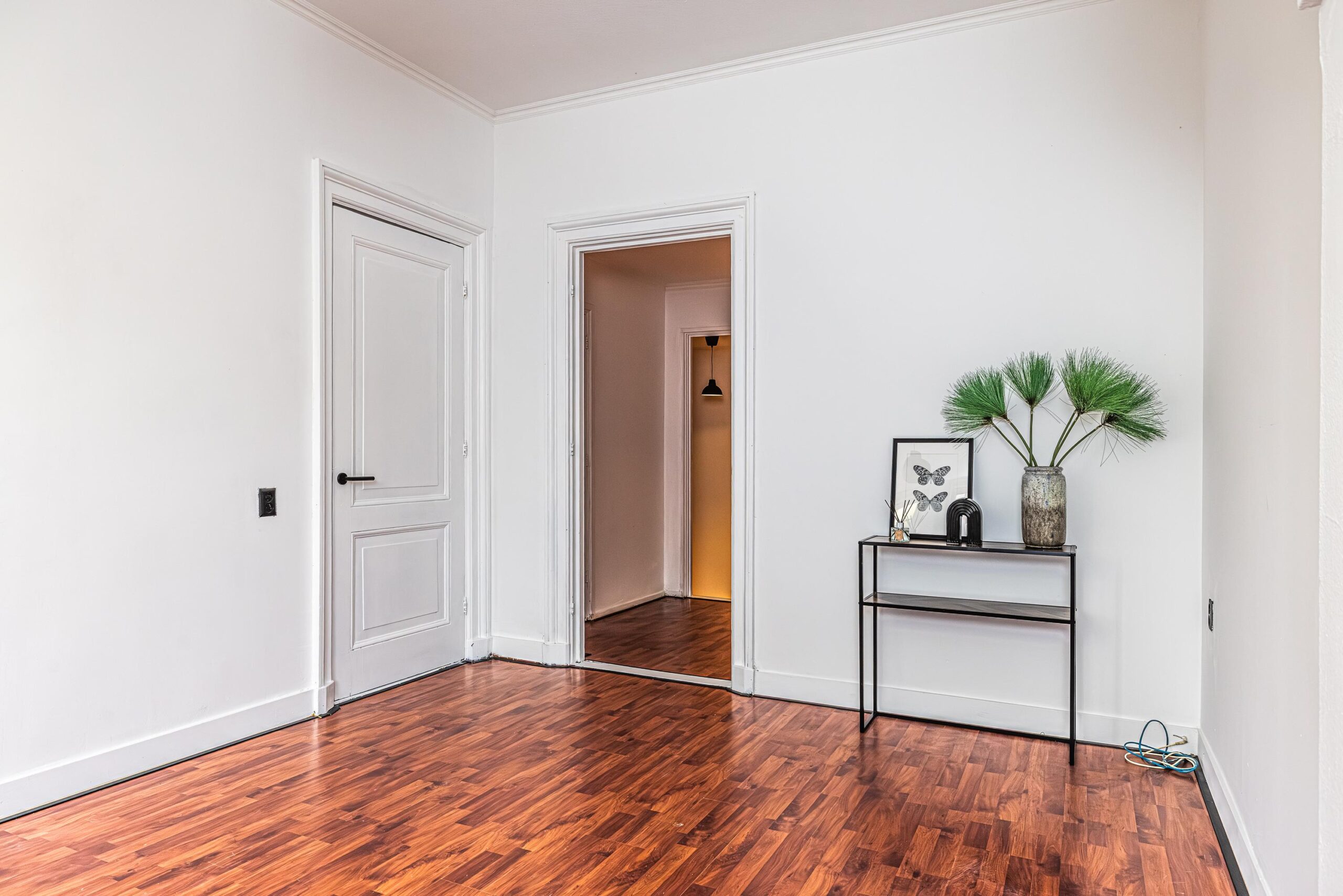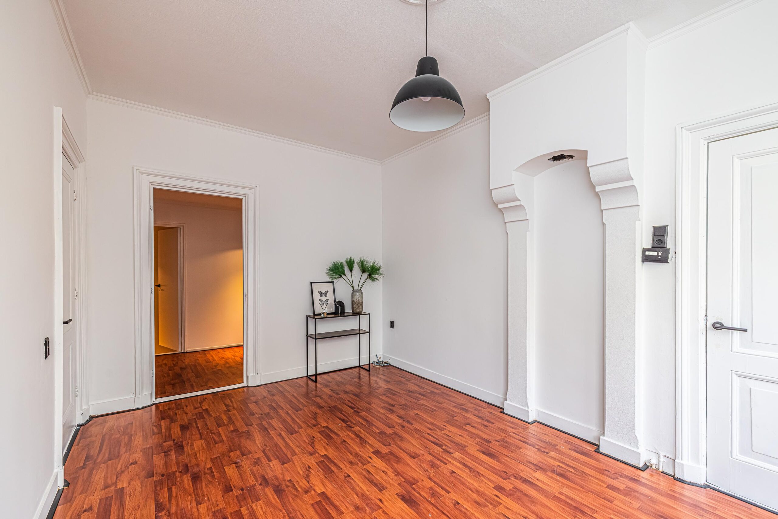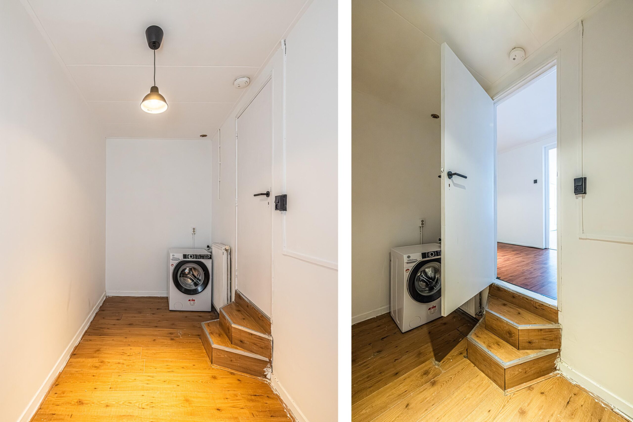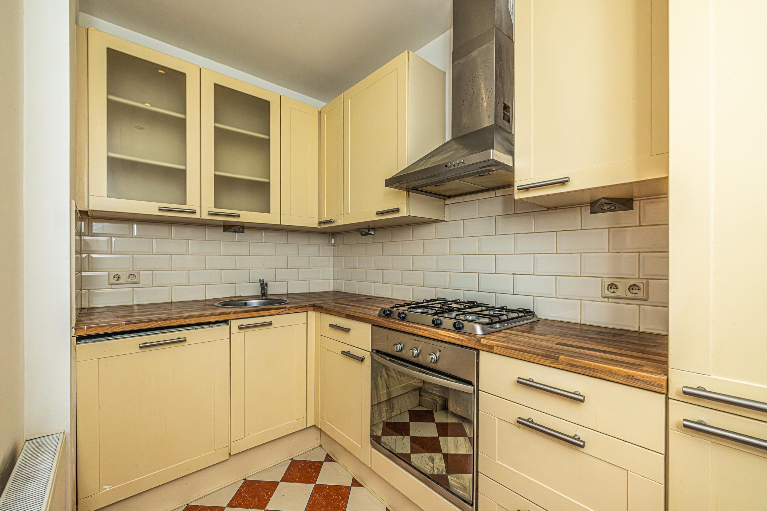 * Laminaat vloerbedekking aangebracht en een tegelvloer in keuken.
