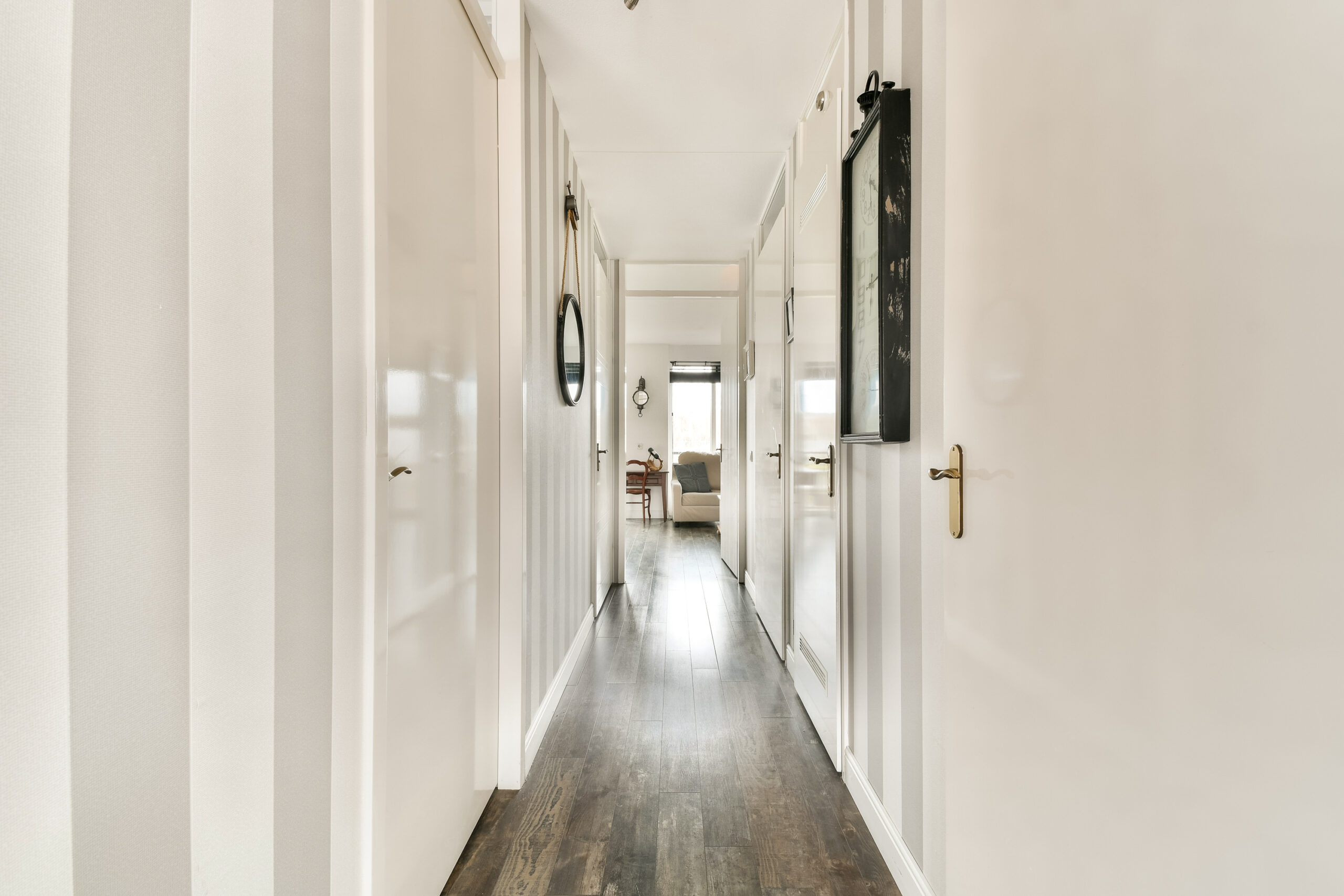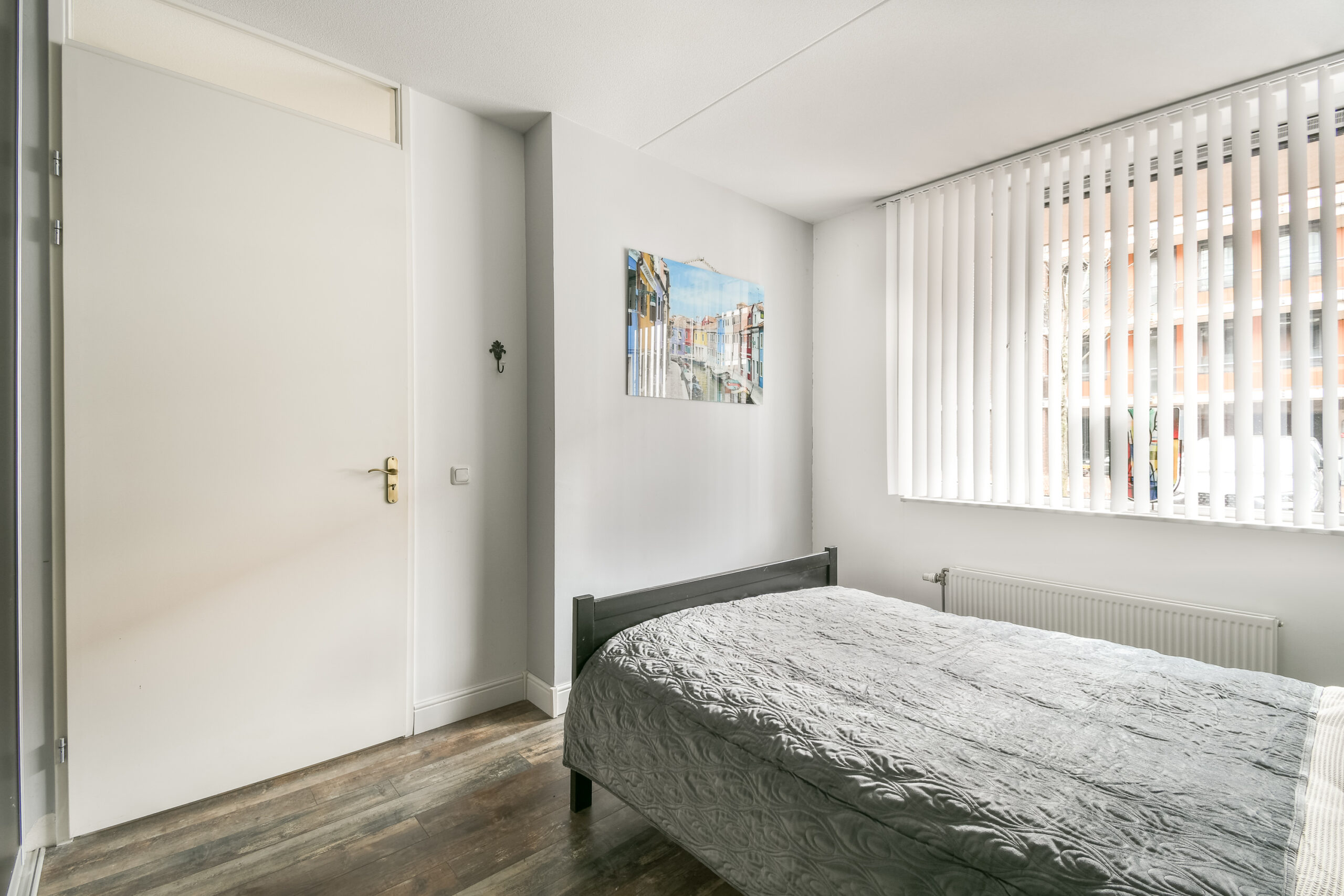 telt twee slaapkamers. De hoofdslaapkamer is ruim opgezet en biedt voldoende plaats voor een tweepersoonsbed en kastruimte. De tweede slaapkamer is eveneens van goed formaat en uitstekend geschikt als logeerkamer, werkkamer of hobbyruimte. De vloer in de hal, woonkamer en slaapkamers is afgewerkt met laminaat.