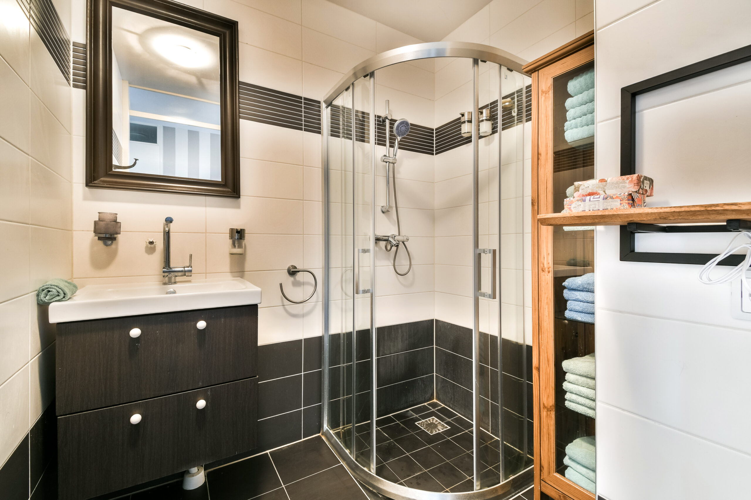 De badkamer is netjes en verzorgd uitgevoerd met een douche en wastafelmeubel. Daarnaast is er een separate toiletruimte. In de woning is ook een praktische inpandige ruimte aanwezig voor de cv-installatie (Intergas, 2011) en extra bergruimte.