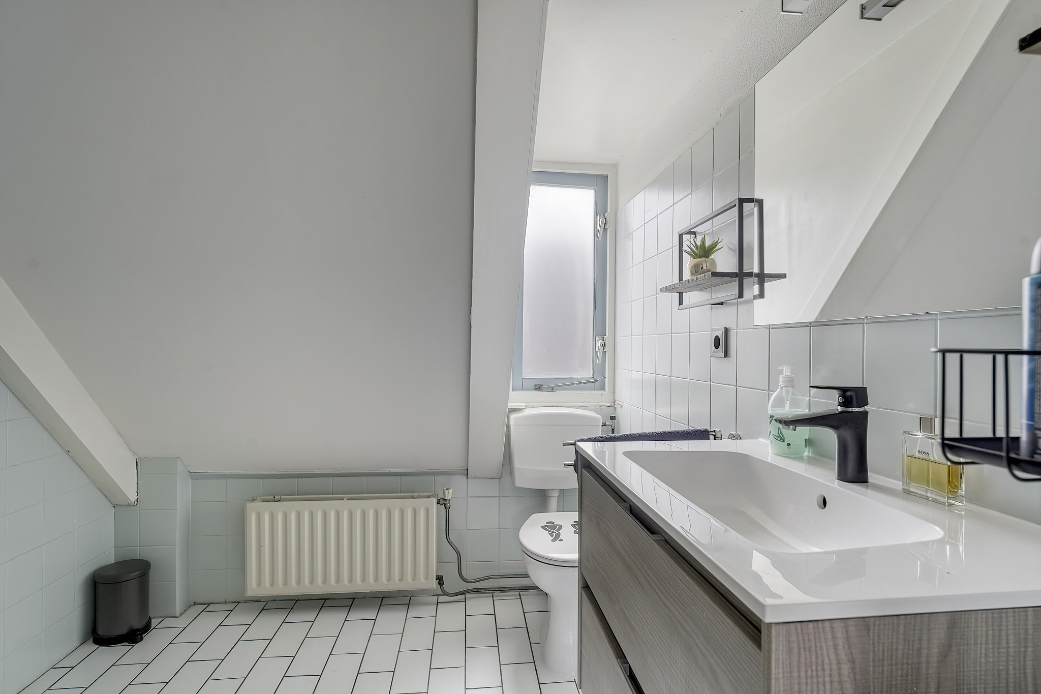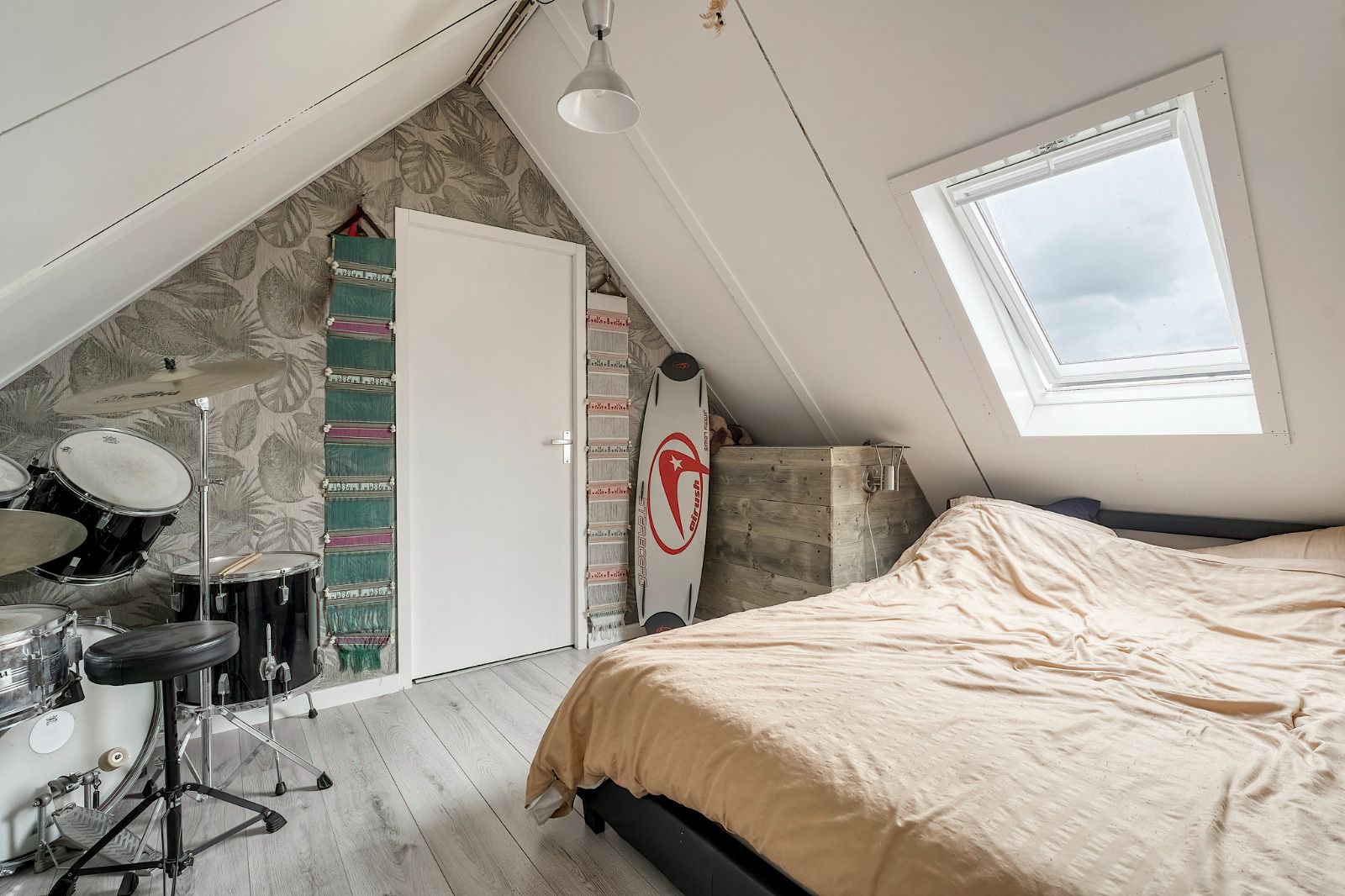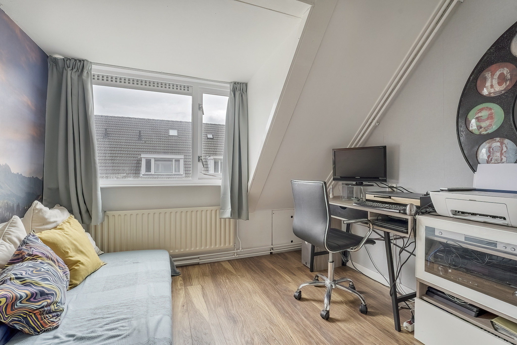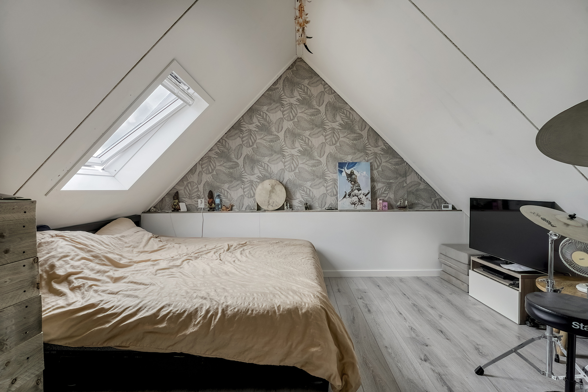 De tweede verdieping biedt een overloop met opstelplaats voor de CV-ketel (2017) en aansluiting voor de wasmachine. Er is tevens een praktische werkbank en extra bergruimte achter de knieschotten. De vierde slaapkamer is van goed formaat en beschikt over een dakraam waardoor er veel daglicht binnenkomt.