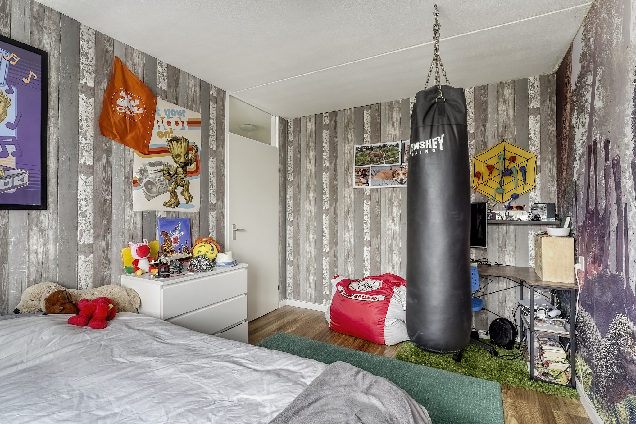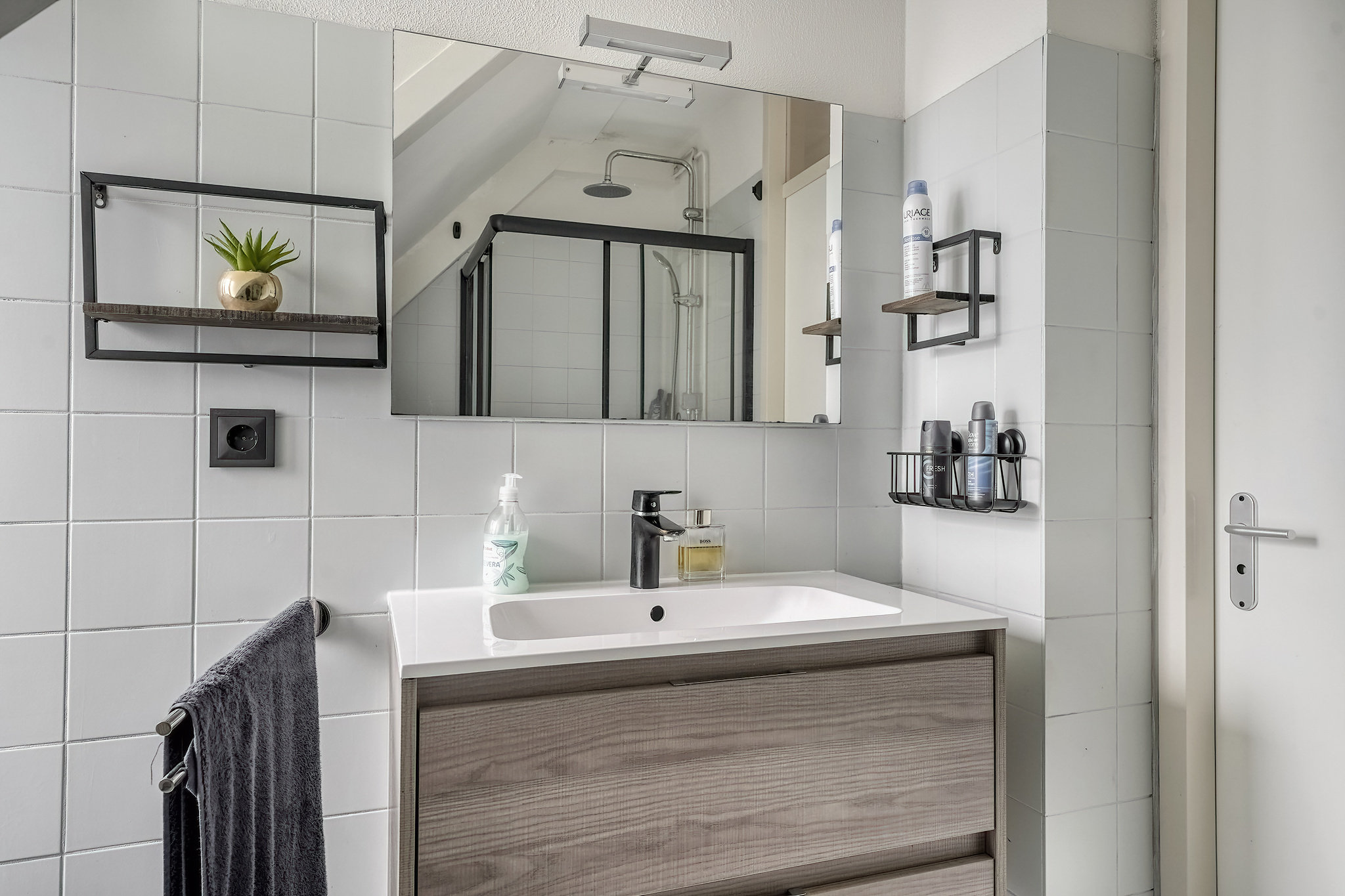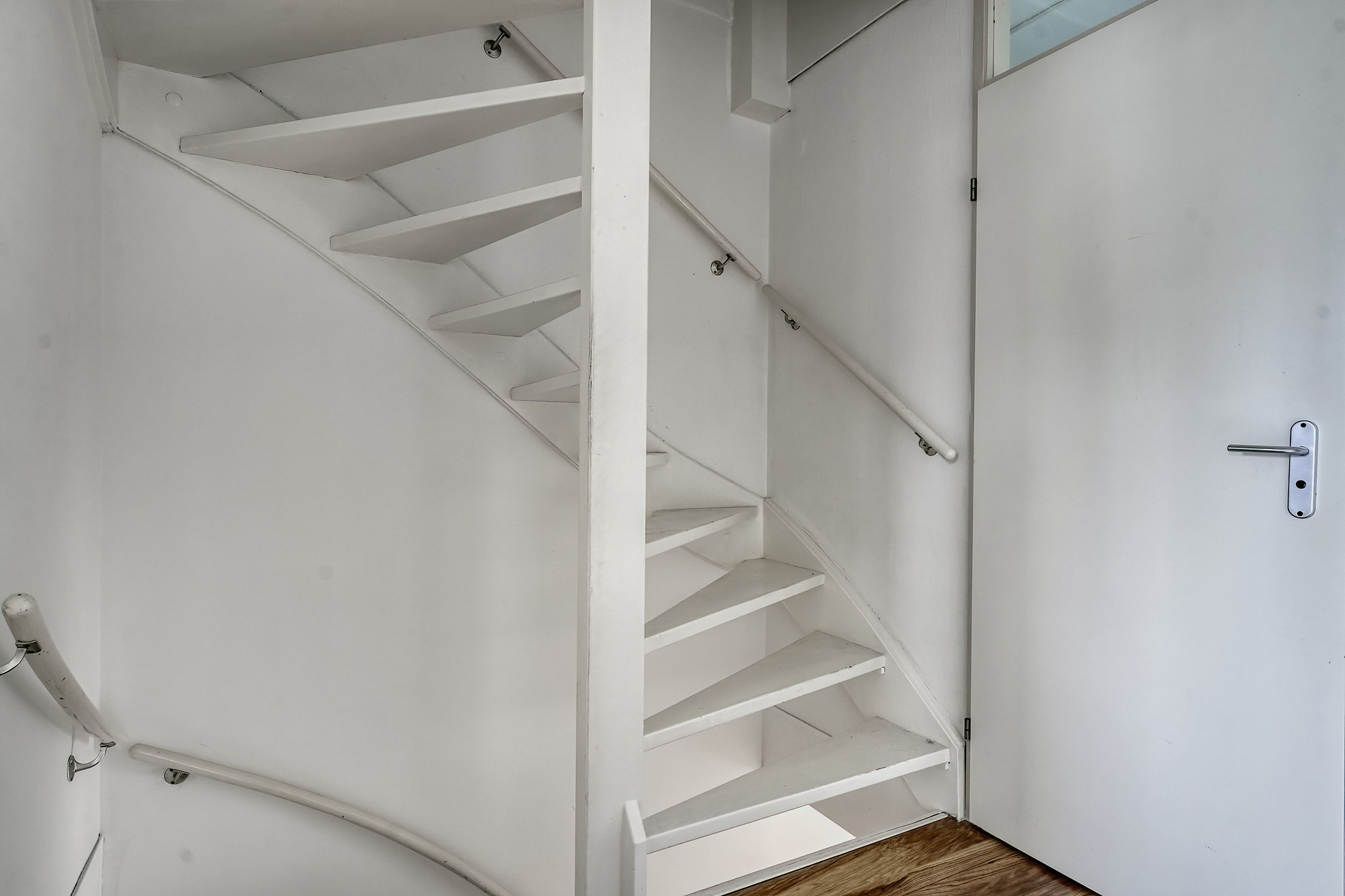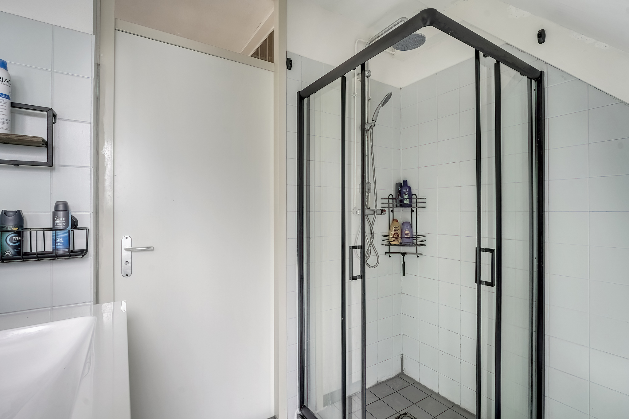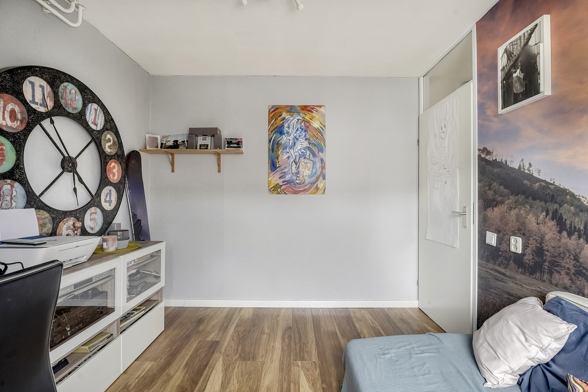 De tweede verdieping biedt een overloop met opstelplaats voor de CV-ketel (2017) en aansluiting voor de wasmachine. Er is tevens een praktische werkbank en extra bergruimte achter de knieschotten. De vierde slaapkamer is van goed formaat en beschikt over een dakraam waardoor er veel daglicht binnenkomt.