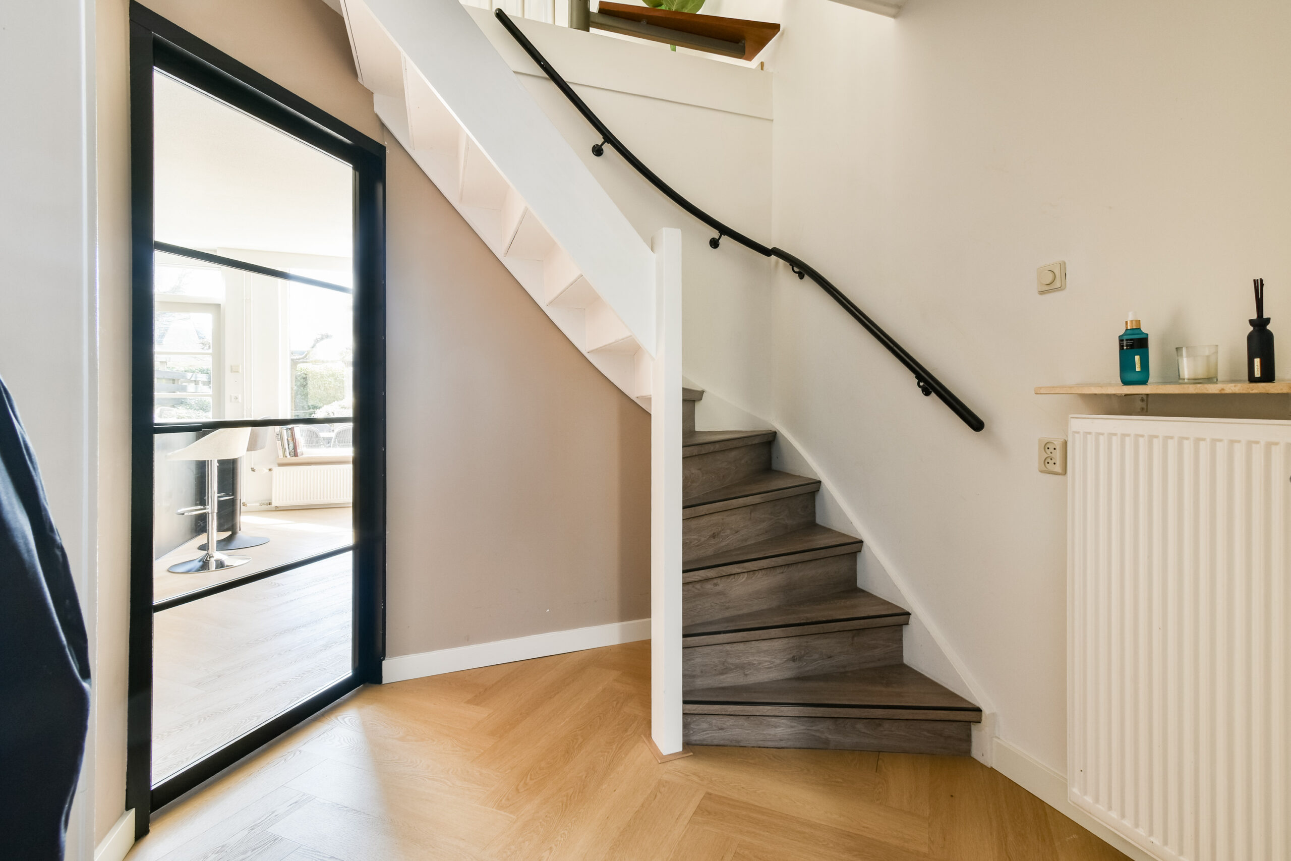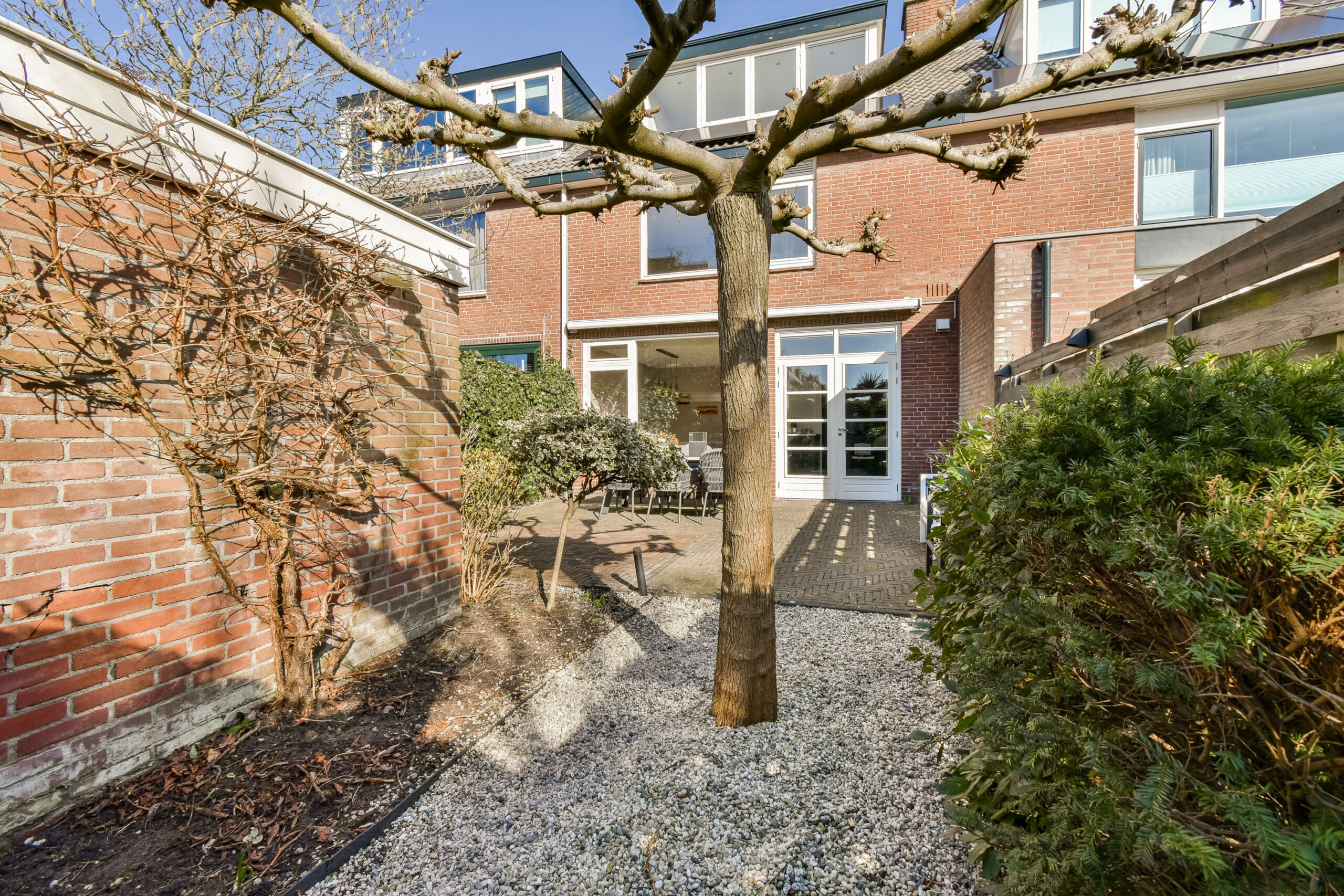 Buitenruimte: de fraai aangelegde achtertuin van bijna 11 meter diep ligt gunstig op het zuiden, waardoor u hier volop van de zon kunt genieten. Op warme dagen biedt het nieuwe zonnescherm van maar liefst 6 meter breed aangename schaduw.