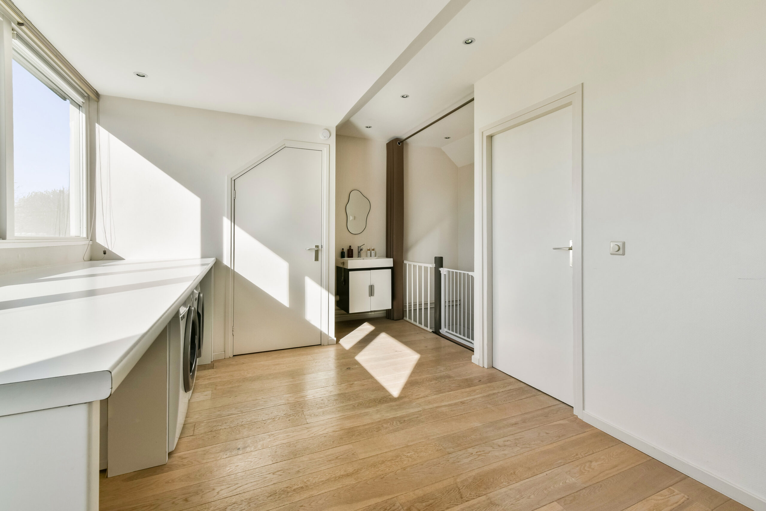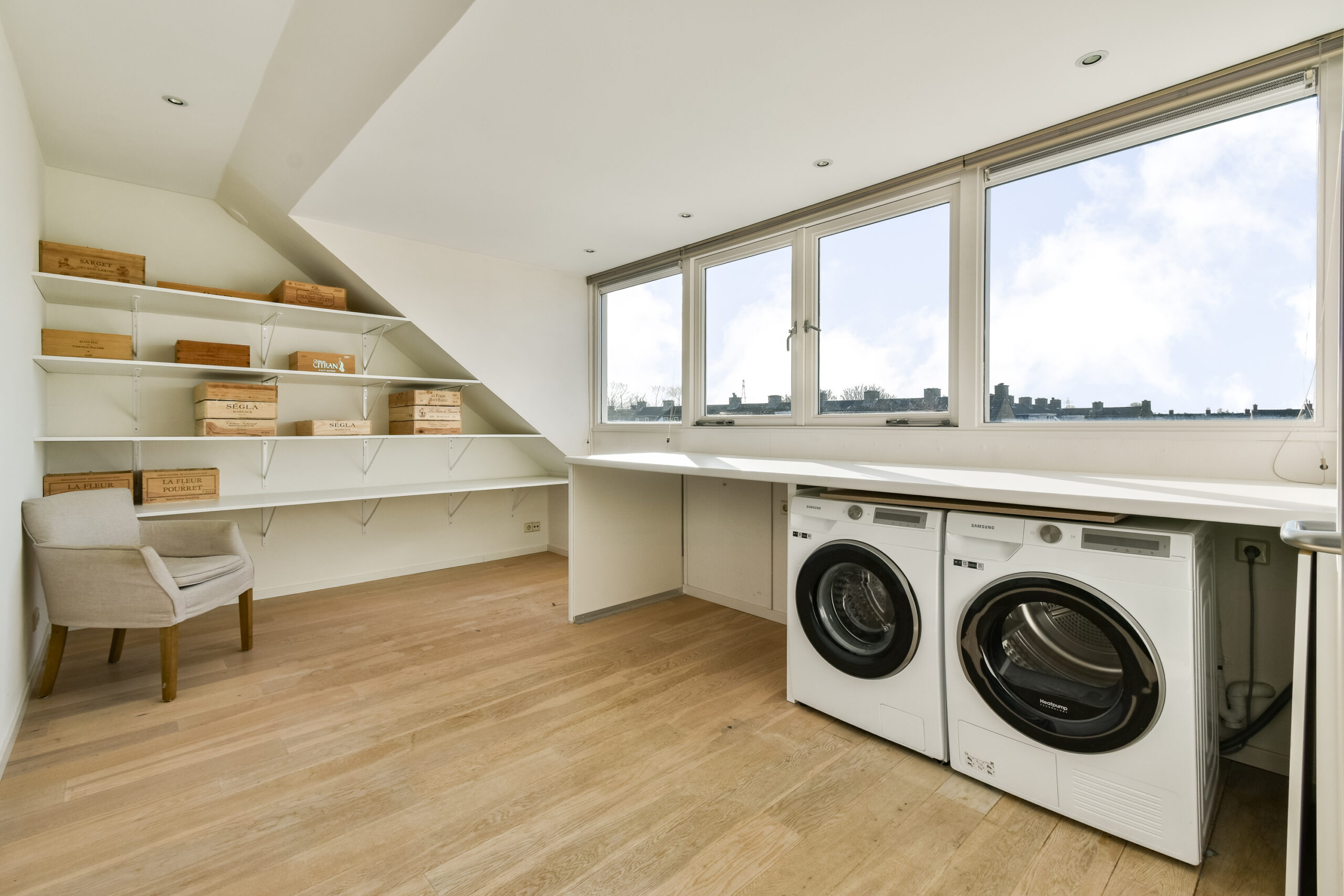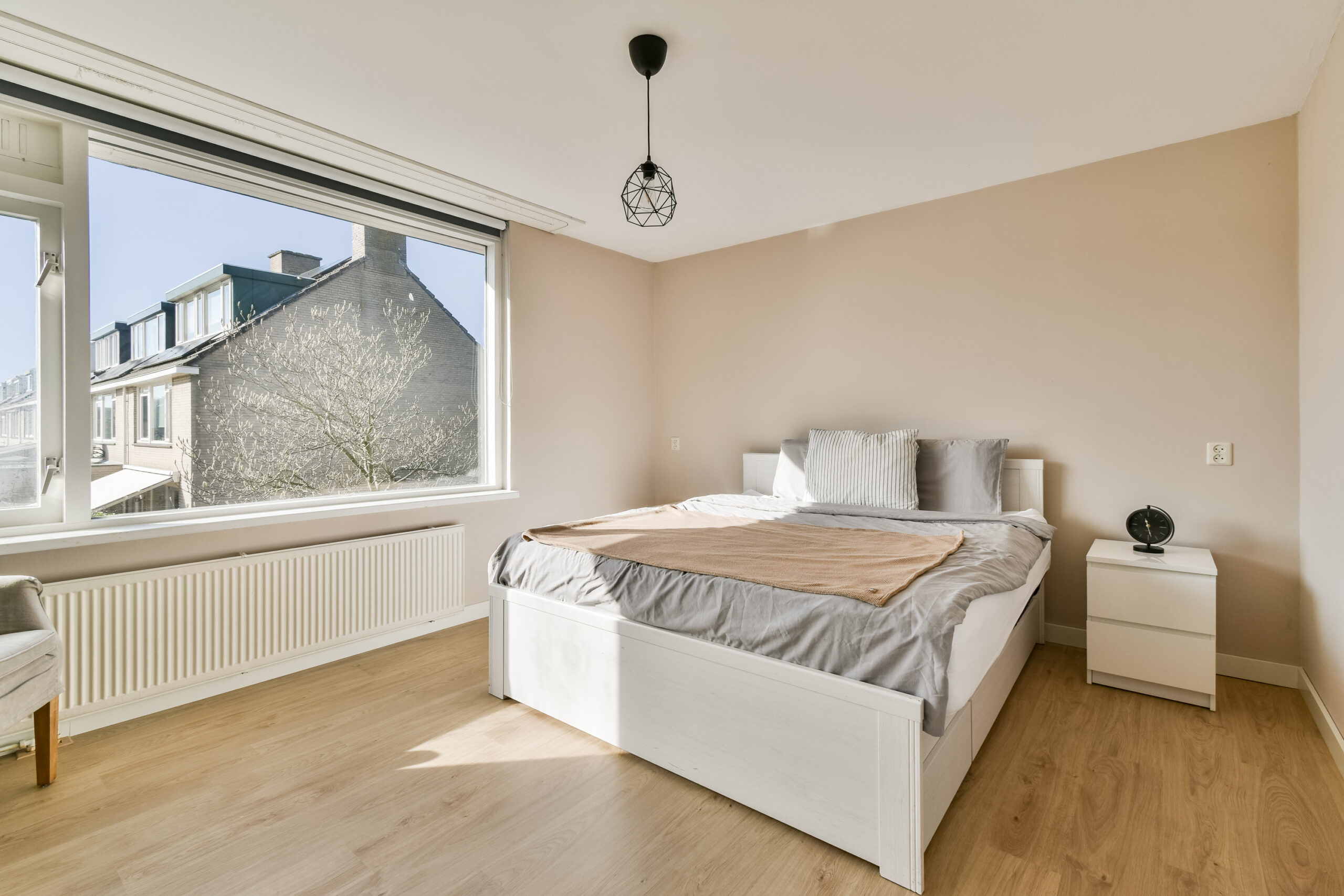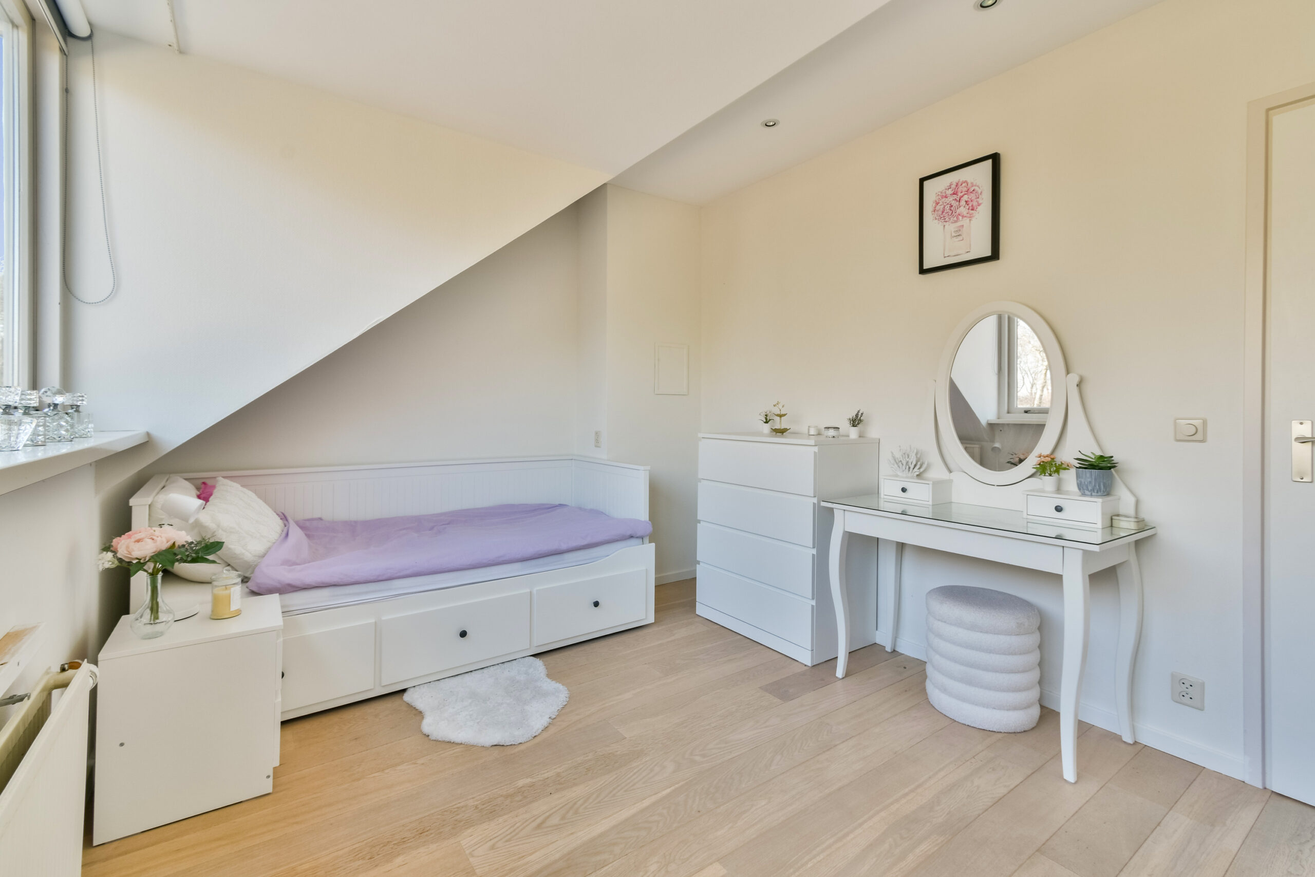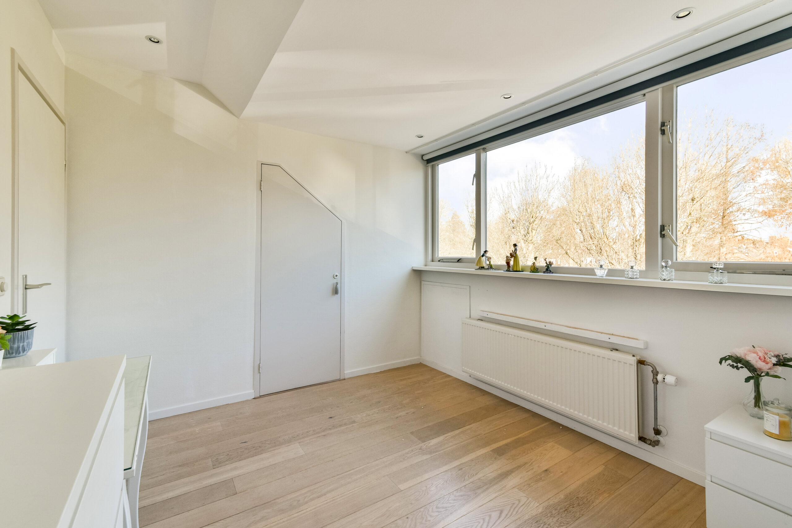 Tweede verdieping: op deze verdieping vindt u een prachtige lichte werkkamer, ideaal als thuiswerkplek, hobbyruimte of speelkamer. Tevens is hier een vaste bergkast met de opstelling van de cv-combiketel (2018), een wastafelmeubel en aansluitingen voor wasapparatuur. Daarnaast bevindt zich hier een grote vierde slaapkamer met een ruime inloopkast en een schitterend uitzicht over het Mondriaanpark. Dankzij de brede dakkapellen aan zowel de voor- als achterzijde is deze verdieping extra ruim en licht.