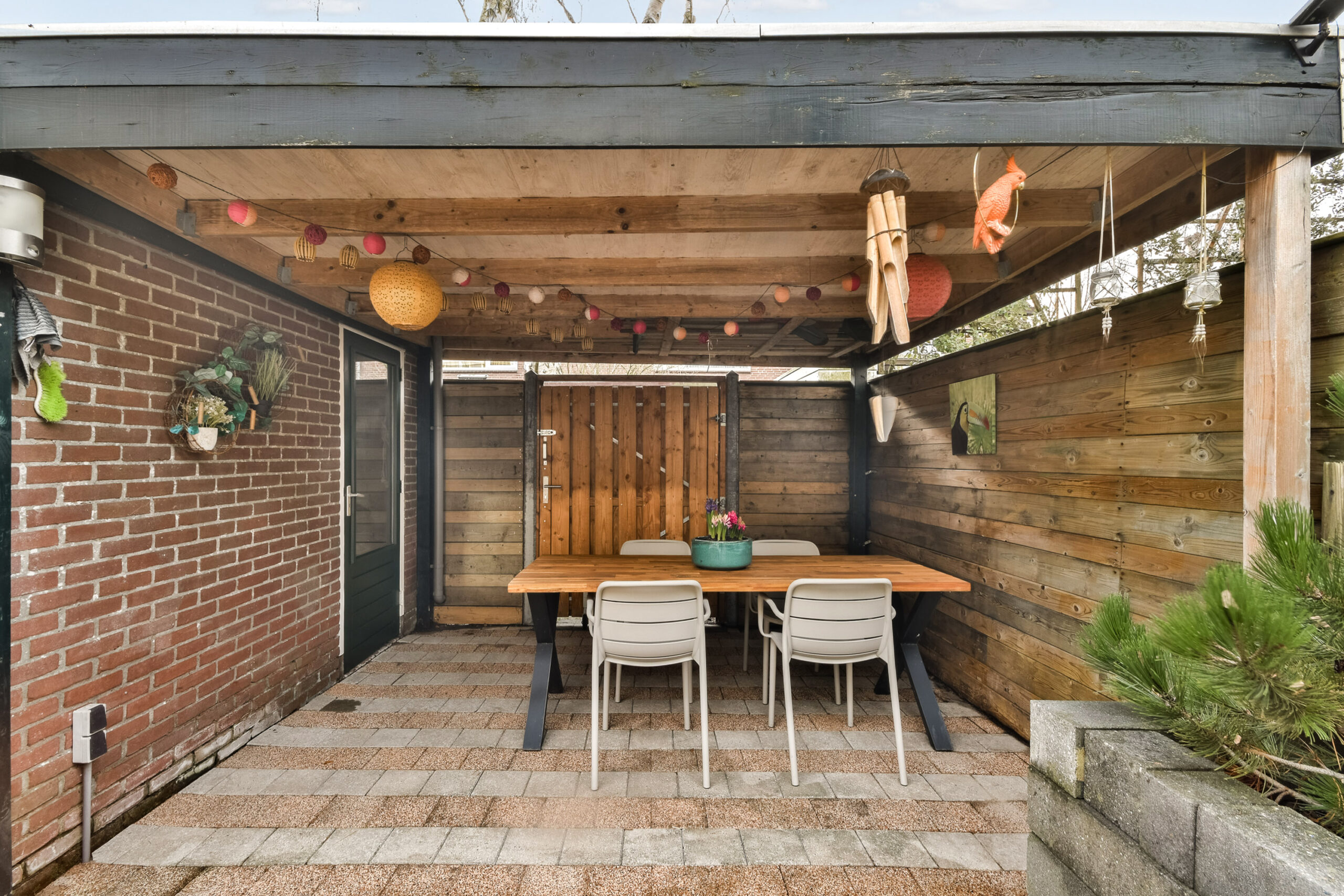 -Zonnige en diepe achtertuin op het zuiden met overkapping