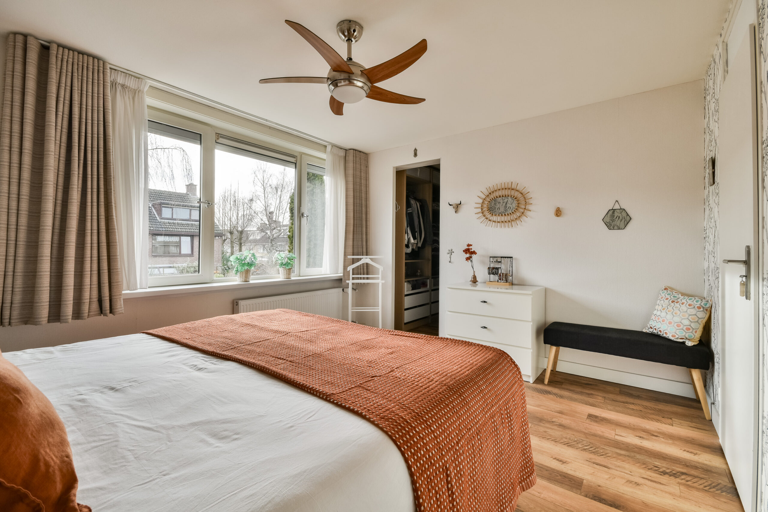 Aan de achterzijde bevindt zich de vierde slaapkamer met dakkapel en bergruimte achter de knieschotten. De vijfde slaapkamer aan de voorzijde is eveneens voorzien van een dakkapel, bergruimte én toegang tot een royale inloopkast. Ook deze verdieping is afgewerkt met keurige laminaatvloeren.
