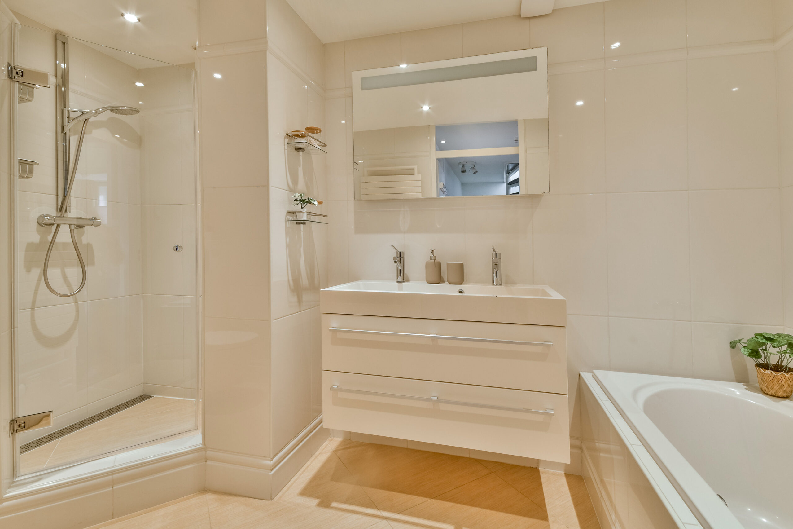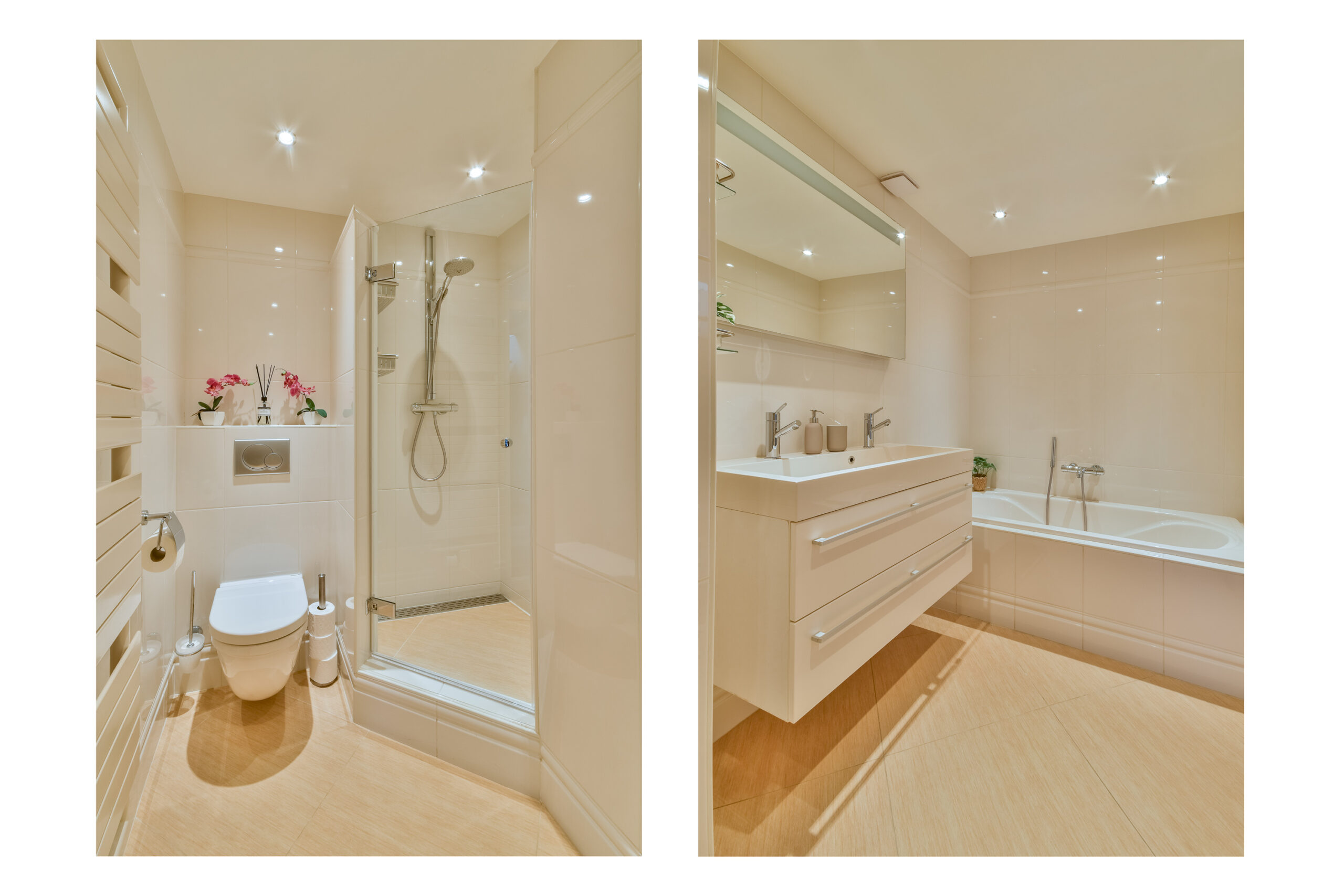 (voorheen twee badkamers). Twee slaapkamers bevinden zich aan de voorzijde. De ruime hoofdslaapkamer ligt aan de achterzijde en beschikt over een inloopkast en rolluik.