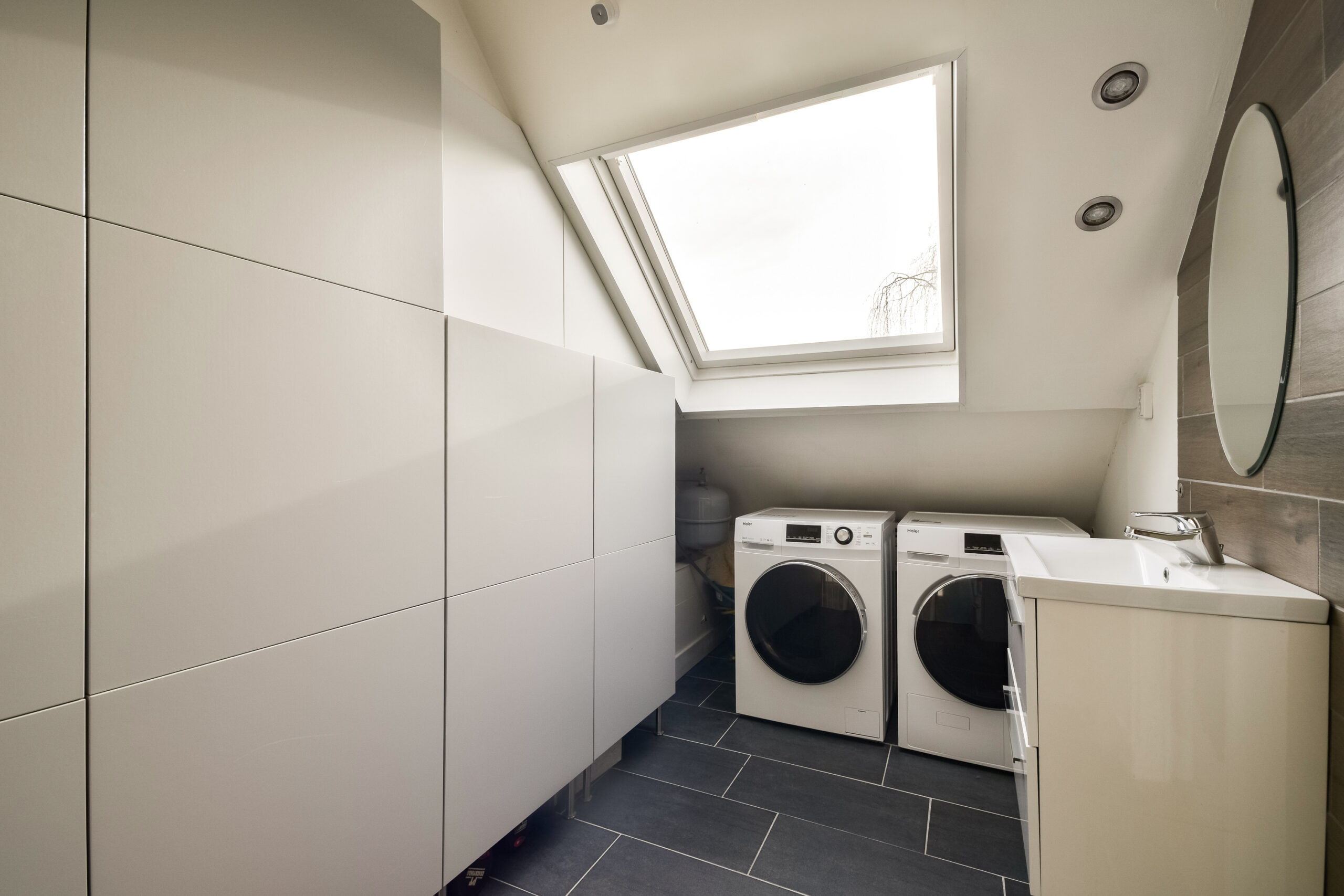De tweede verdieping beschikt over een ruime overloop met grote kastenwand, bergruimte, een kunststof Velux dakraam en de cv-ketel (Remeha).