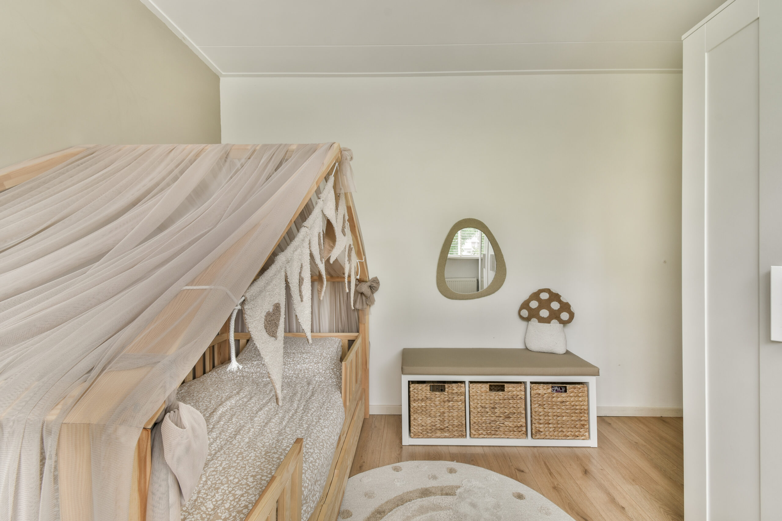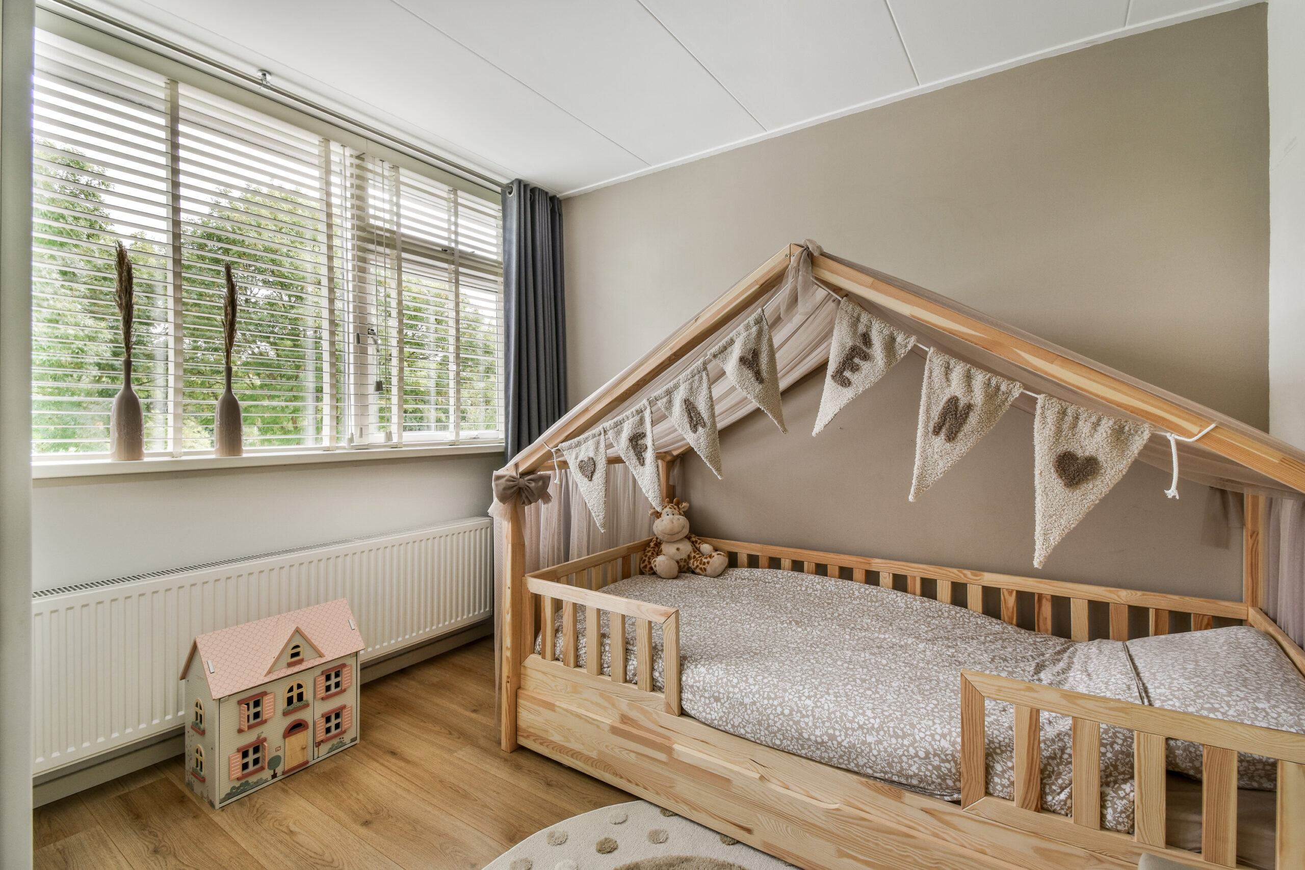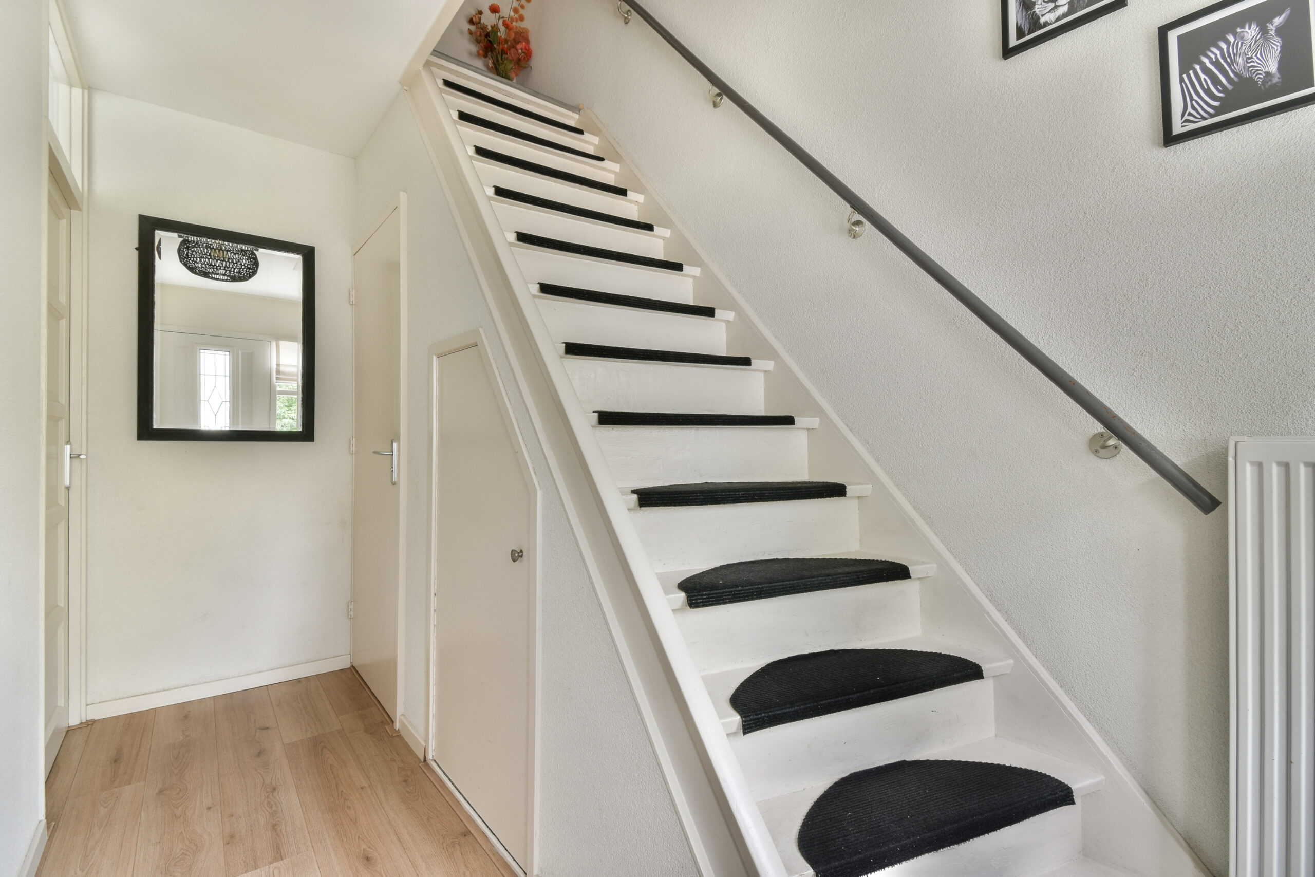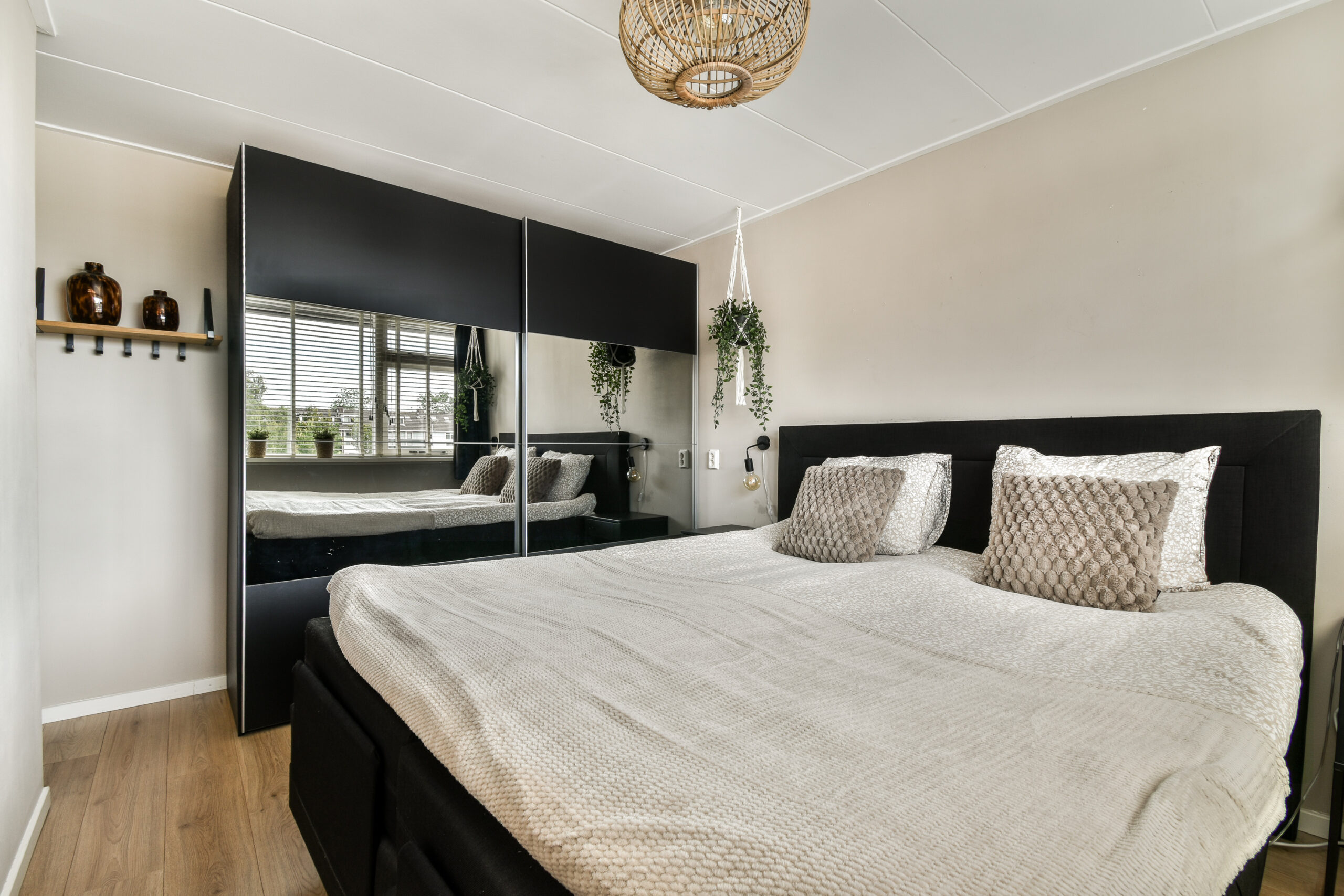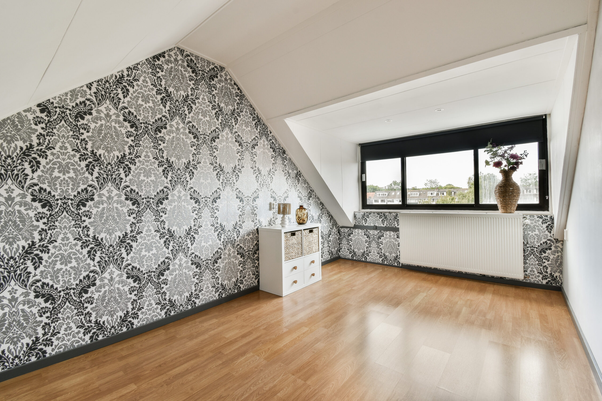 1e verdieping: overloop, trapopgang naar de zolderverdieping, drie slaapkamers en een badkamer. De badkamer is voorzien van een toilet, wastafelmeubel, douchecabine en een designradiator. Deze badkamer is aan de voorzijde van de woning gesitueerd. De 1e slaapkamer treft u ook aan deze zijde, de 2de en 3de slaapkamer liggen aan de achterzijde. Alle drie de slaapkamer zijn voorzien van een neutrale laminaatvloer.