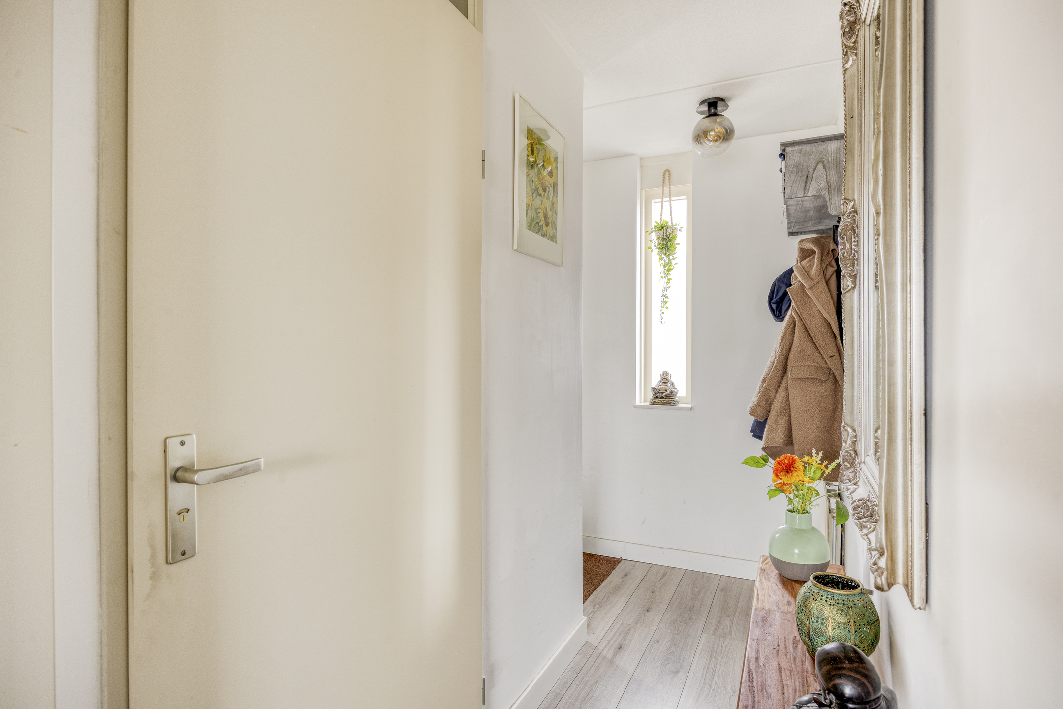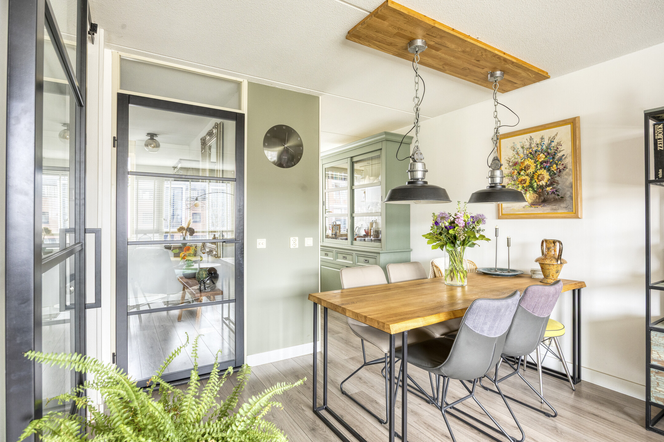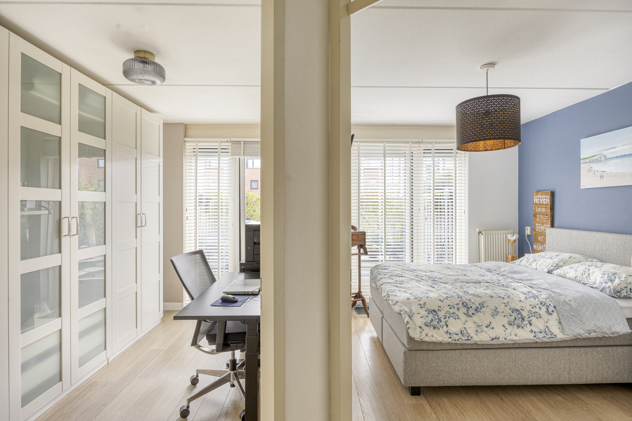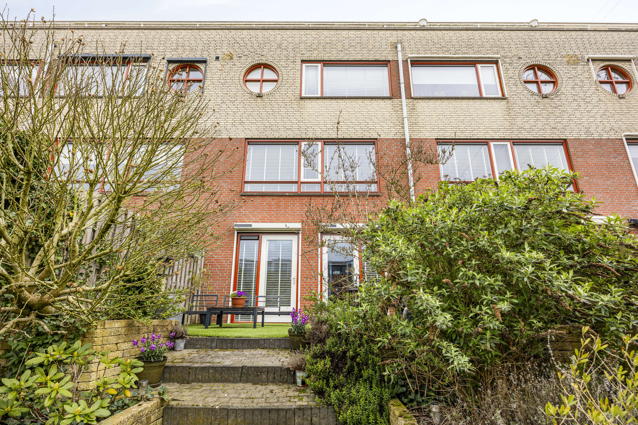 Via de trap, welke is afgesloten door een glazen deur met sfeervol profiel, bereik je het souterrain. Hier vind je twee ruime slaapkamers, beide met directe toegang tot de tuin. ’s Ochtends de deur openzetten, frisse lucht naar binnen, blote voeten op het terras.