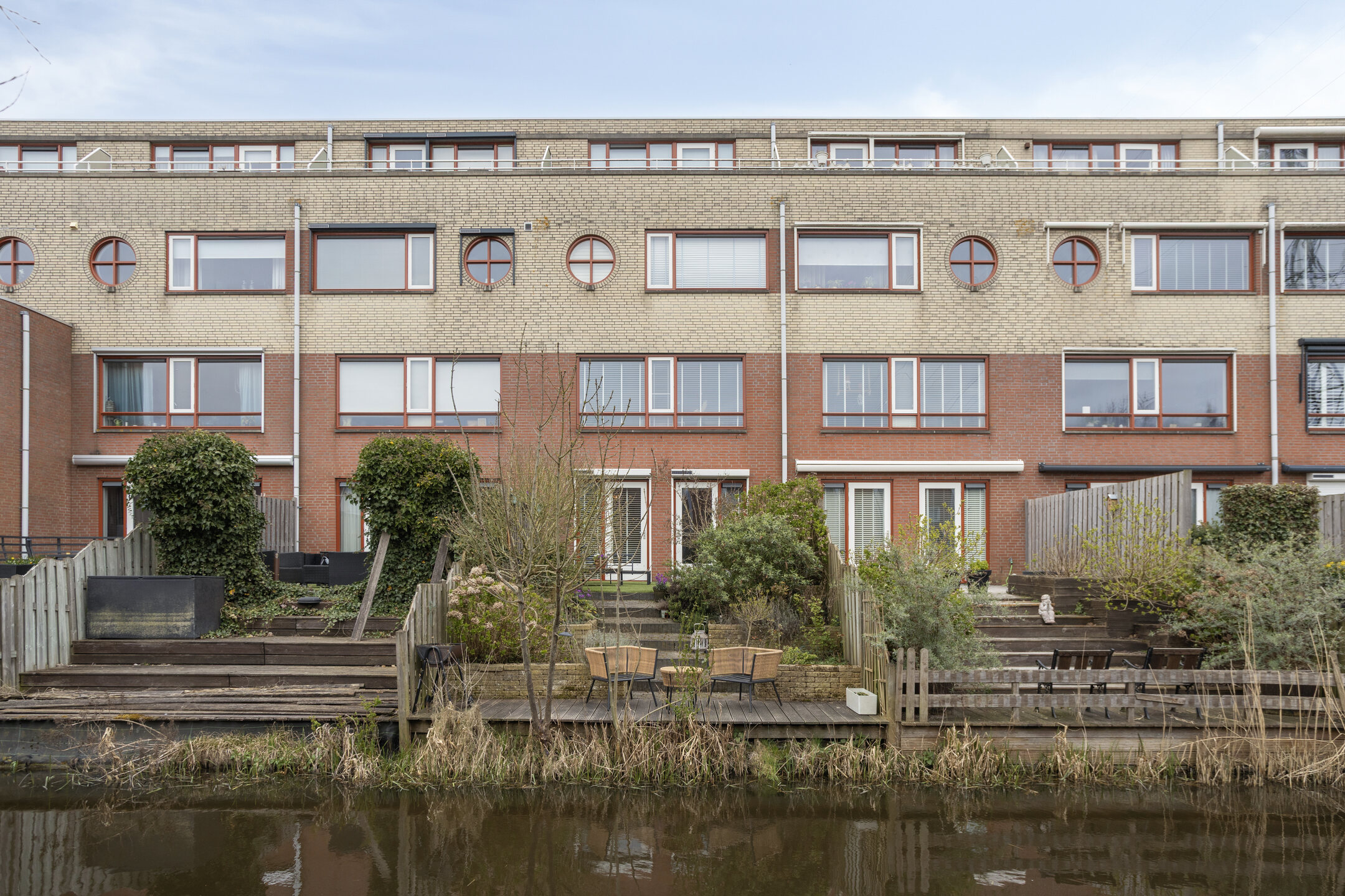 En dan de tuin… een echte eyecatcher. Fraai aangelegd, verdiept in niveaus en gelegen op het westen. De zon zakt hier langzaam weg terwijl jij geniet op de hardhouten vlonder, met het water letterlijk aan je voeten.