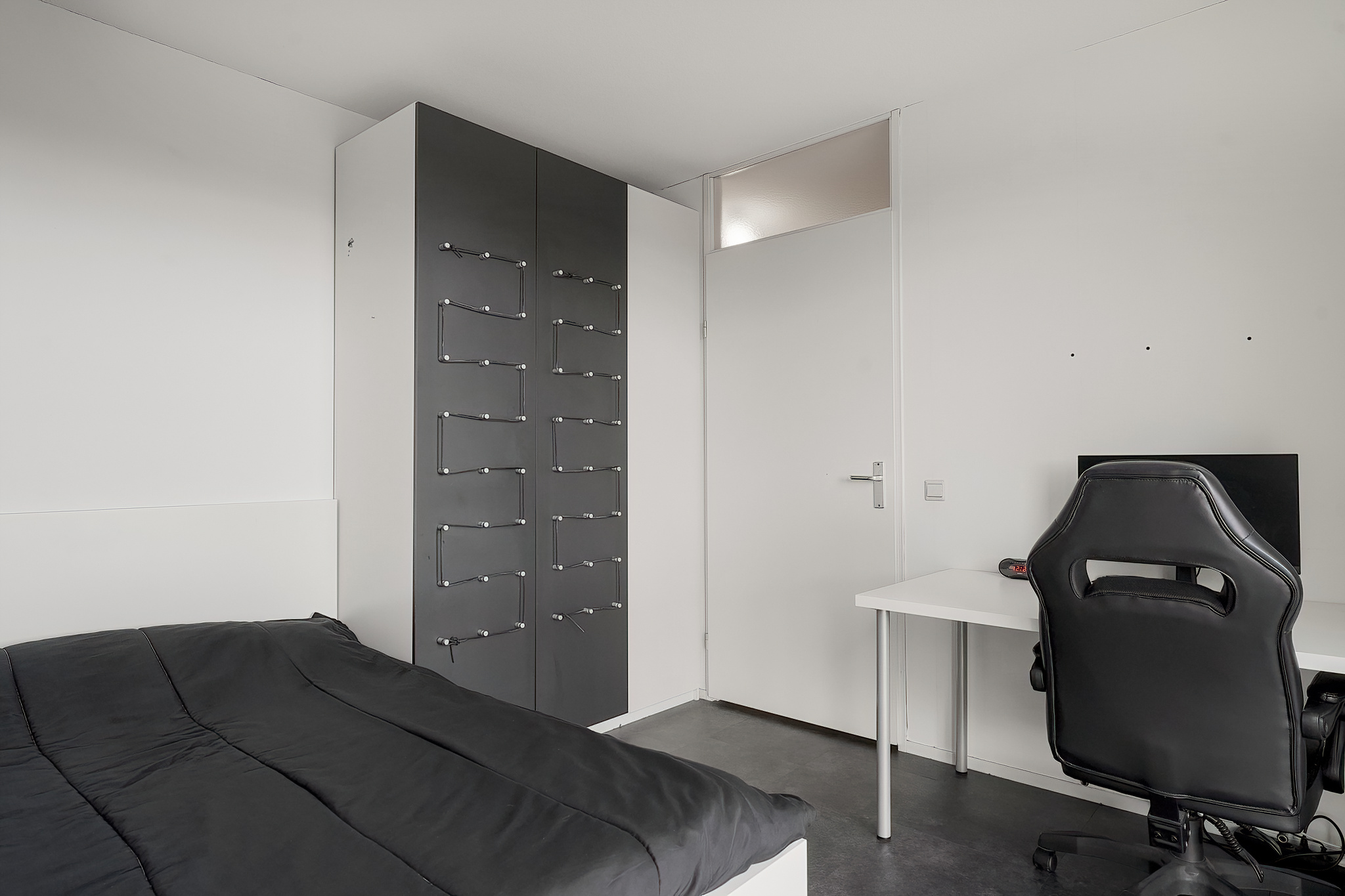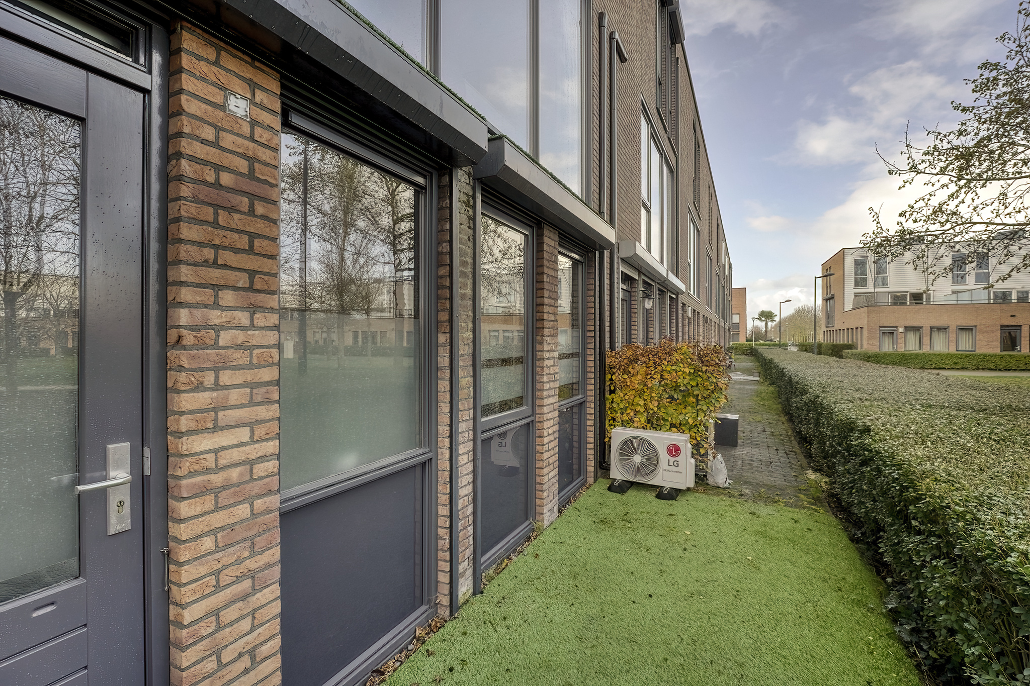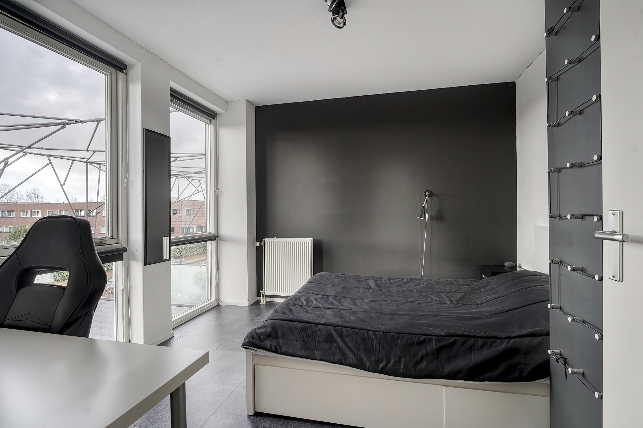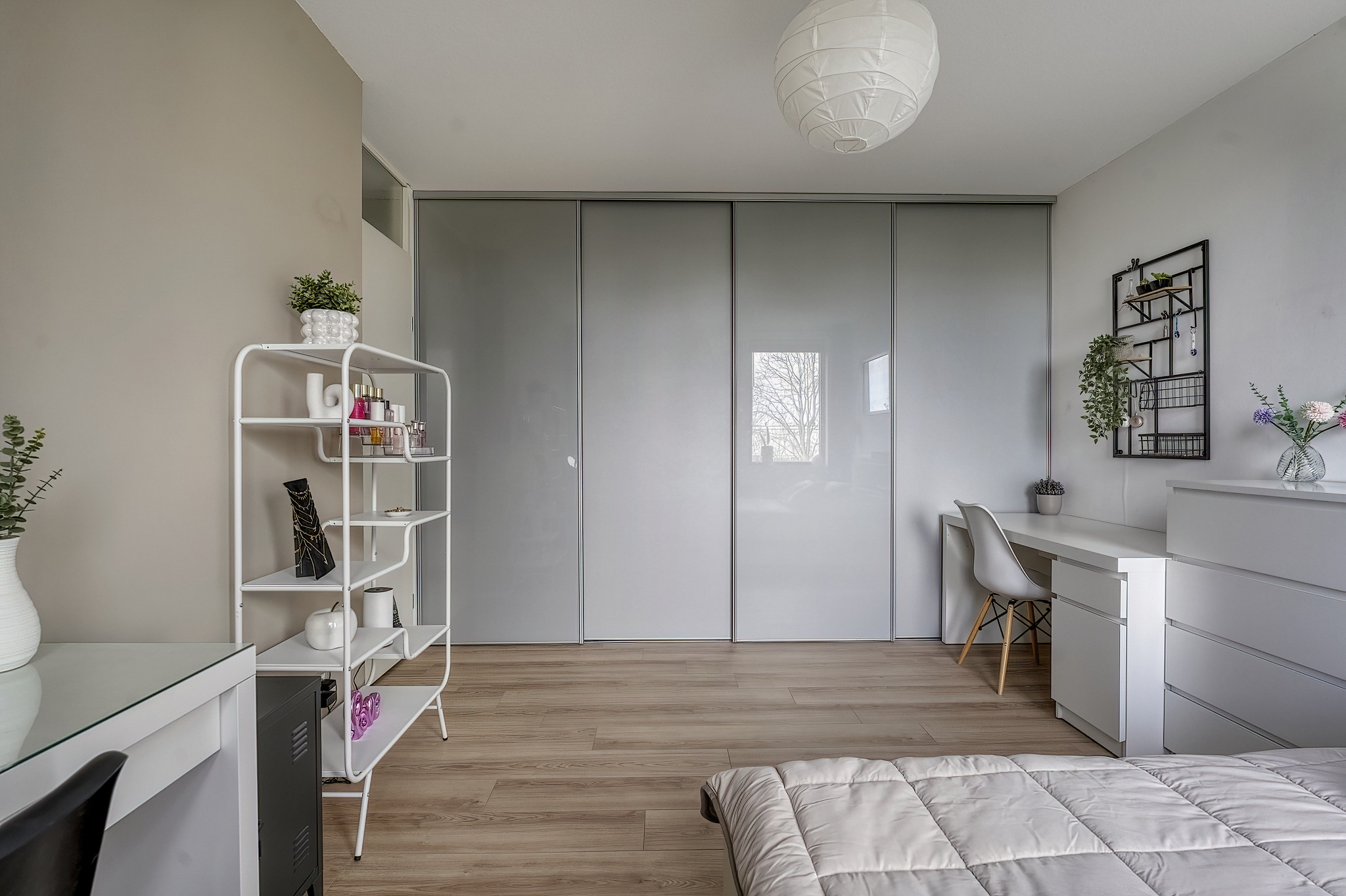 is voorzien van een grote kastenwand, airconditioning en rolluiken. Extra fijn is de trapkast voor bergruimte én de deur naar de achtertuin met uitzicht op het mooie park.